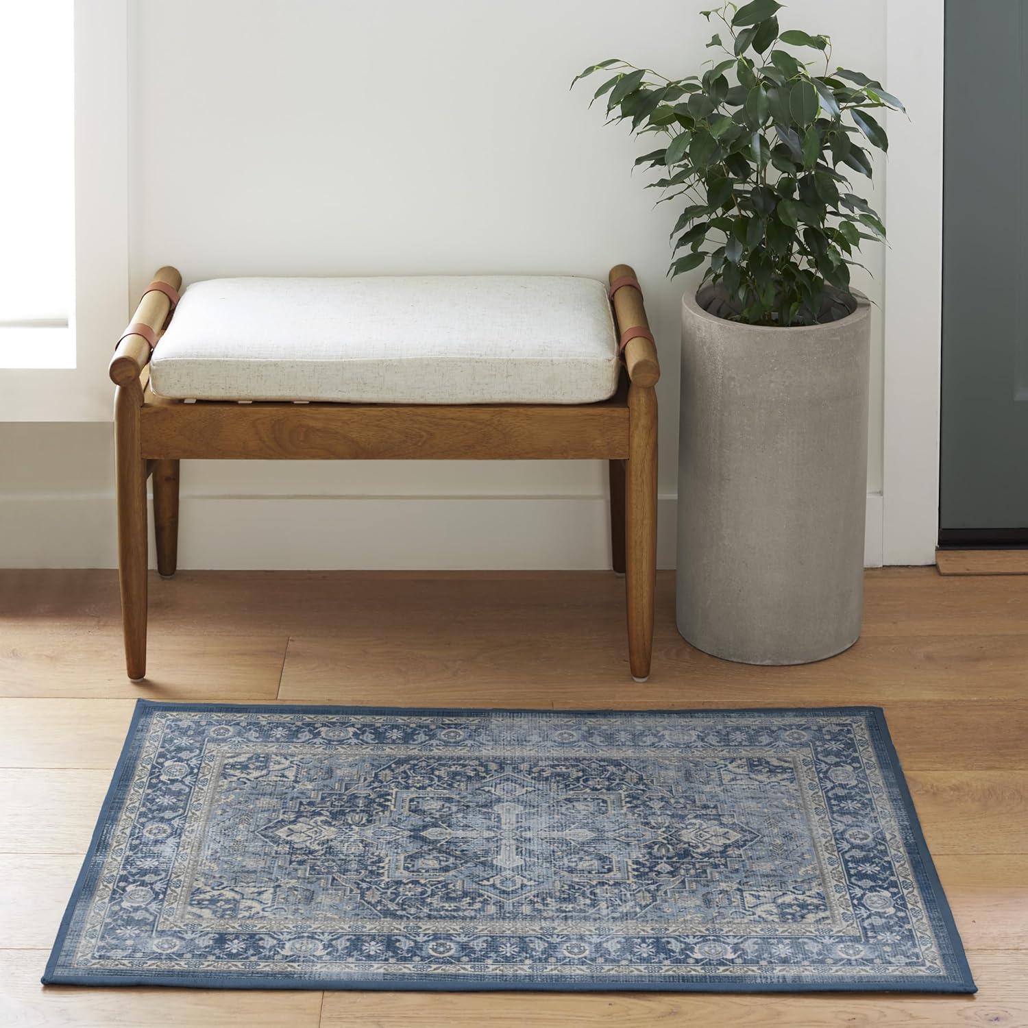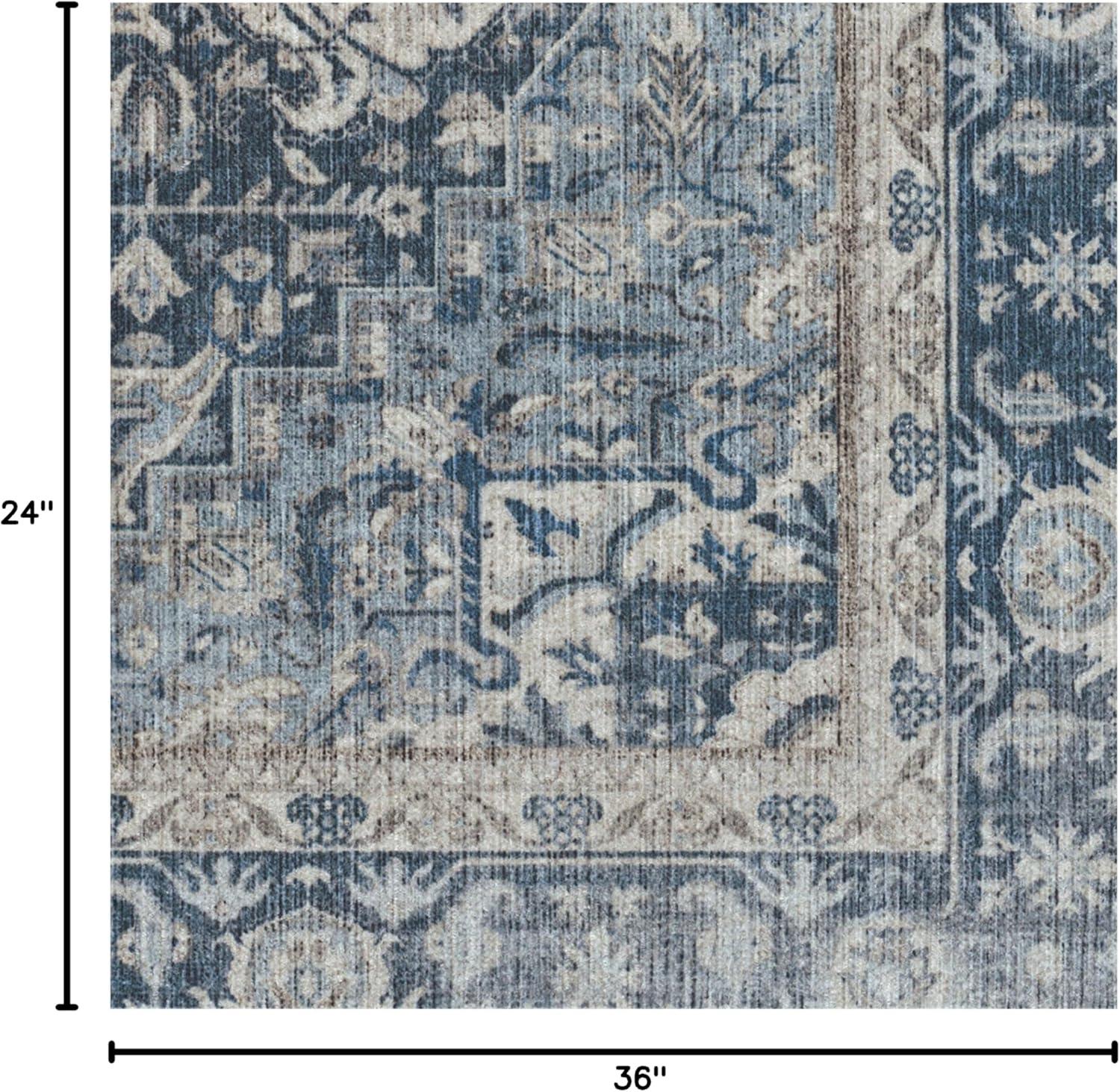 RUGGABLE Washable Vintage Area Rug – Kamran Hazel 3×5, Stain-Resistant, Non-Slip – Small Machine Washable Rugs for Living Room, Bedroom, Hallway, Entryway & Office–with Standard Pad(Blue Admiral – Kamran – Cushioned Pad)