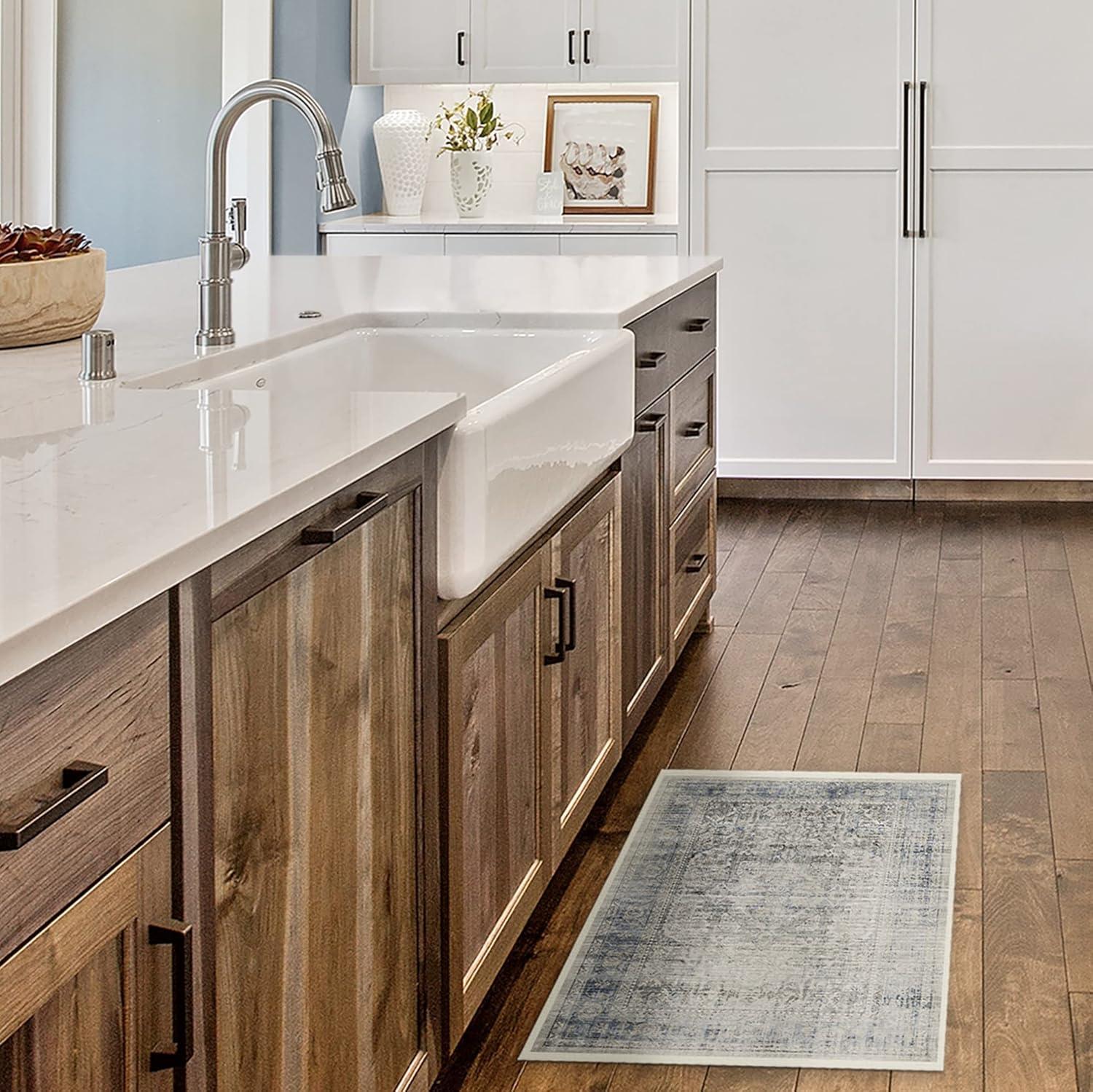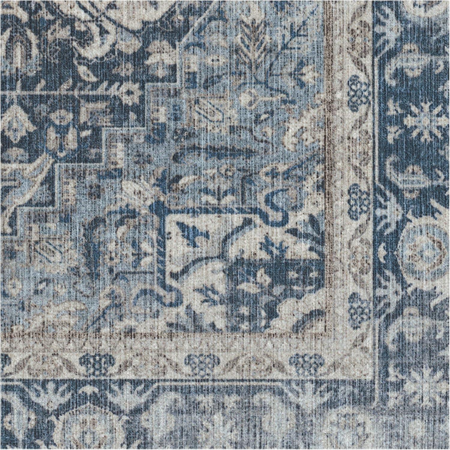 RUGGABLE Washable Vintage Area Rug – Kamran Hazel 3×5, Stain-Resistant, Non-Slip – Small Machine Washable Rugs for Living Room, Bedroom, Hallway, Entryway & Office–with Standard Pad(Blue Quartz Distressed- Kamran – Standard Pad)
