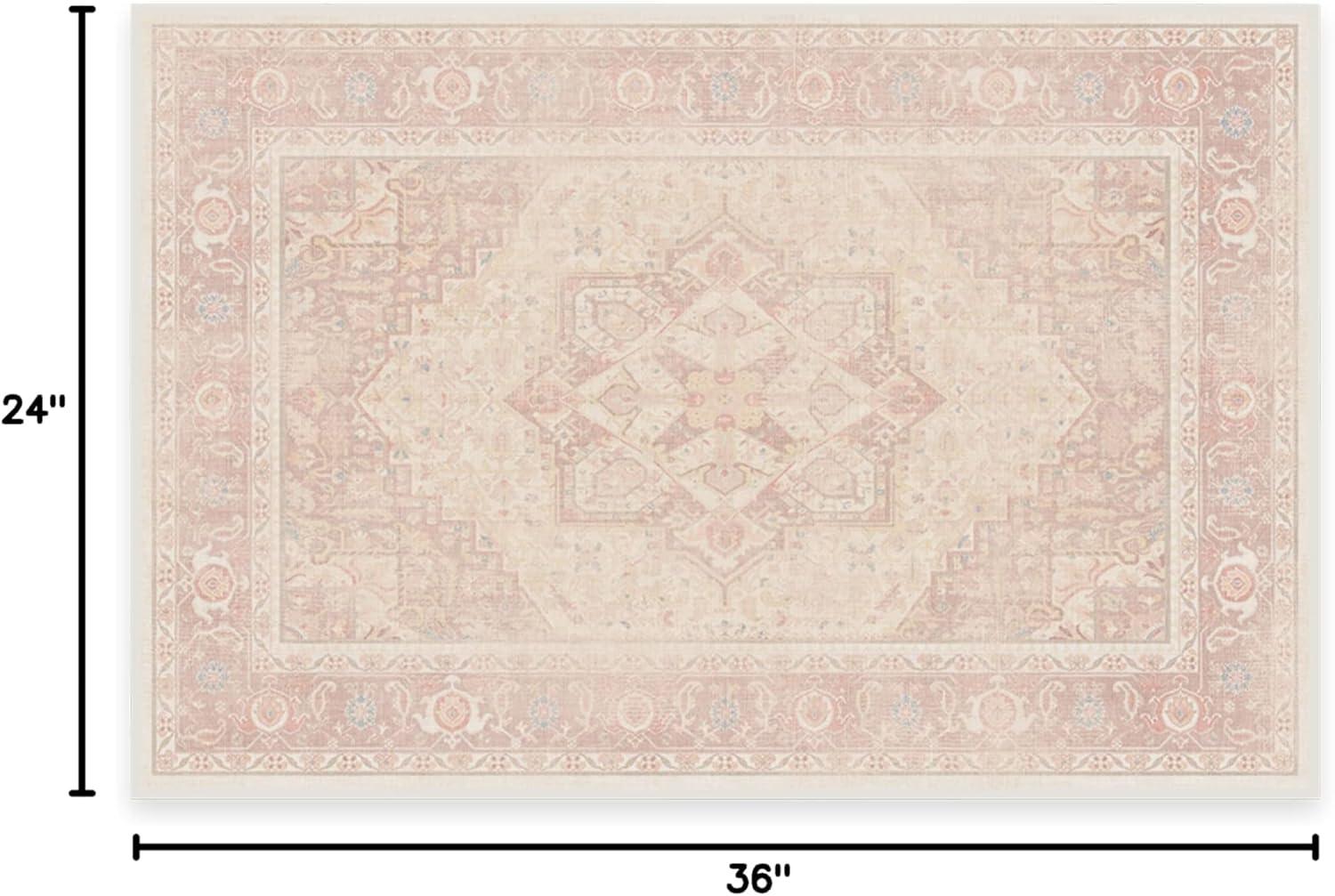 RUGGABLE Washable Vintage Area Rug – Kamran Hazel 3×5, Stain-Resistant, Non-Slip – Small Machine Washable Rugs for Living Room, Bedroom, Hallway, Entryway & Office–with Standard Pad(Pink – Kamran – Standard Pad)