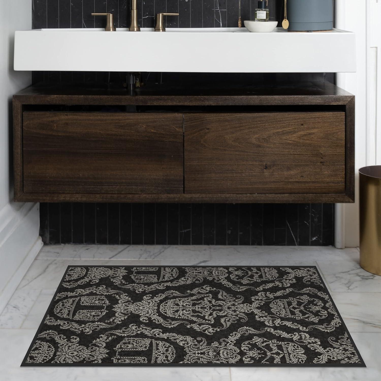 RUGGABLE x Star Wars Washable Area Rug – Grogu Trellis Ash Grey 3×5, Stain-Resistant, Non-Slip – Small Machine Washable Rugs for Living Room, Bedroom, Hallway, Entryway & Office–with Standard Pad(Dark Side Damask Black – Standard Pad)
