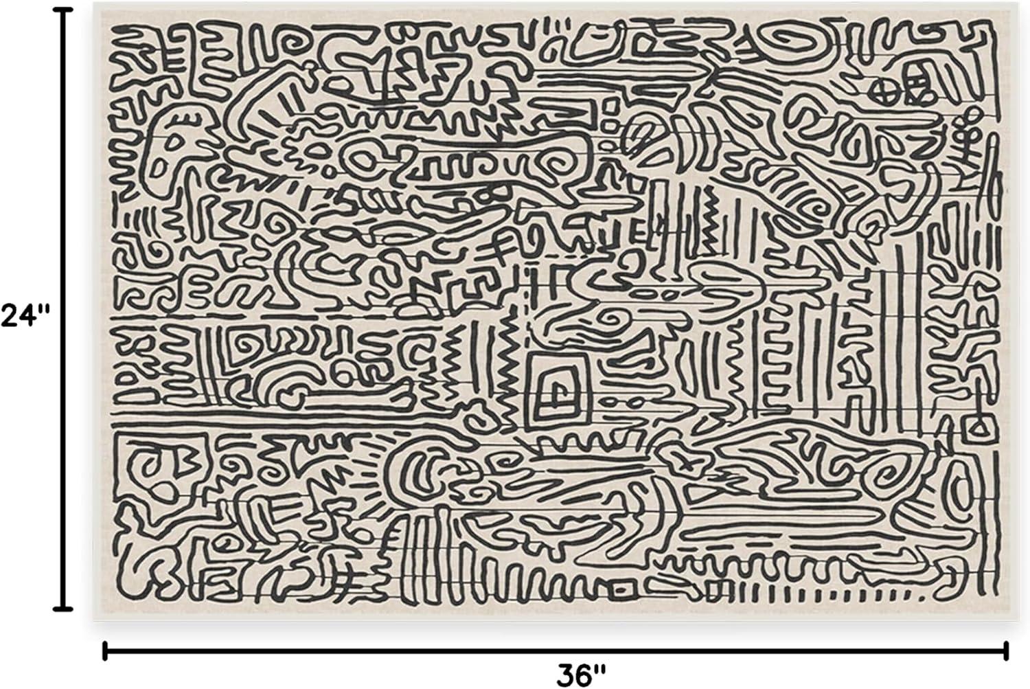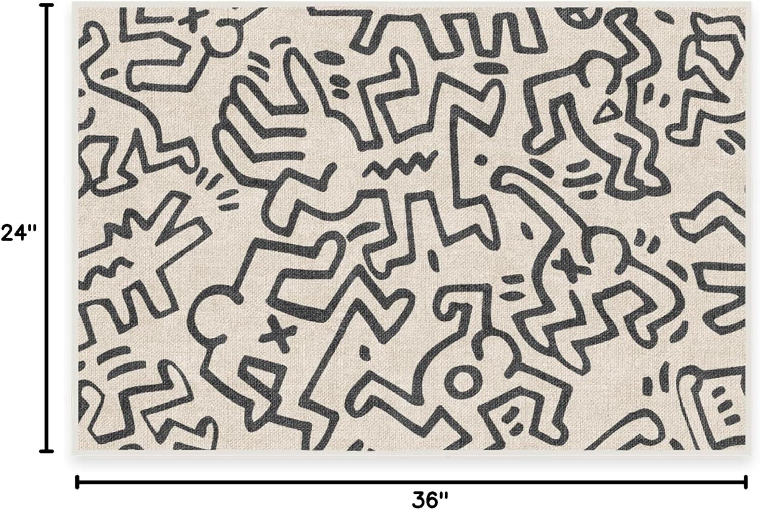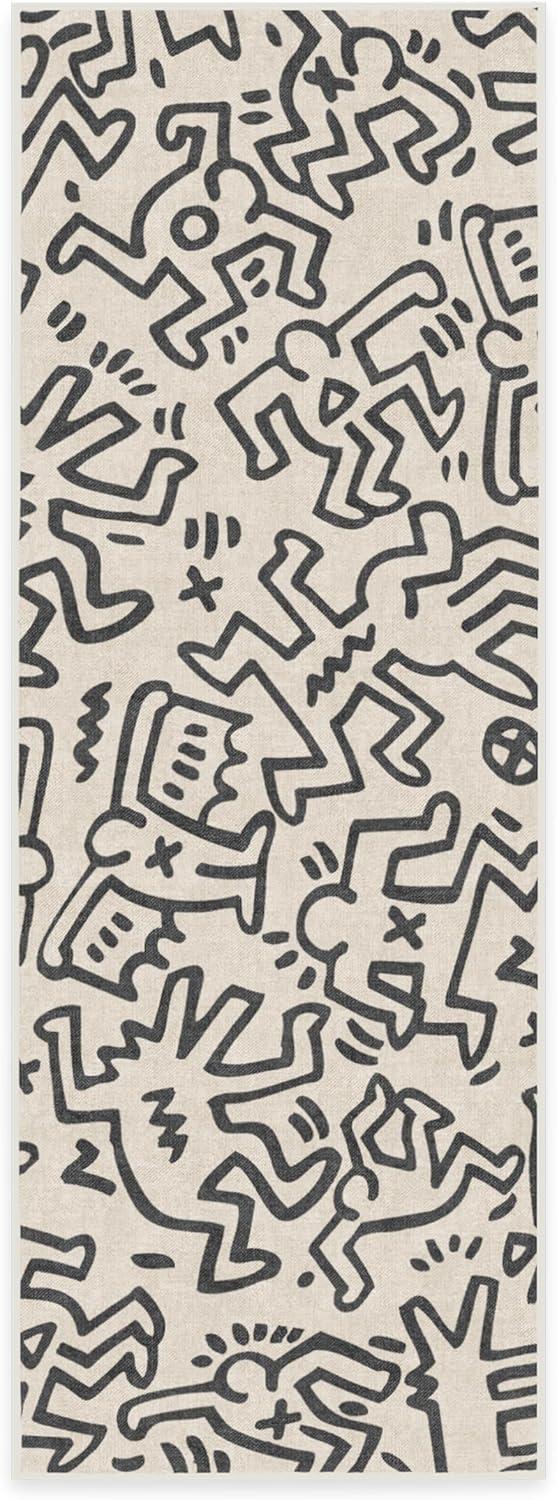 RUGGABLE x Keith Haring Machine Washable Area Rug – Freestyle Black & Ivory 2×3, Stain-Resistant, Non-Slip – Small Rugs for Living Room, Bedroom, Hallway, Entryway & Bathroom–with Standard Pad