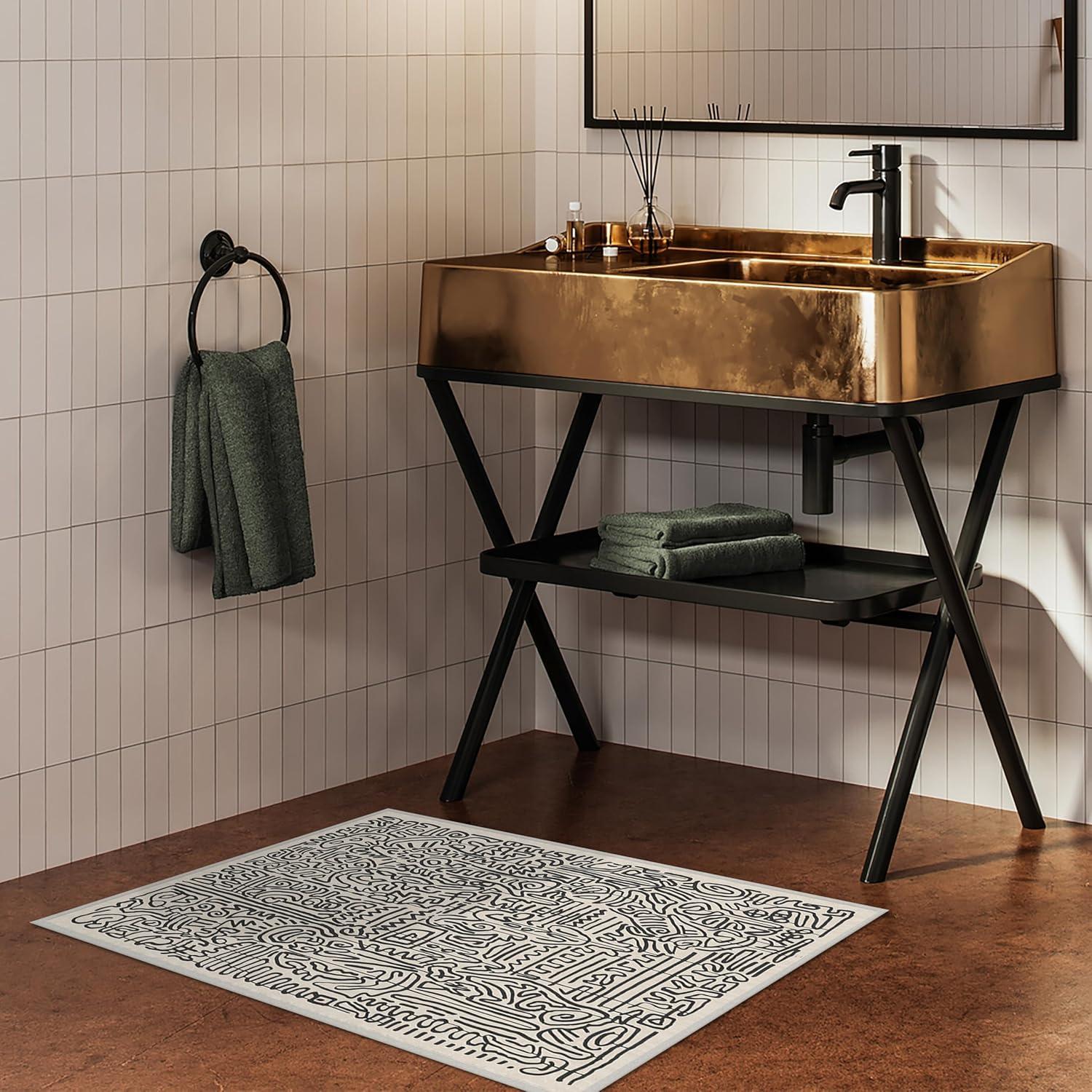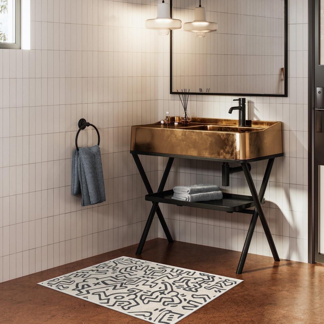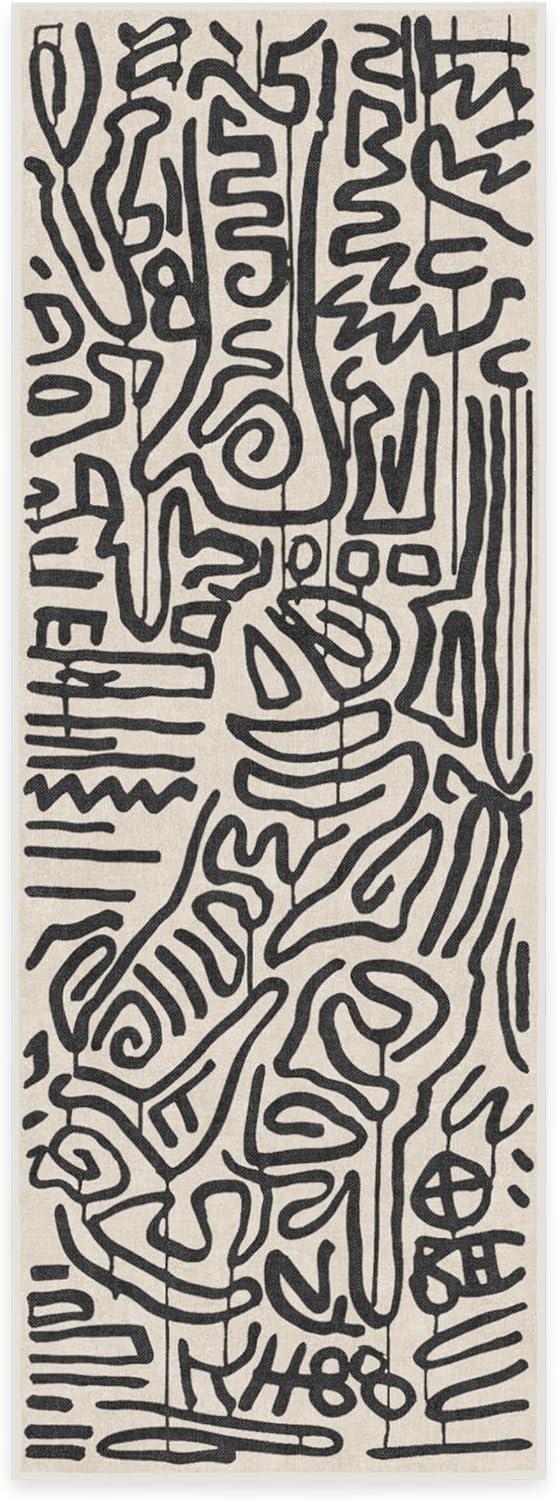 RUGGABLE x Keith Haring Machine Washable Area Rug – Freestyle Black & Ivory 2×3, Stain-Resistant, Non-Slip – Small Rugs for Living Room, Bedroom, Hallway, Entryway & Bathroom–with Standard Pad