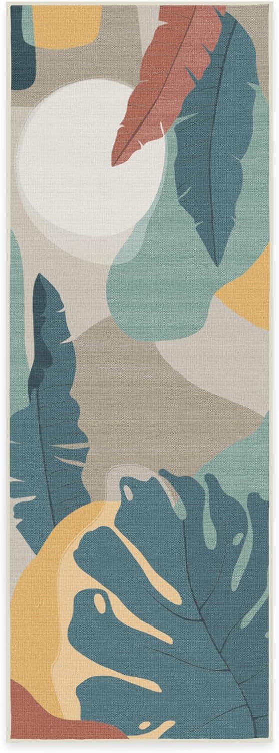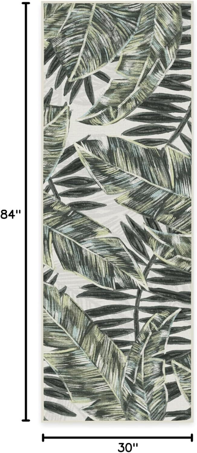 RUGGABLE Washable Area Rug – Outdoor Watercolor Waves Copper Jade 5×7, Stain-Resistant, Non-Slip – Medium Machine Washable Rugs for Entryway, Patio, Balcony, Deck, & Porch–with Standard Pad(Filifera Palm Green – Standard Pad)
