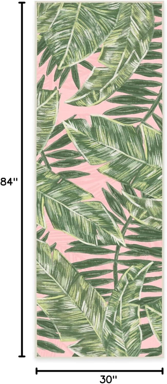 RUGGABLE Washable Area Rug – Outdoor Watercolor Waves Copper Jade 5×7, Stain-Resistant, Non-Slip – Medium Machine Washable Rugs for Entryway, Patio, Balcony, Deck, & Porch–with Standard Pad(Filifera Palm Pink – Standard Pad)