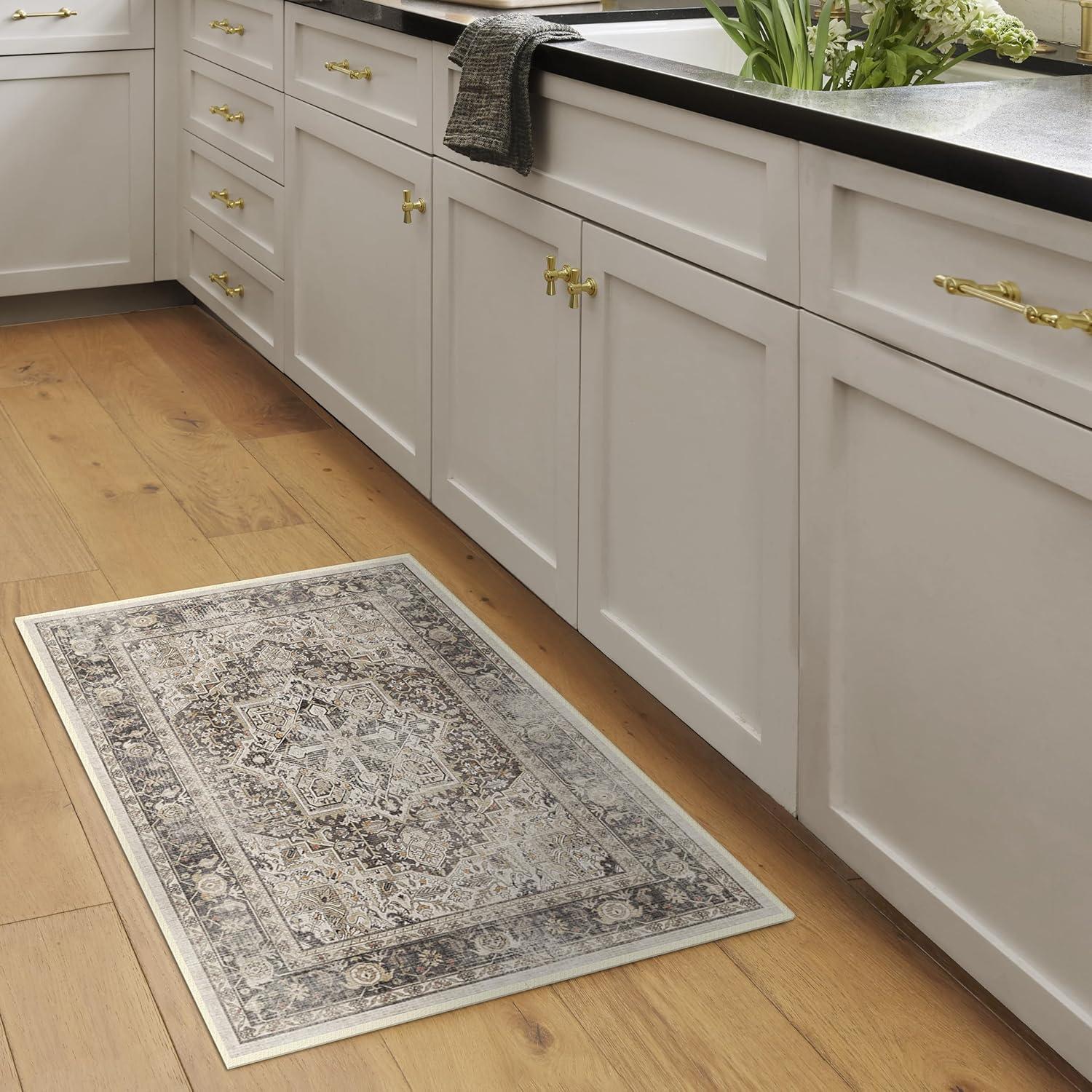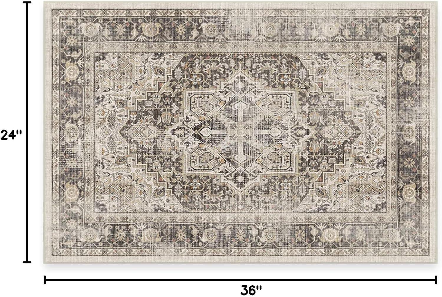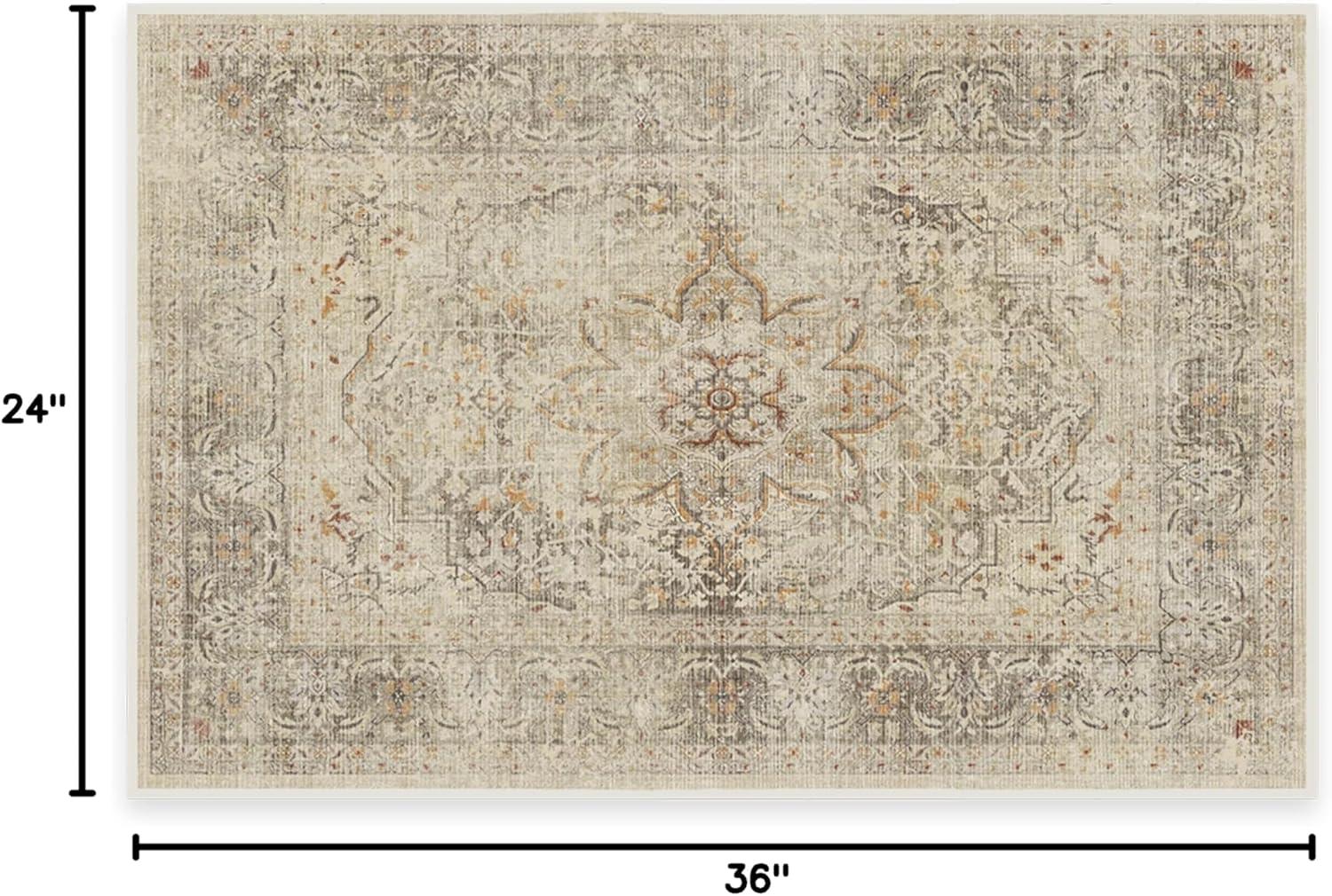RUGGABLE Washable Vintage Area Rug – Kamran Hazel 3×5, Stain-Resistant, Non-Slip – Small Machine Washable Rugs for Living Room, Bedroom, Hallway, Entryway & Office–with Standard Pad(A Hazel – Sarrah – Cushioned Pad)