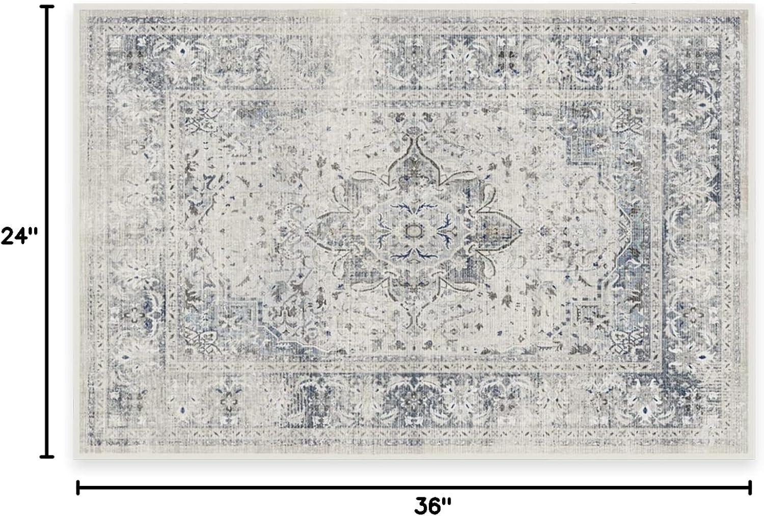 RUGGABLE Washable Vintage Area Rug – Kamran Hazel 3×5, Stain-Resistant, Non-Slip – Small Machine Washable Rugs for Living Room, Bedroom, Hallway, Entryway & Office–with Standard Pad(Blue Quartz – Sarrah – Cushioned Pad)