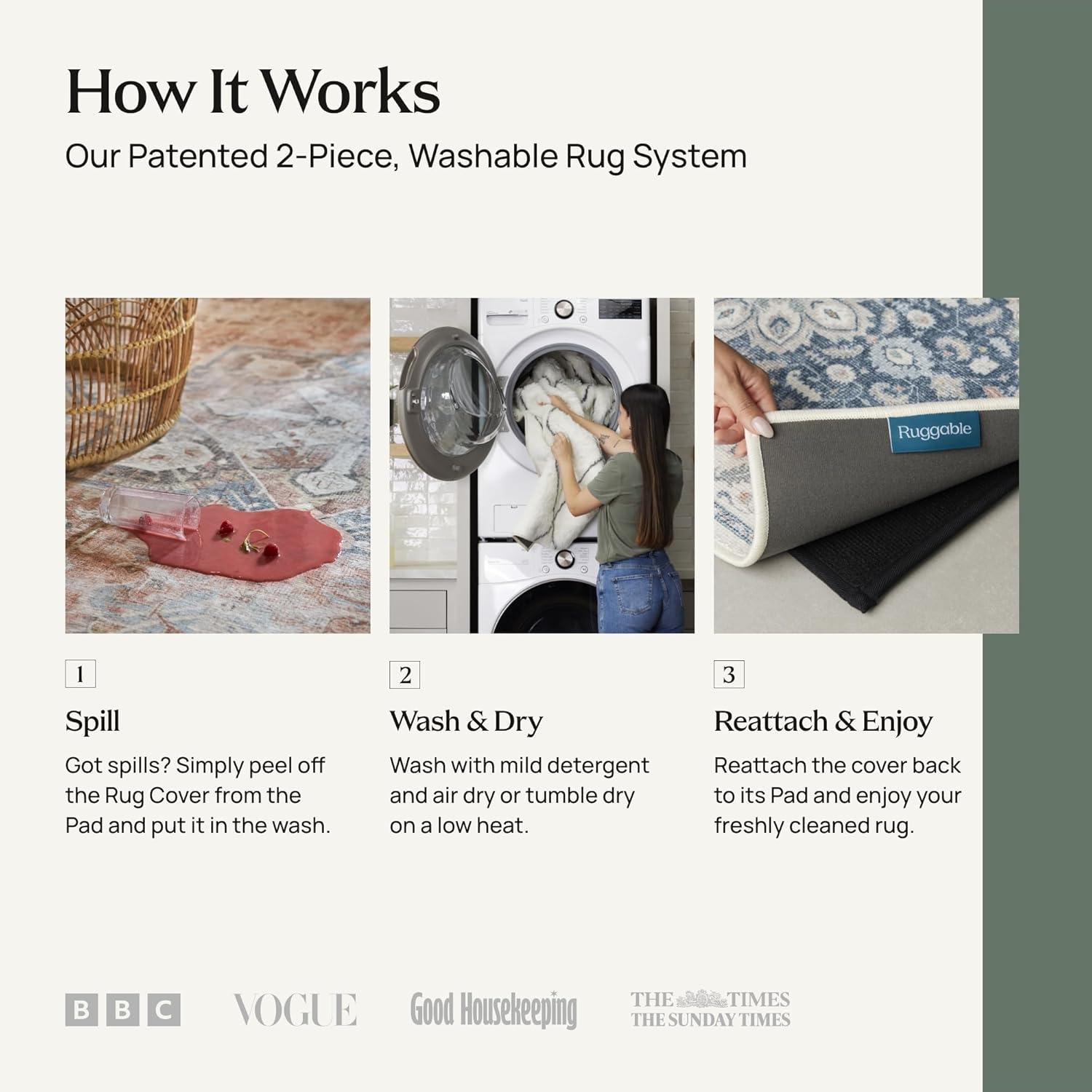 RUGGABLE Washable Area Rug – Outdoor Allura Copper Sage 5×7, Stain-Resistant, Non-Slip – Medium Machine Washable Rugs for Entryway, Patio, Balcony, Deck, & Porch–with Standard Pad(Allura Soft Navy – Standard Pad)