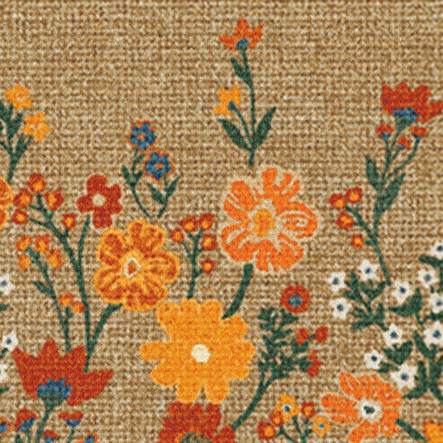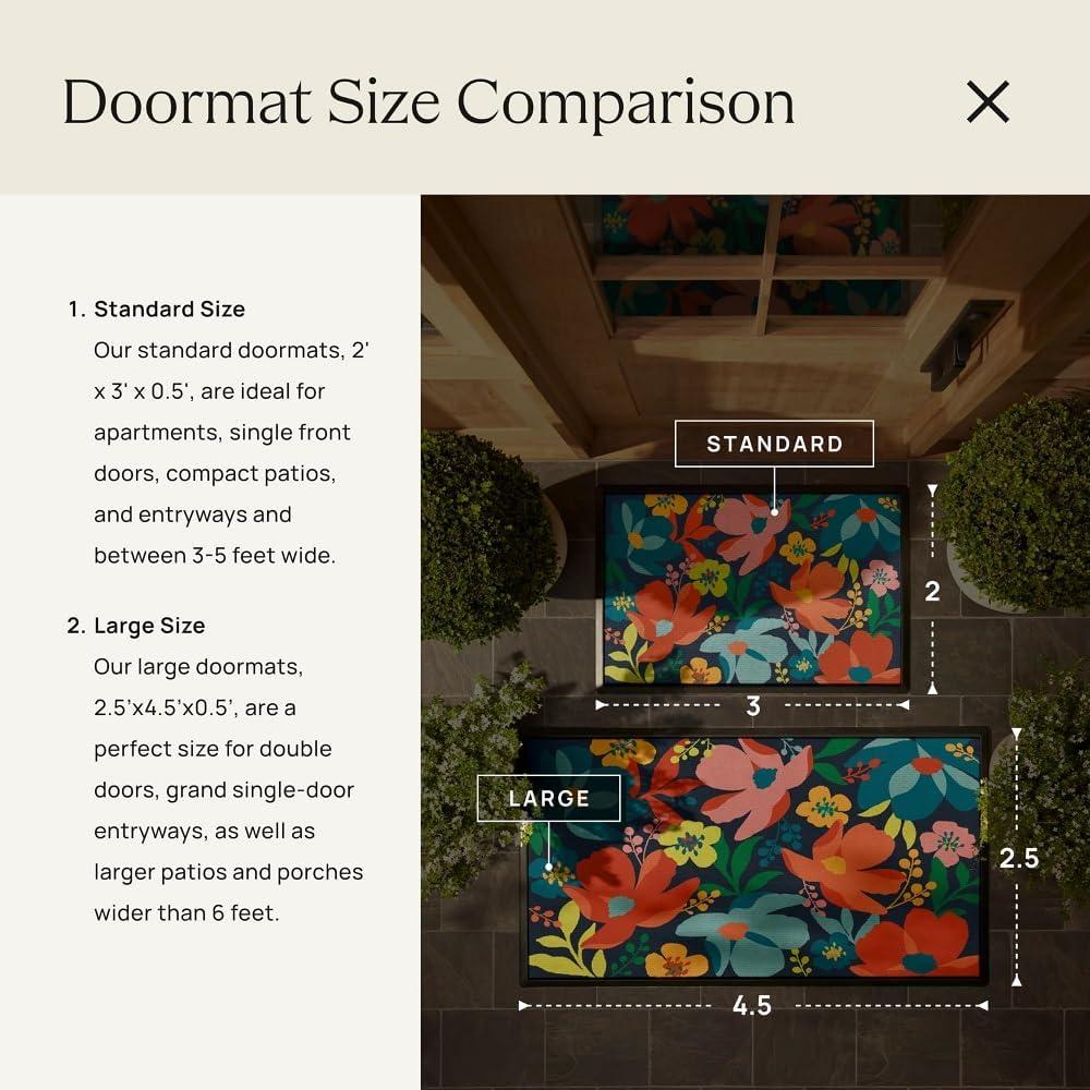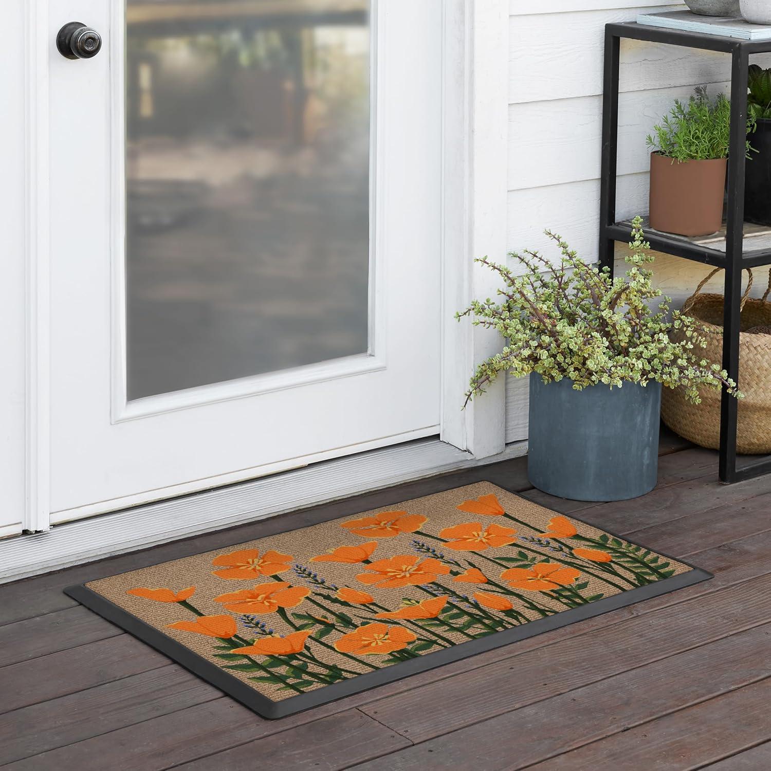 RUGGABLE Washable Front Doormat – Welcome 2×3 Indoor/Outdoor Doormat – Fade–Resistant, Durable, Non–Slip – Welcome Mat for Entryway, Hallway, Bathroom, & Decor – with Standard Pad(A – Poppy Fields)
