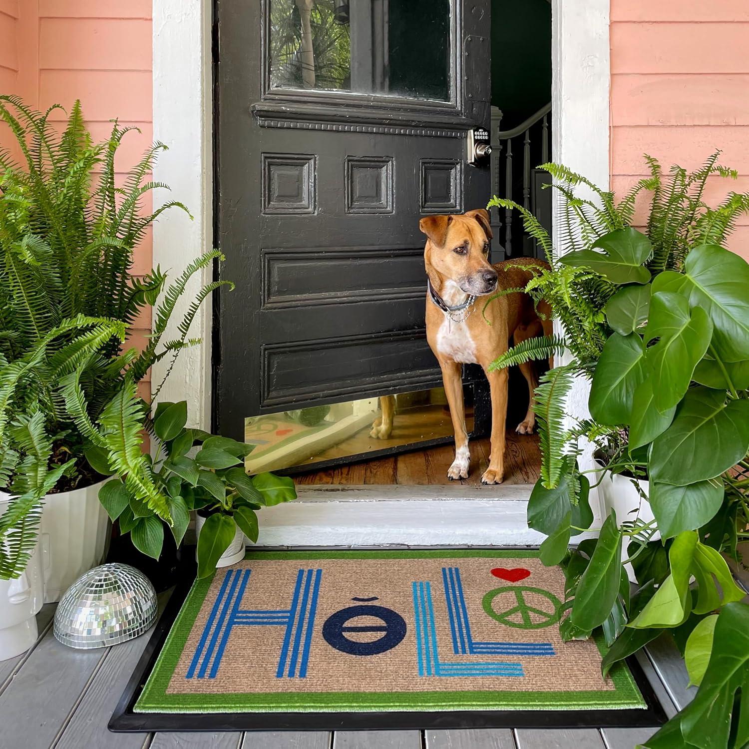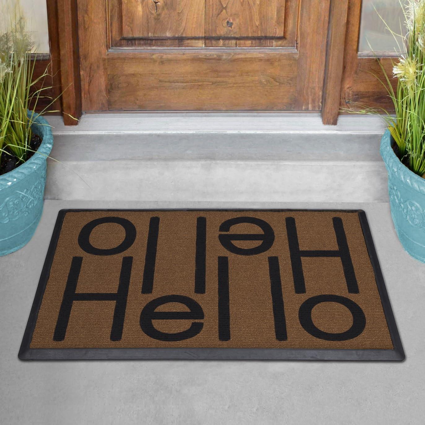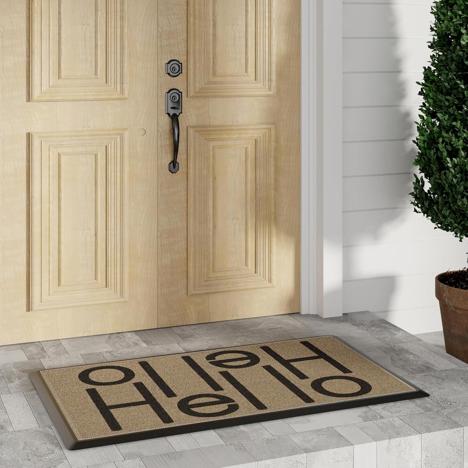 RUGGABLE Washable Front Doormat – Welcome 2×3 Indoor/Outdoor Doormat – Fade–Resistant, Durable, Non–Slip – Welcome Mat for Entryway, Hallway, Bathroom, & Decor – with Standard Pad(Hello)