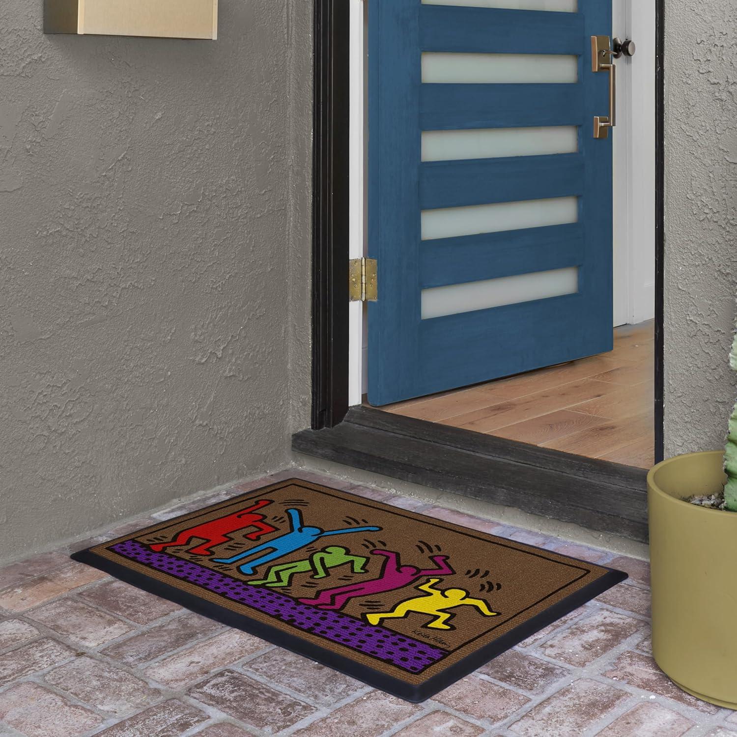 RUGGABLE Washable Front Doormat – Welcome 2×3 Indoor/Outdoor Doormat – Fade–Resistant, Durable, Non–Slip – Welcome Mat for Entryway, Hallway, Bathroom, & Decor – with Standard Pad(Keith Haring Barking Dog Blue)