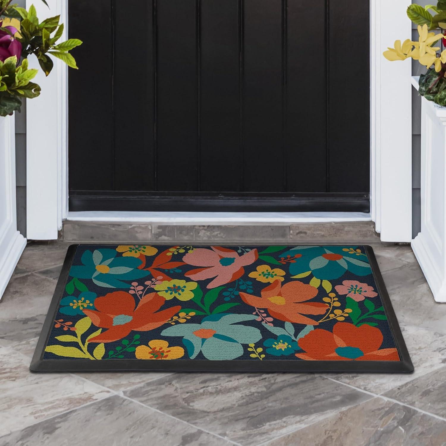 RUGGABLE Washable Front Doormat – Welcome 2×3 Indoor/Outdoor Doormat – Fade–Resistant, Durable, Non–Slip – Welcome Mat for Entryway, Hallway, Bathroom, & Decor – with Standard Pad(C – Multicolor Blossom)