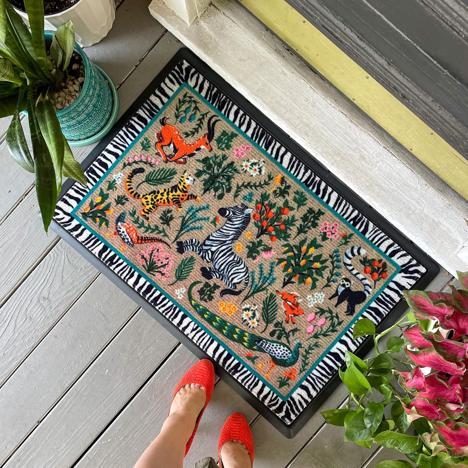 RUGGABLE Washable Front Doormat – Welcome 2×3 Indoor/Outdoor Doormat – Fade–Resistant, Durable, Non–Slip – Welcome Mat for Entryway, Hallway, Bathroom, & Decor – with Standard Pad(Iris Apfel Splendor in the Grass)