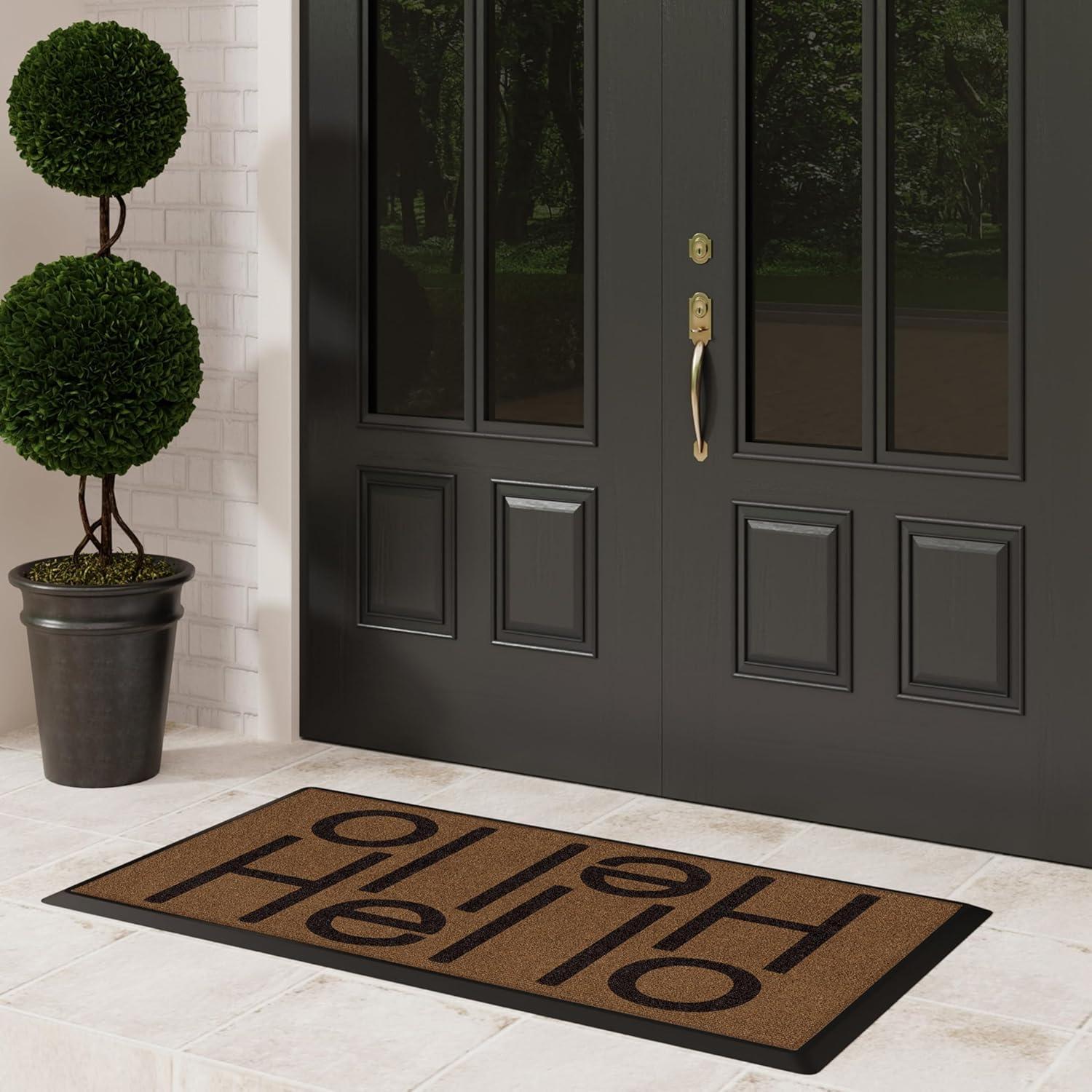 RUGGABLE Washable Front Doormat – Welcome 2×3 Indoor/Outdoor Doormat – Fade–Resistant, Durable, Non–Slip – Welcome Mat for Entryway, Hallway, Bathroom, & Decor – with Standard Pad(Hello – Large Doormat)