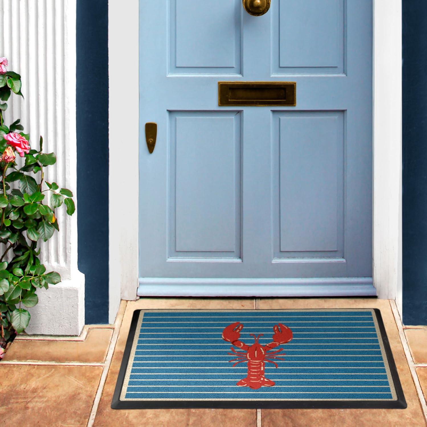 RUGGABLE Washable Front Doormat – Welcome 2×3 Indoor/Outdoor Doormat – Fade–Resistant, Durable, Non–Slip – Welcome Mat for Entryway, Hallway, Bathroom, & Decor – with Standard Pad(Lobster)