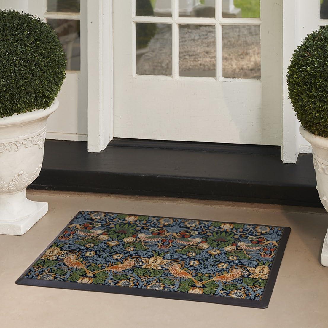 RUGGABLE Washable Front Doormat – Welcome 2×3 Indoor/Outdoor Doormat – Fade–Resistant, Durable, Non–Slip – Welcome Mat for Entryway, Hallway, Bathroom, & Decor – with Standard Pad(B – Strawberry Thief Indigo)