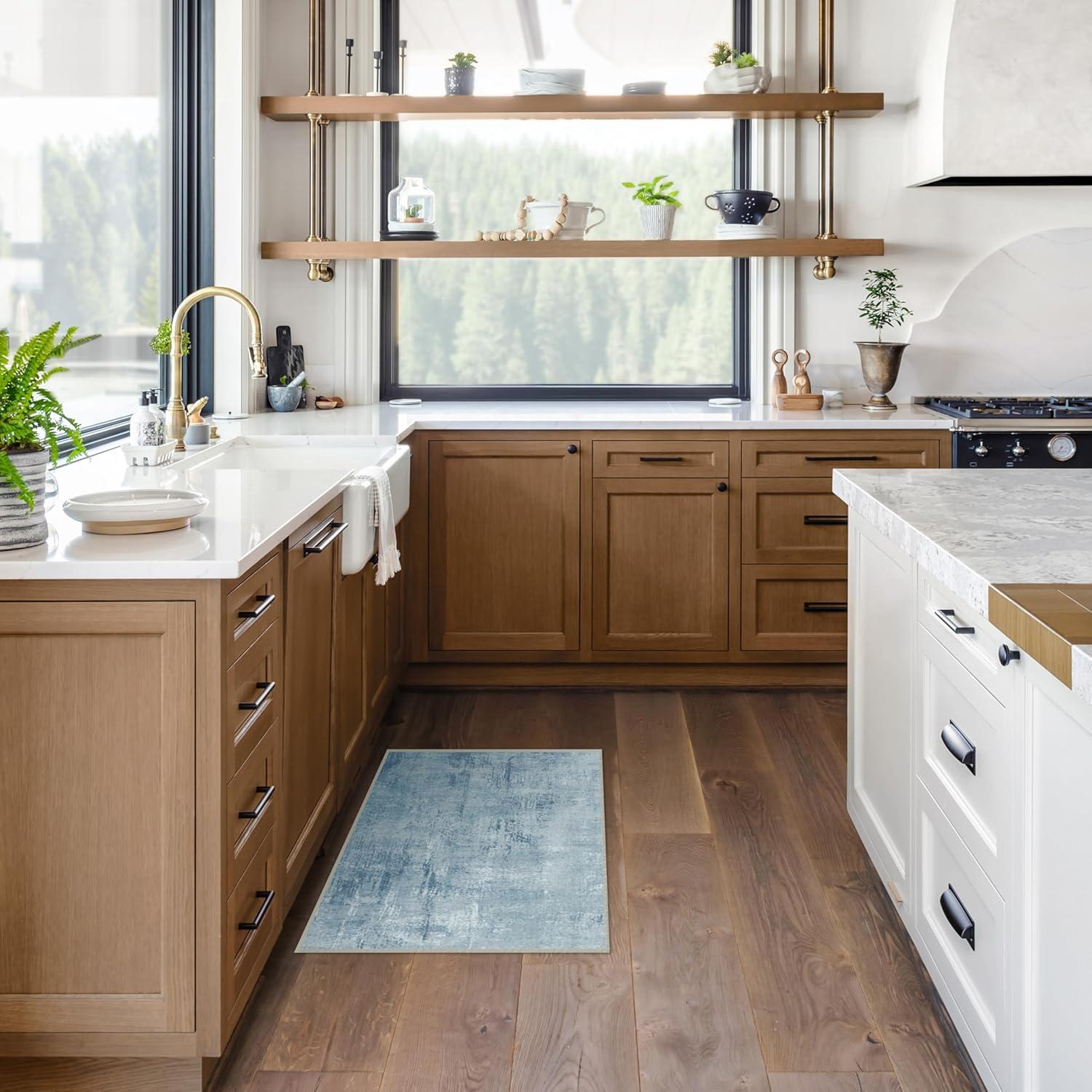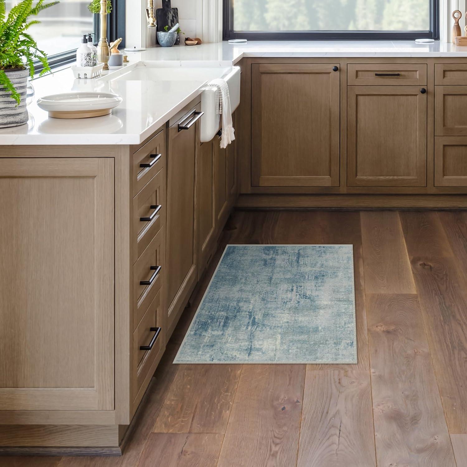 RUGGABLE Washable Area Rug – Alessia Dark Wood 2×3, Stain-Resistant, Non-Slip – Small Machine Washable Rugs for Living Room, Bedroom, Hallway, Entryway & Bathroom–with Standard Pad(Dusk Blue – Standard Pad)