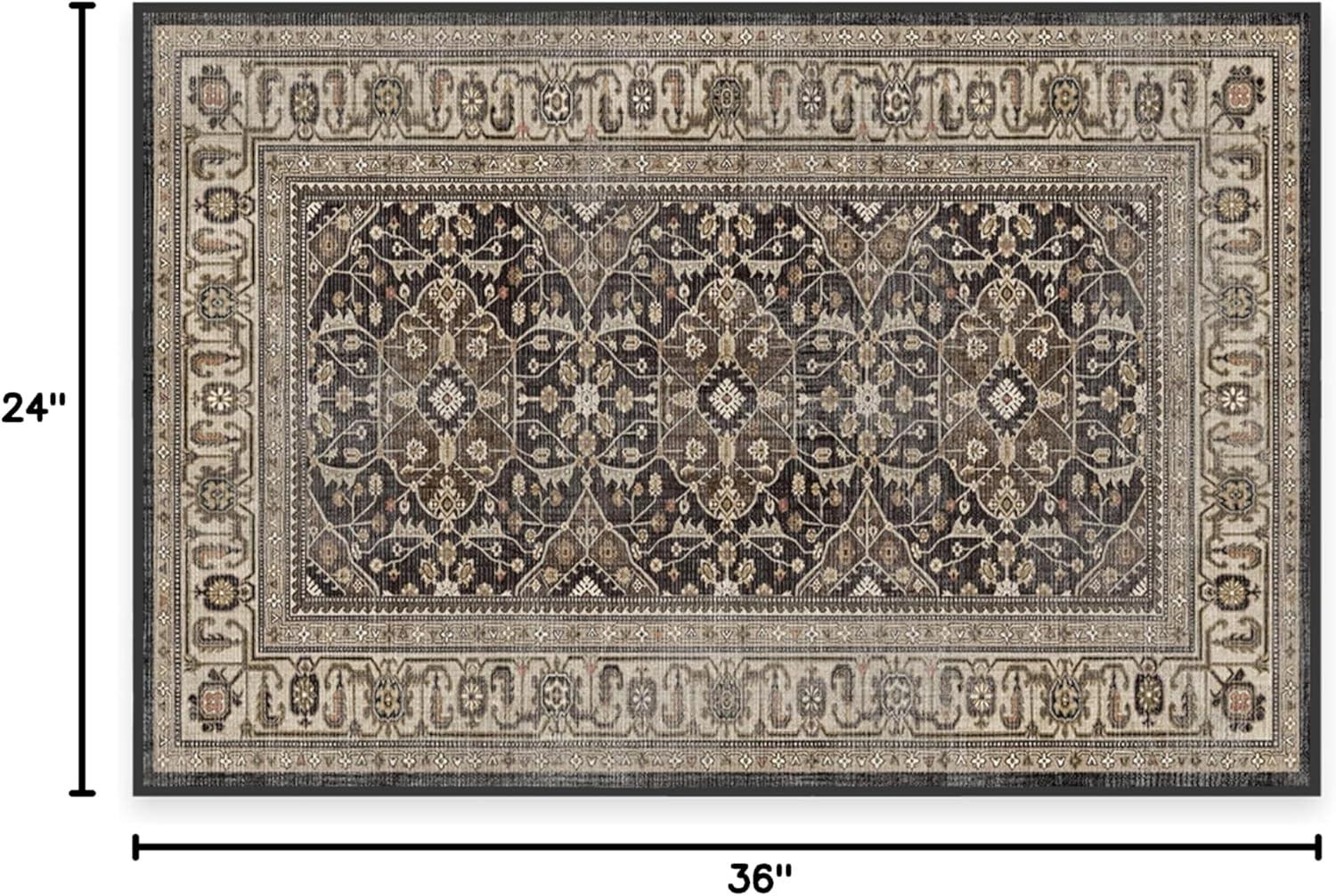 RUGGABLE Washable Area Rug – Alessia Dark Wood 2×3, Stain-Resistant, Non-Slip – Small Machine Washable Rugs for Living Room, Bedroom, Hallway, Entryway & Bathroom–with Standard Pad(Dark Wood – Standard Pad)