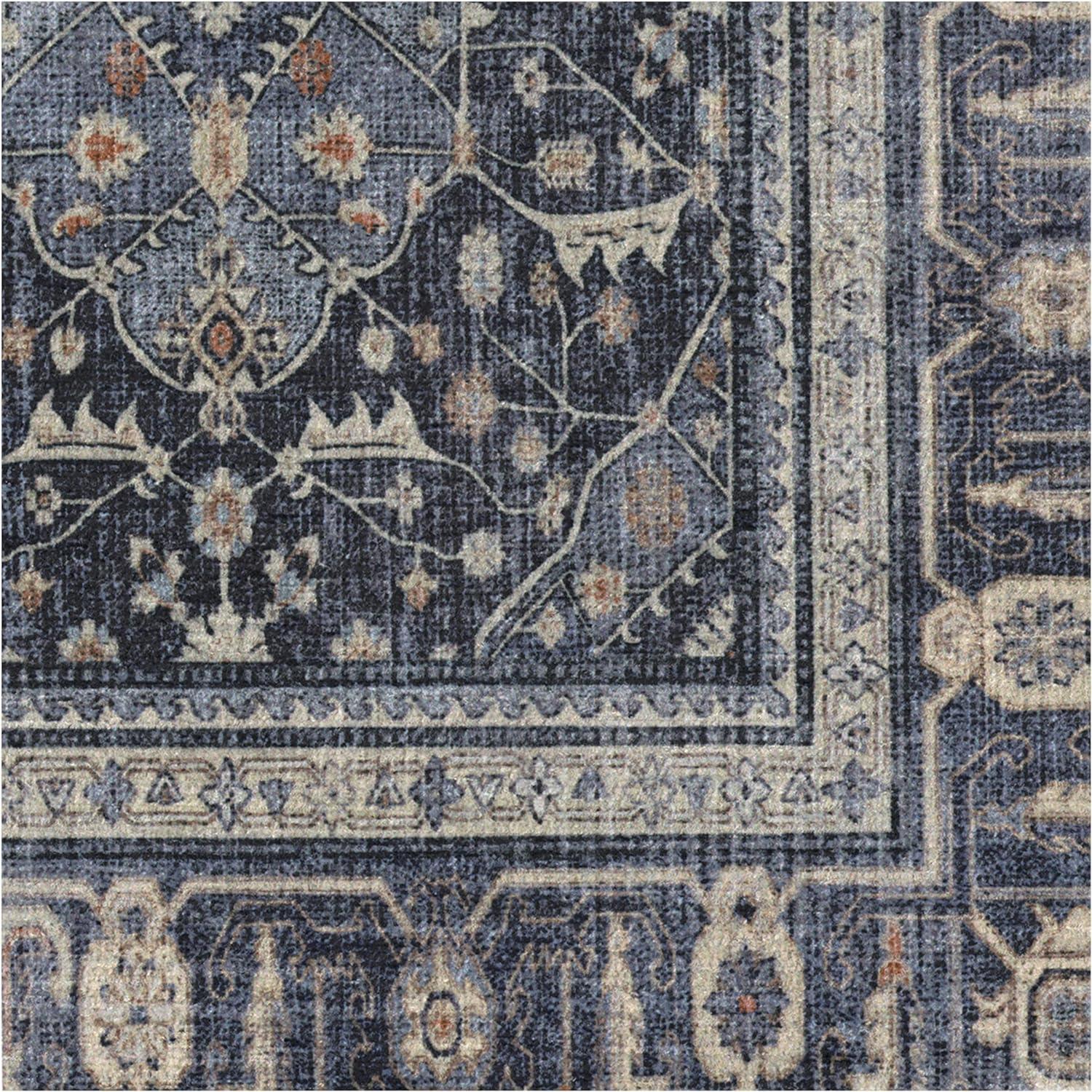 RUGGABLE Washable Area Rug – Alessia Dark Wood 2×3, Stain-Resistant, Non-Slip – Small Machine Washable Rugs for Living Room, Bedroom, Hallway, Entryway & Bathroom–with Standard Pad(Dusk Blue – Cushioned Pad)