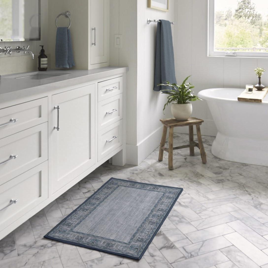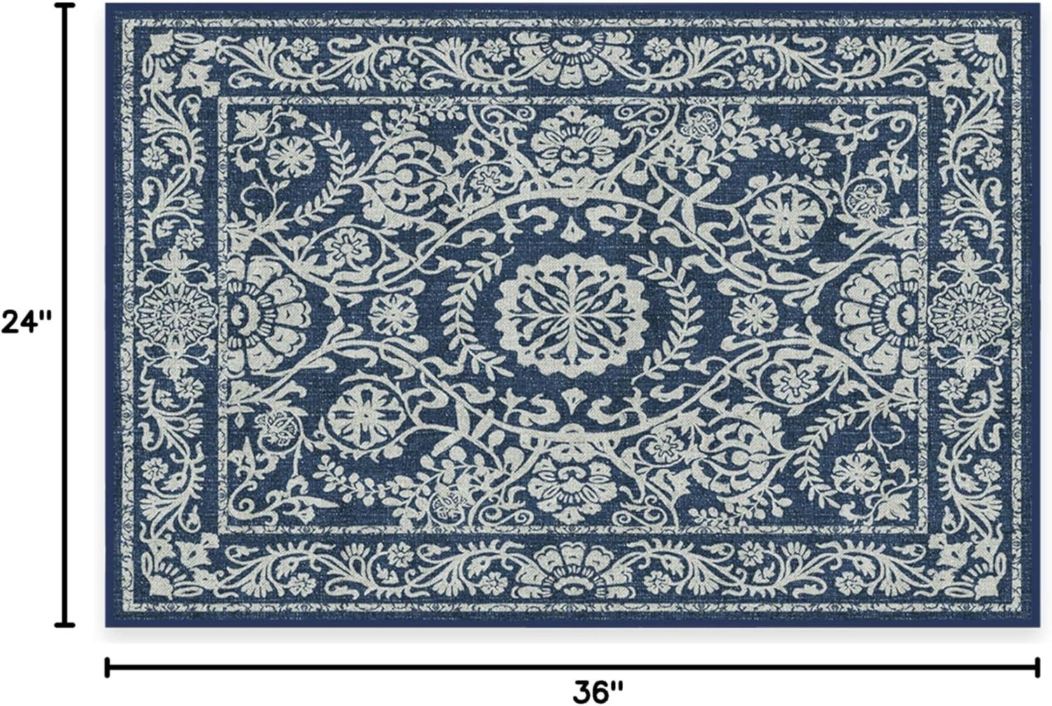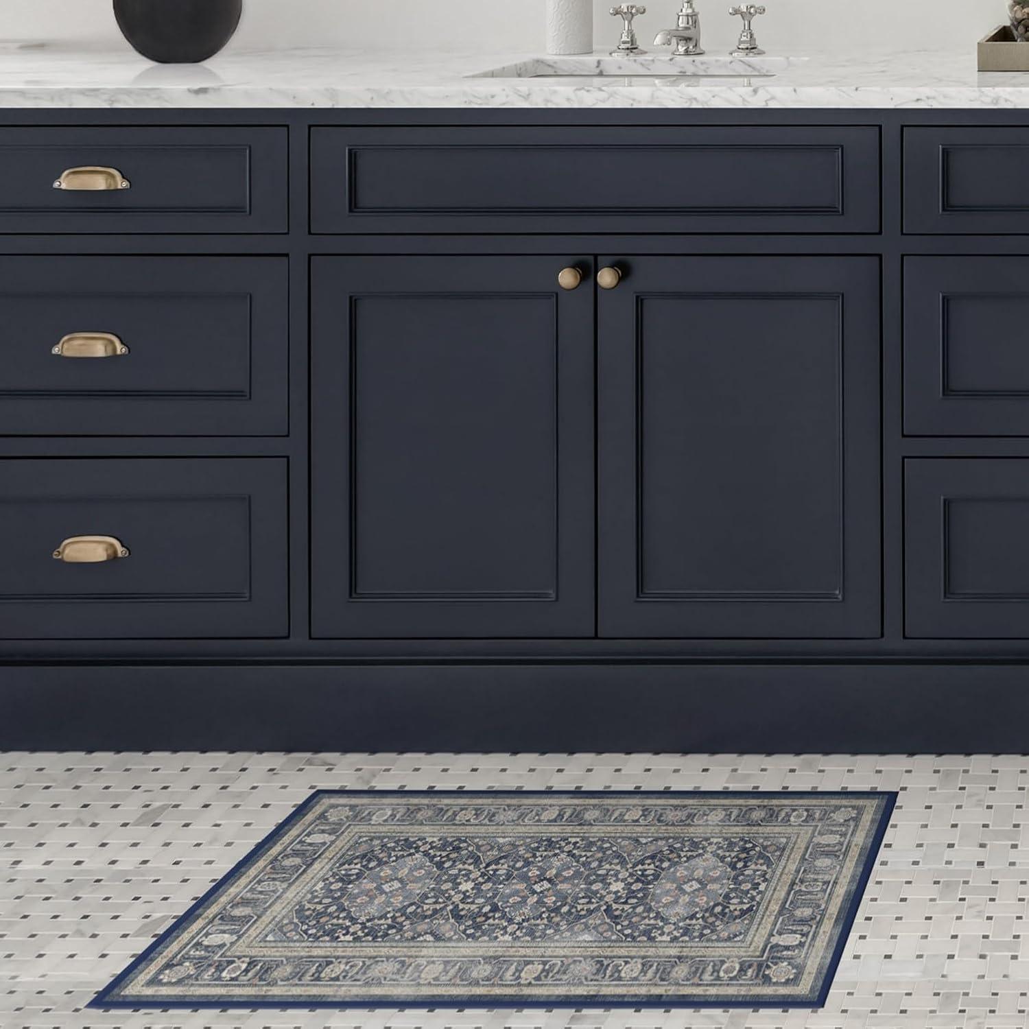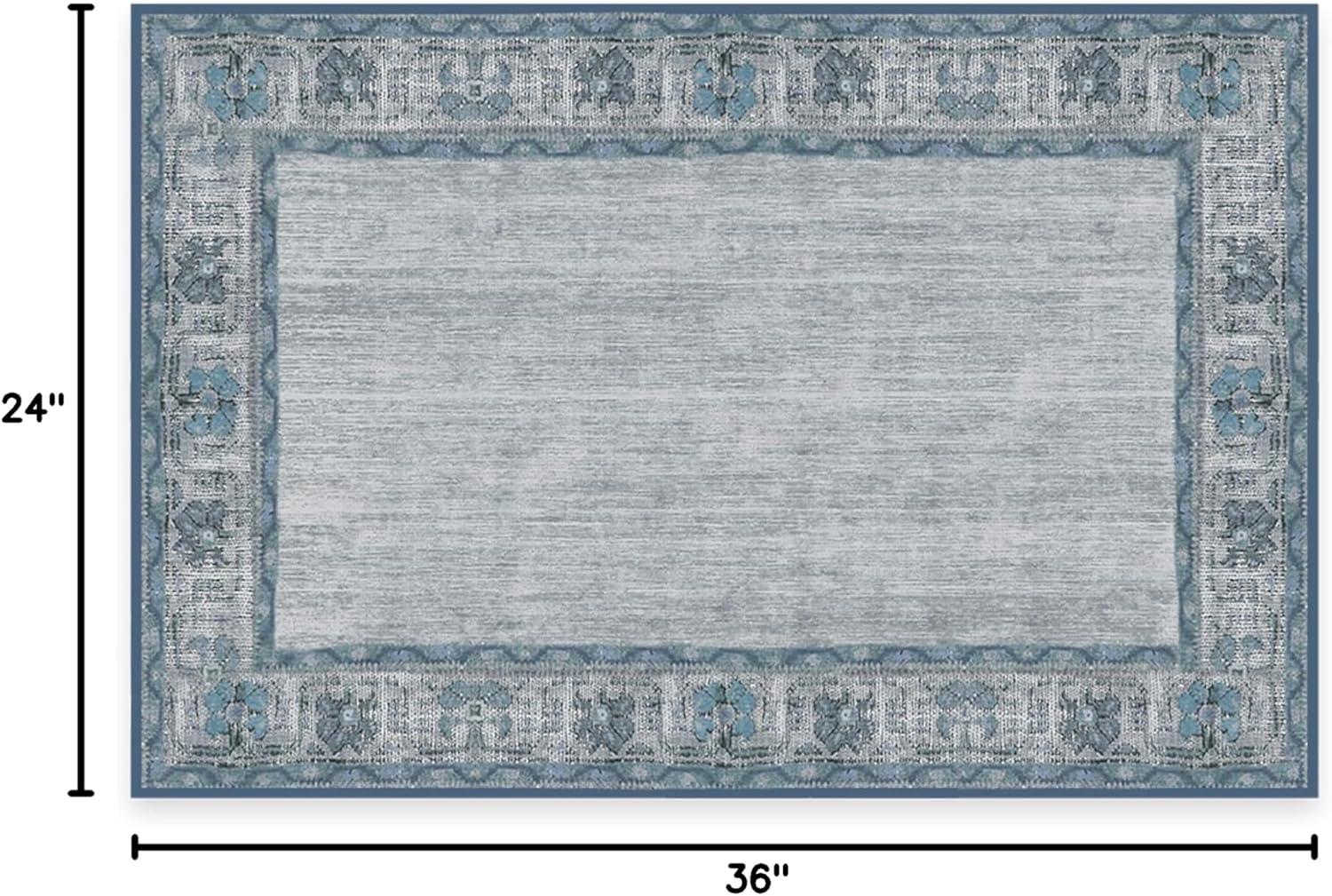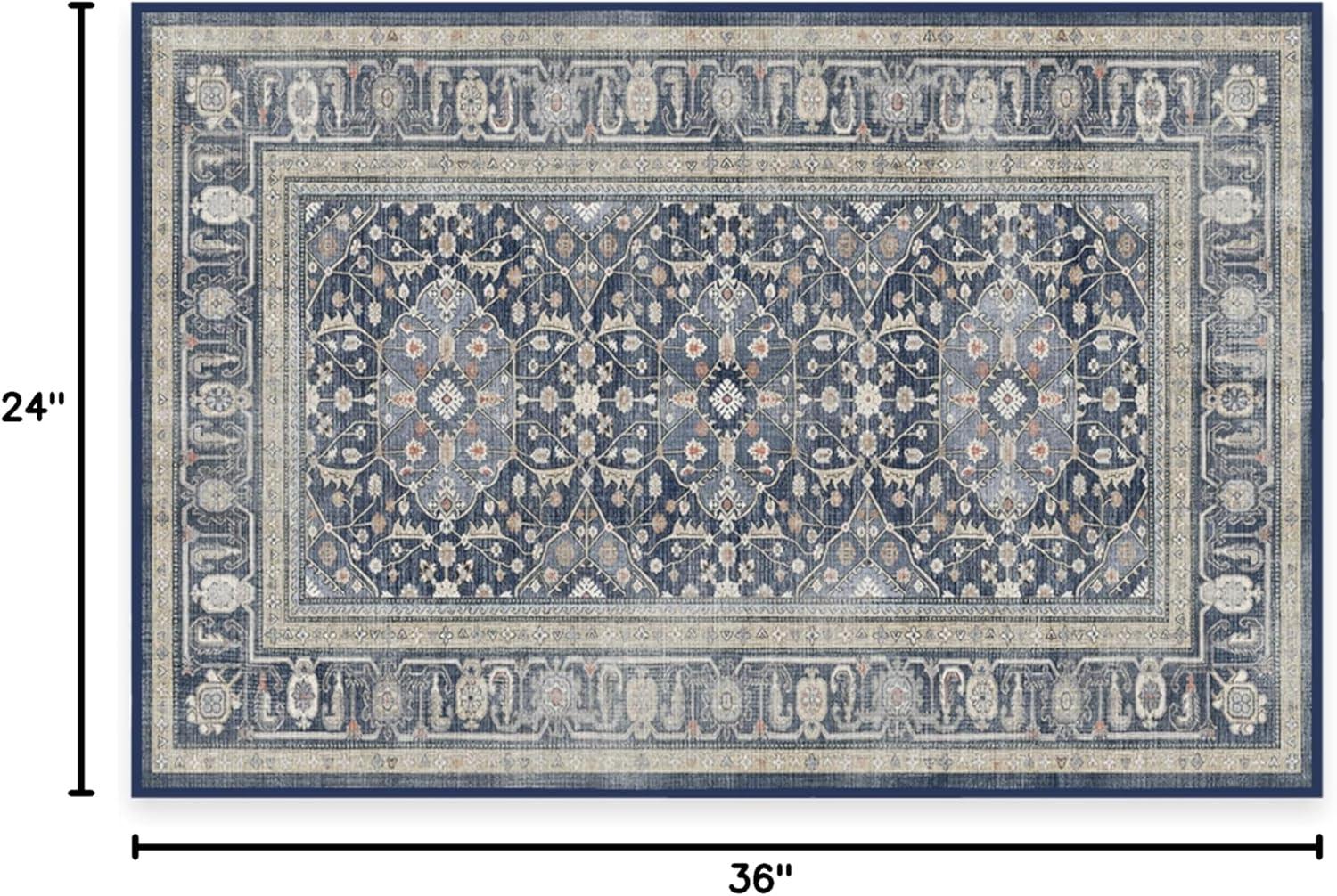 RUGGABLE Washable Area Rug – Alessia Dark Wood 2×3, Stain-Resistant, Non-Slip – Small Machine Washable Rugs for Living Room, Bedroom, Hallway, Entryway & Bathroom–with Standard Pad(Dusk Blue – Standard Pad)