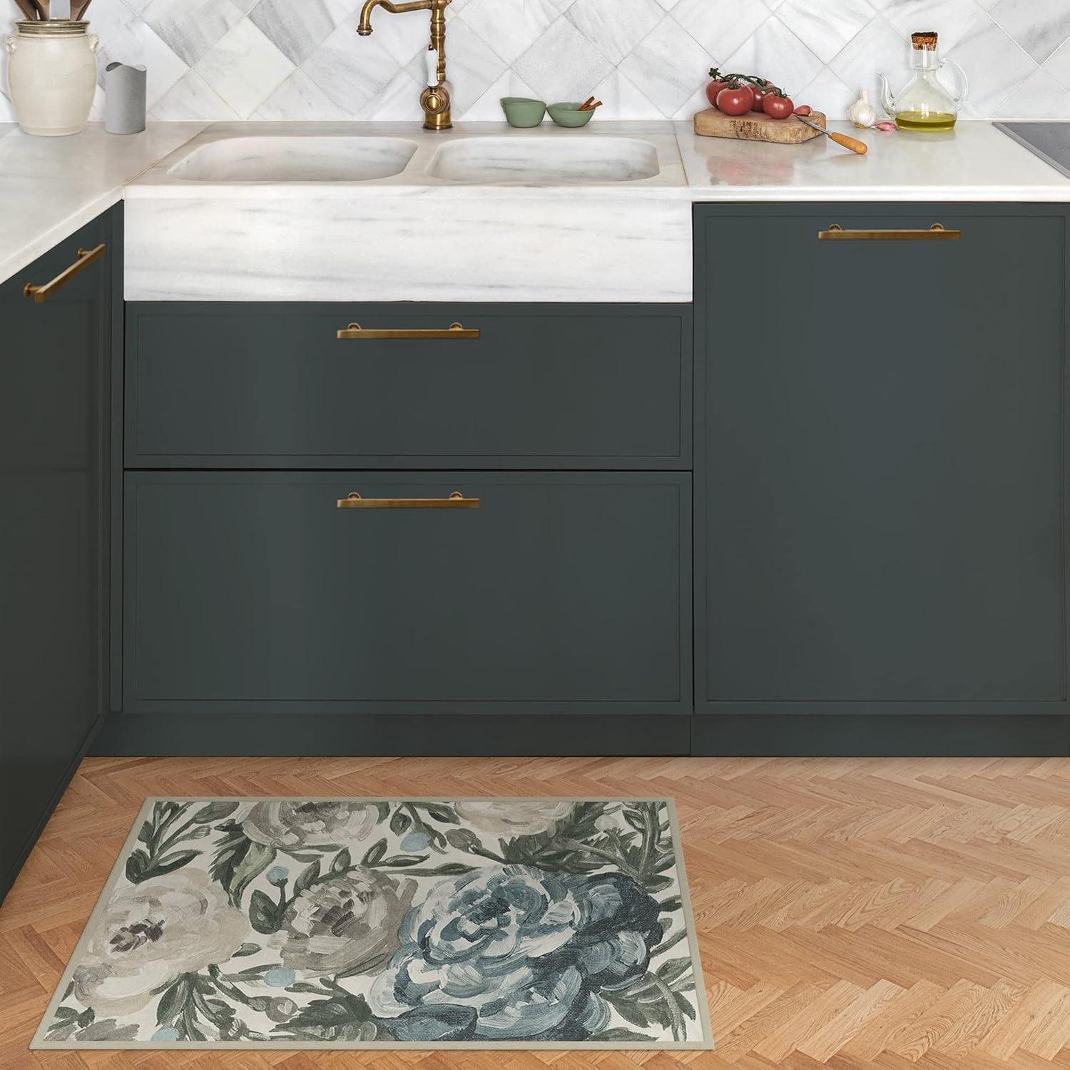 RUGGABLE Washable Area Rug – Camellia Midnight 3×5, Stain-Resistant, Non-Slip – Small Machine Washable Rugs for Living Room, Bedroom, Hallway, Entryway & Office–with Standard Pad(Jade – Cushioned Pad)