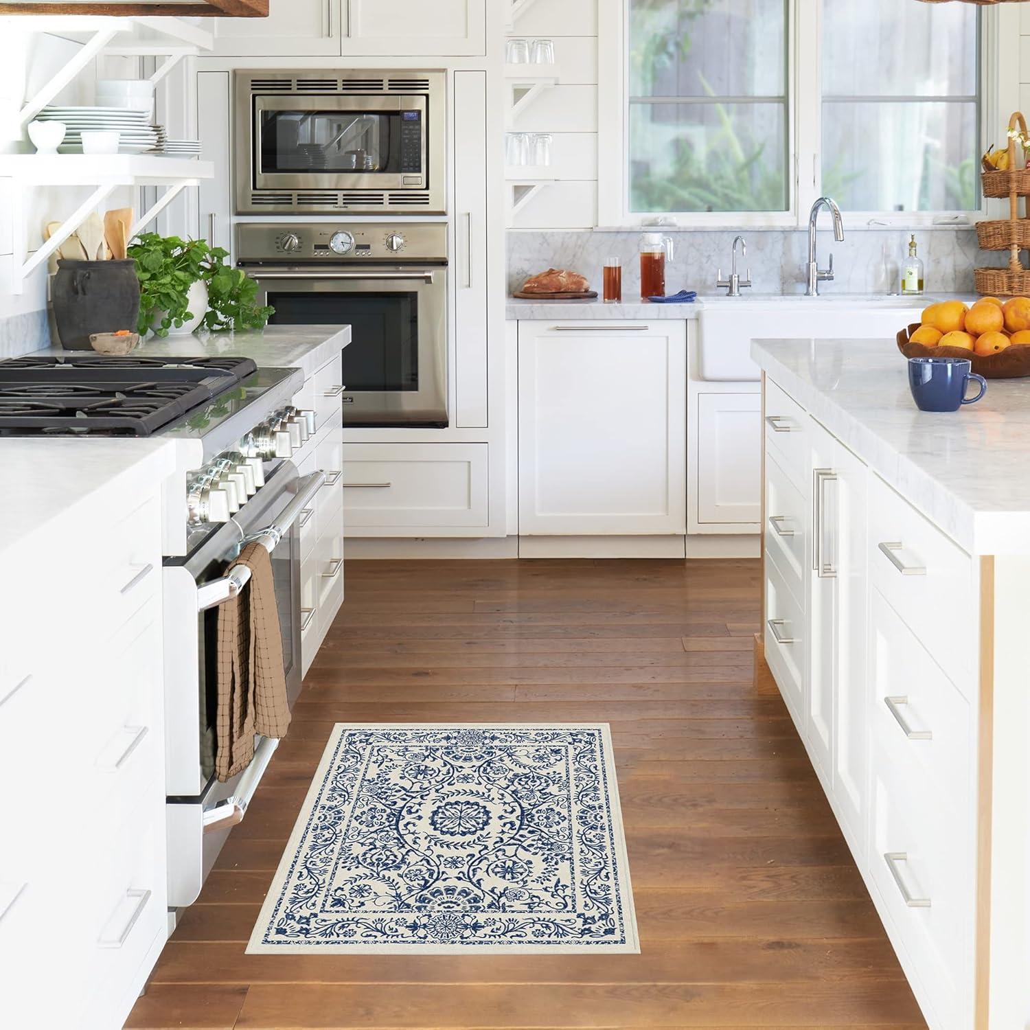 RUGGABLE Washable Area Rug – Delphina Delft Blue 6×9, Stain-Resistant, Non-Slip – Medium Machine Washable Rugs for Living Room, Bedroom, Hallway, Entryway & Office–with Standard Pad(Navy Blue – Cushioned Pad)