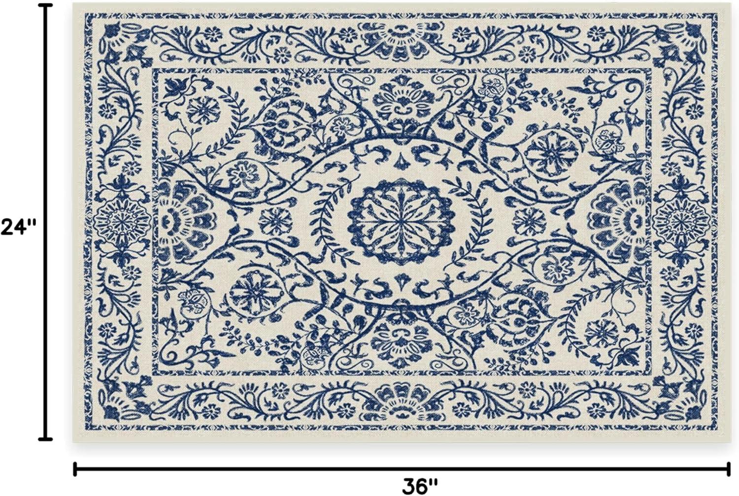 RUGGABLE Washable Area Rug – Zinnia Blue 3×5, Stain-Resistant, Non-Slip – Small Machine Washable Rugs for Living Room, Bedroom, Hallway, Entryway & Office–with Standard Pad(Blue – Cushioned Pad)