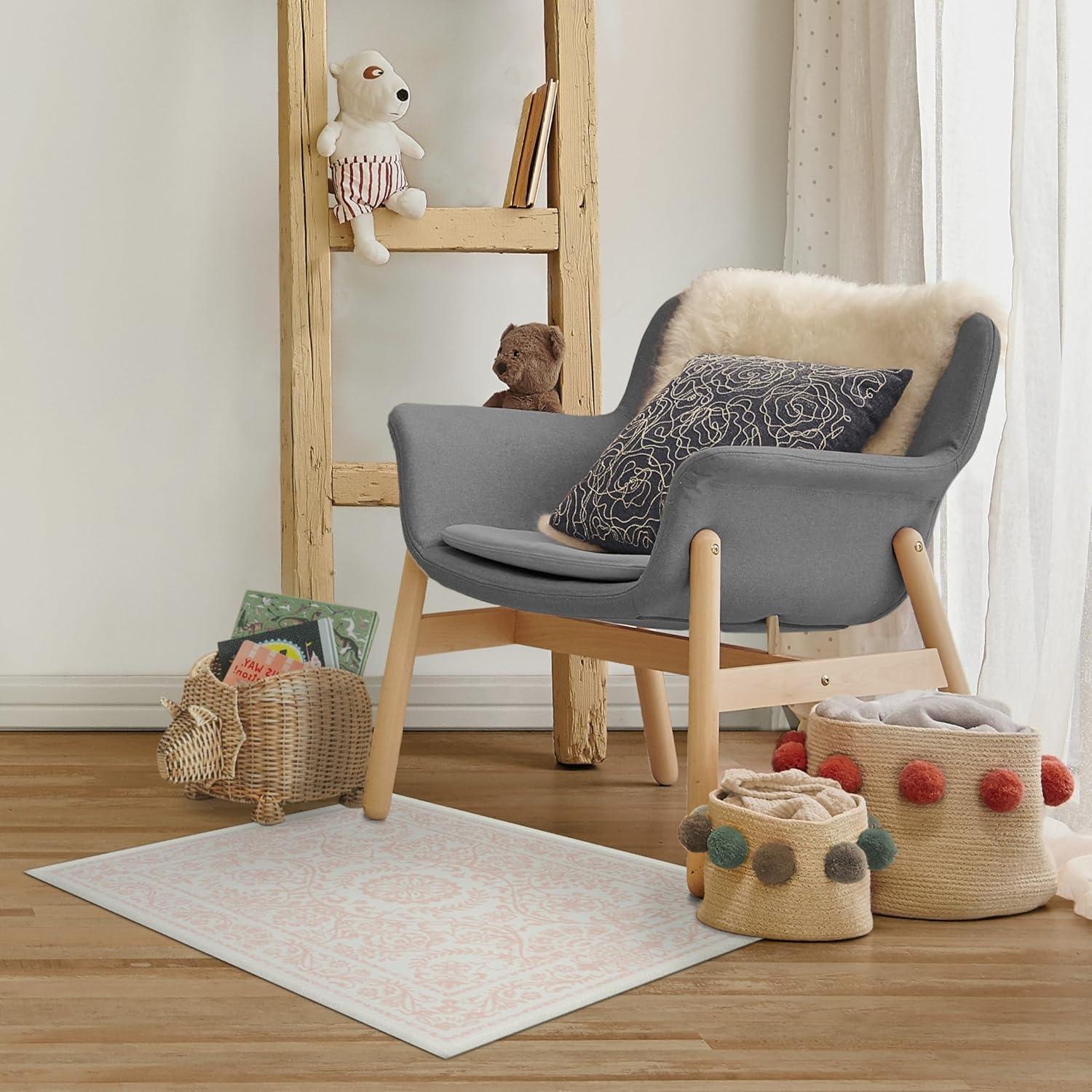 RUGGABLE Washable Area Rug – Delphina Delft Blue 6×9, Stain-Resistant, Non-Slip – Medium Machine Washable Rugs for Living Room, Bedroom, Hallway, Entryway & Office–with Standard Pad(Powder Pink – Standard Pad)