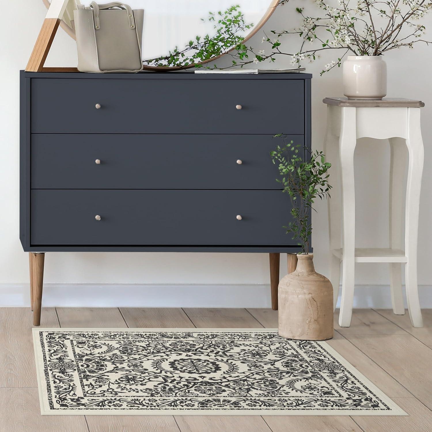 RUGGABLE Washable Area Rug – Camellia Midnight 3×5, Stain-Resistant, Non-Slip – Small Machine Washable Rugs for Living Room, Bedroom, Hallway, Entryway & Office–with Standard Pad(Midnight – Cushioned Pad)