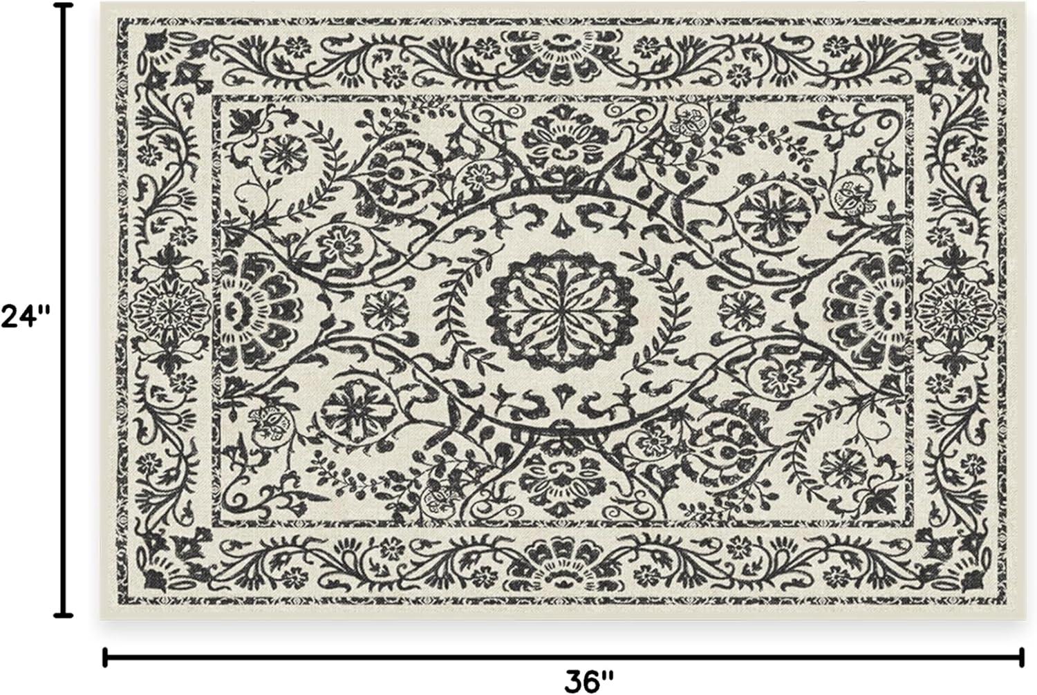 RUGGABLE Washable Area Rug – Delphina Delft Blue 6×9, Stain-Resistant, Non-Slip – Medium Machine Washable Rugs for Living Room, Bedroom, Hallway, Entryway & Office–with Standard Pad(Black & White – Standard Pad)