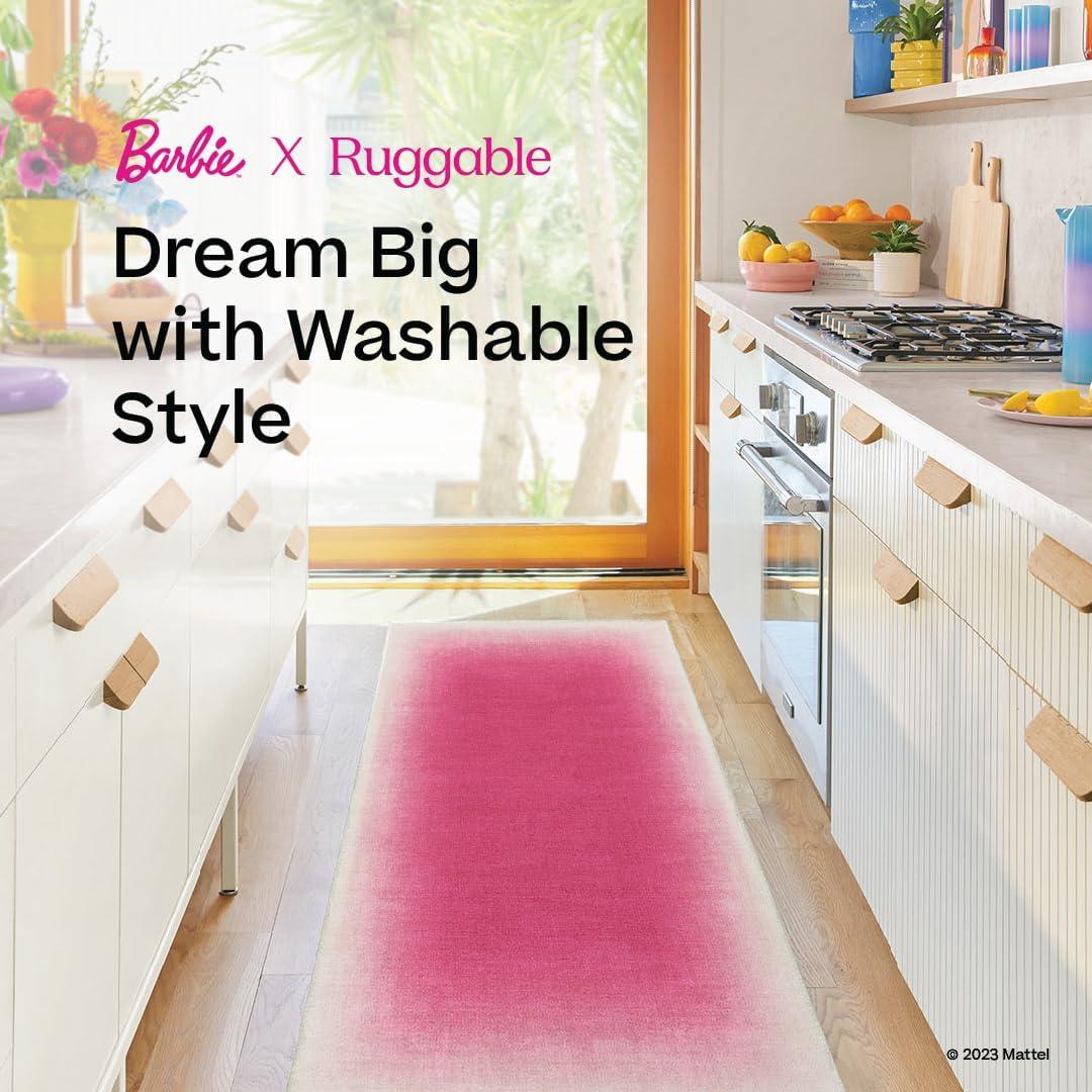 RUGGABLE Washable Front Doormat – Barbie Fuchsia Pink 2×3 Indoor/Outdoor Doormat – Fade–Resistant, Durable, Non–Slip – Welcome Mat for Entryway, Hallway, Bathroom, & Decor – with Standard Pad