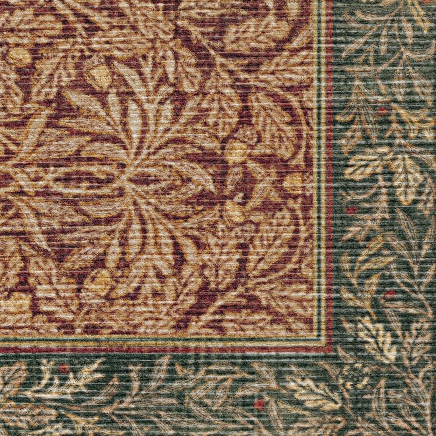 RUGGABLE x Morris & Co Washable Runner Rug – Mallow Rust Red 2.5×7, Stain-Resistant, Non-Slip Hallway Runner – Machine Washable Rug for Hallway, Entryway, Living Room & Kitchen–with Standard Pad(Blackthorn Forest Green – Cushioned Pad)