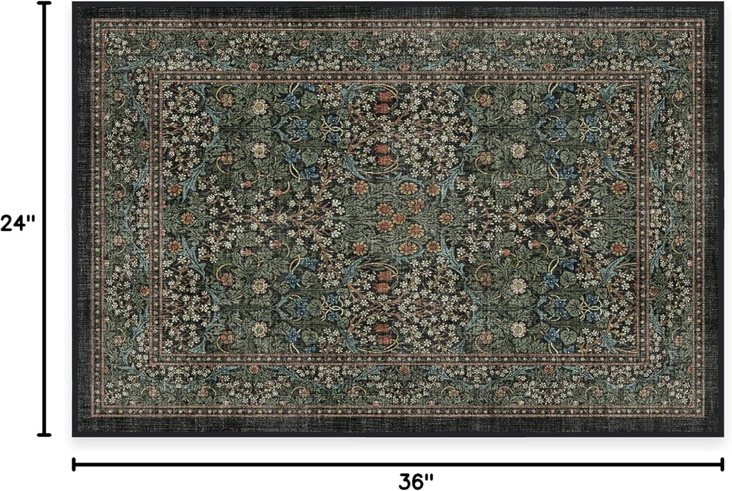RUGGABLE x Morris & Co Washable Runner Rug – Mallow Rust Red 2.5×7, Stain-Resistant, Non-Slip Hallway Runner – Machine Washable Rug for Hallway, Entryway, Living Room & Kitchen–with Standard Pad(Blackthorn Forest Green – Standard Pad)