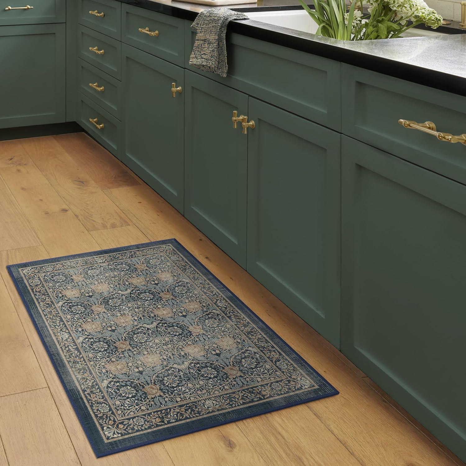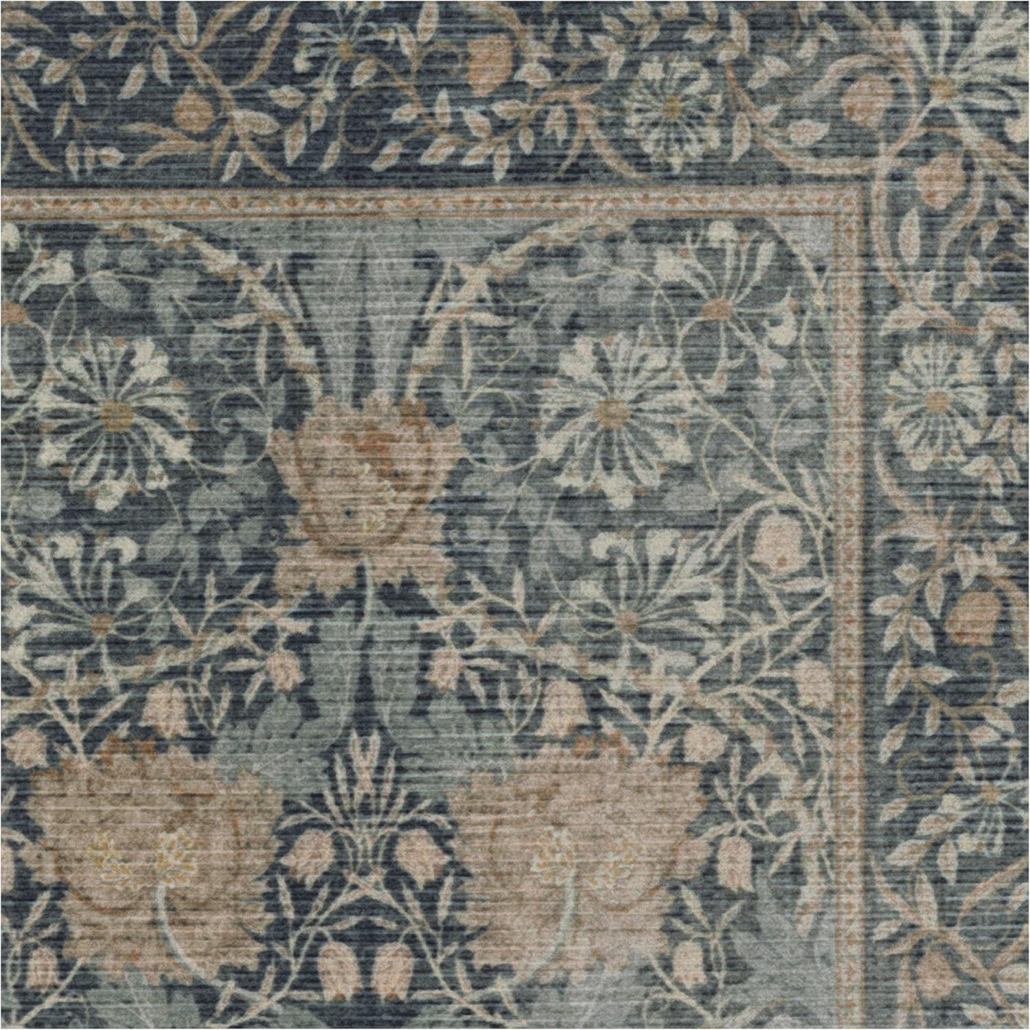 RUGGABLE x Morris & Co Washable Runner Rug – Mallow Rust Red 2.5×7, Stain-Resistant, Non-Slip Hallway Runner – Machine Washable Rug for Hallway, Entryway, Living Room & Kitchen–with Standard Pad(Blackthorn Ivory Blue – Standard Pad)