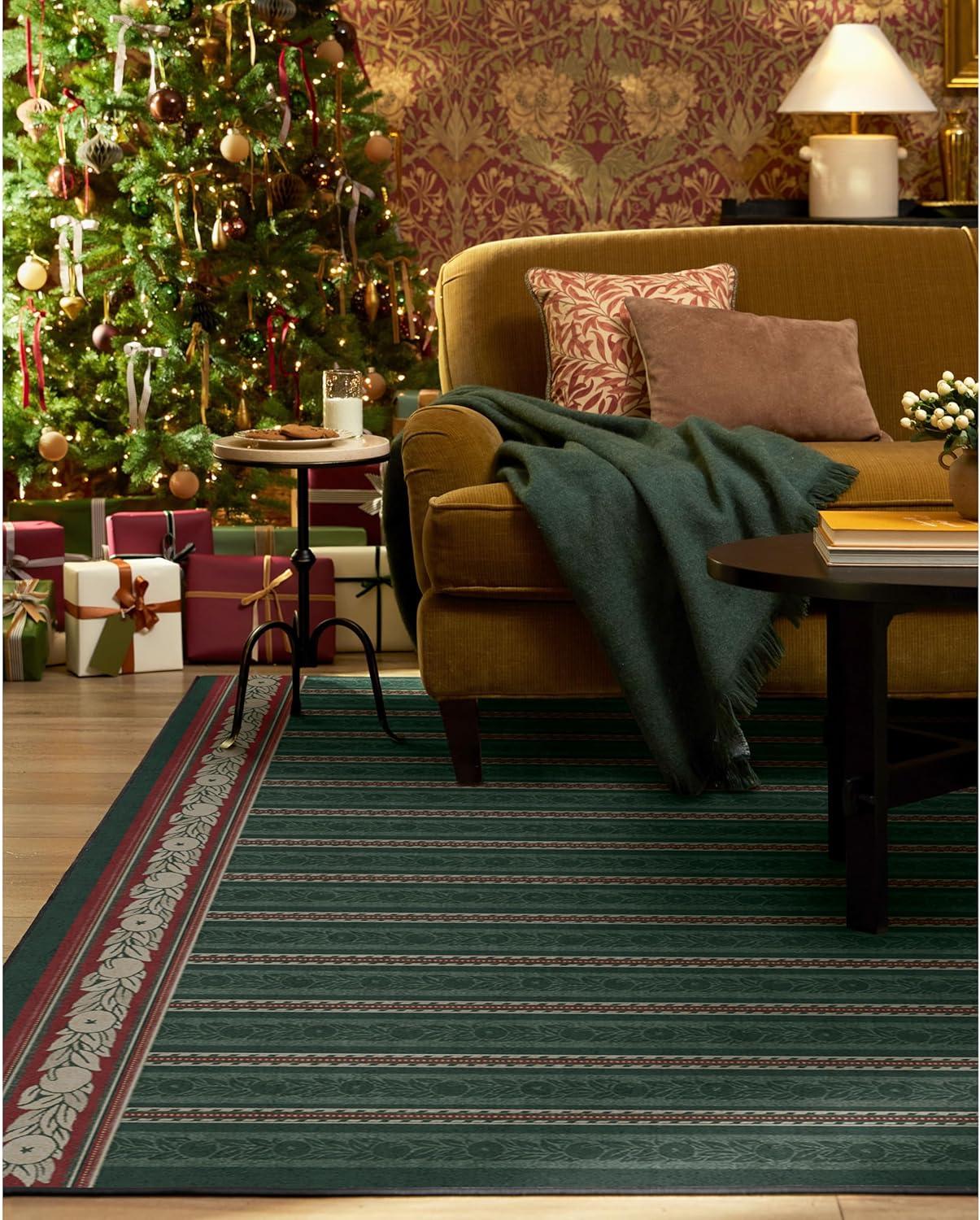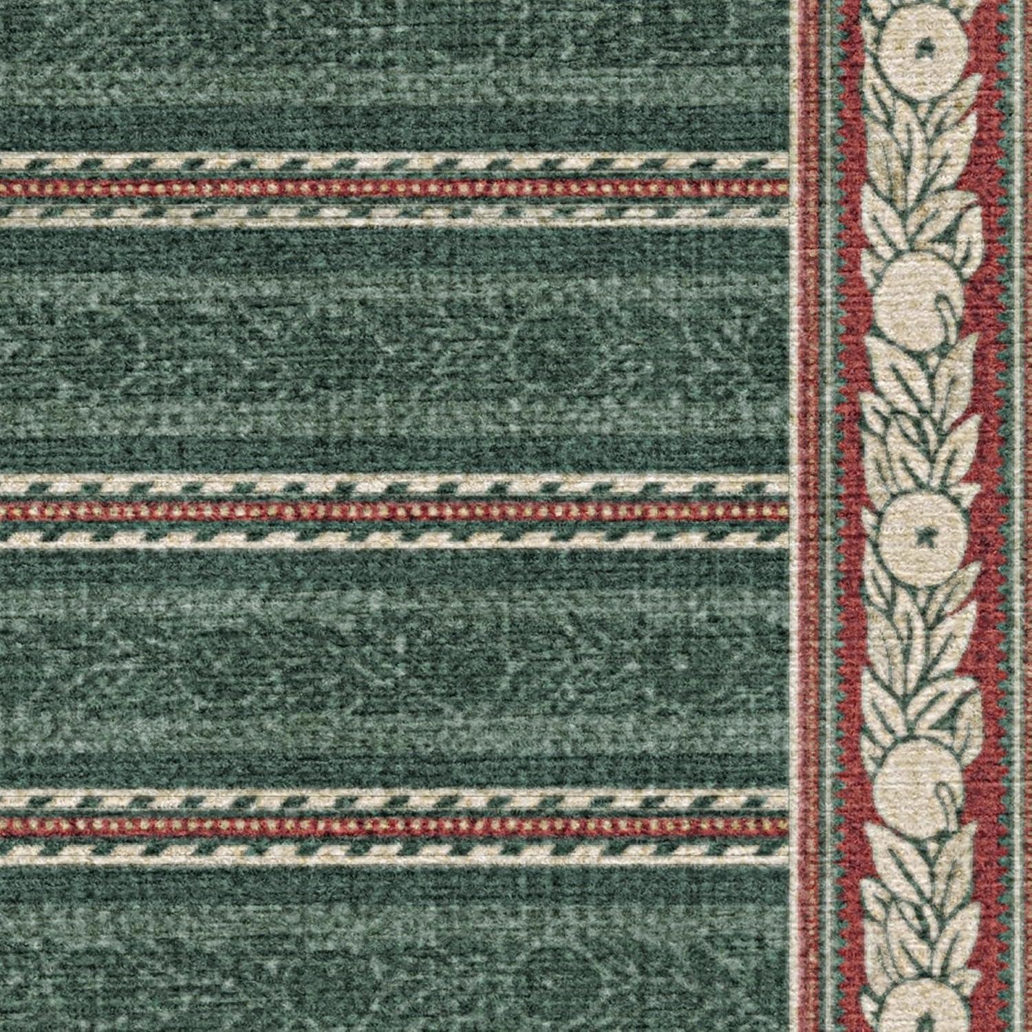 RUGGABLE x Morris & Co Washable Runner Rug – Mallow Rust Red 2.5×7, Stain-Resistant, Non-Slip Hallway Runner – Machine Washable Rug for Hallway, Entryway, Living Room & Kitchen–with Standard Pad(Fruit Stripe Spruce Green – Standard Pad)