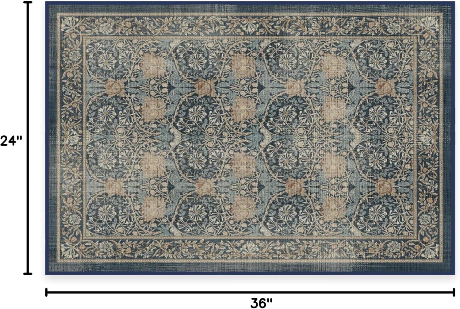 RUGGABLE Washable Vintage Area Rug – Cambria Ruby 3×5, Stain-Resistant, Non-Slip – Small Machine Washable Rugs for Living Room, Bedroom, Hallway, Entryway & Office–with Standard Pad(Sapphire – Standard Pad)