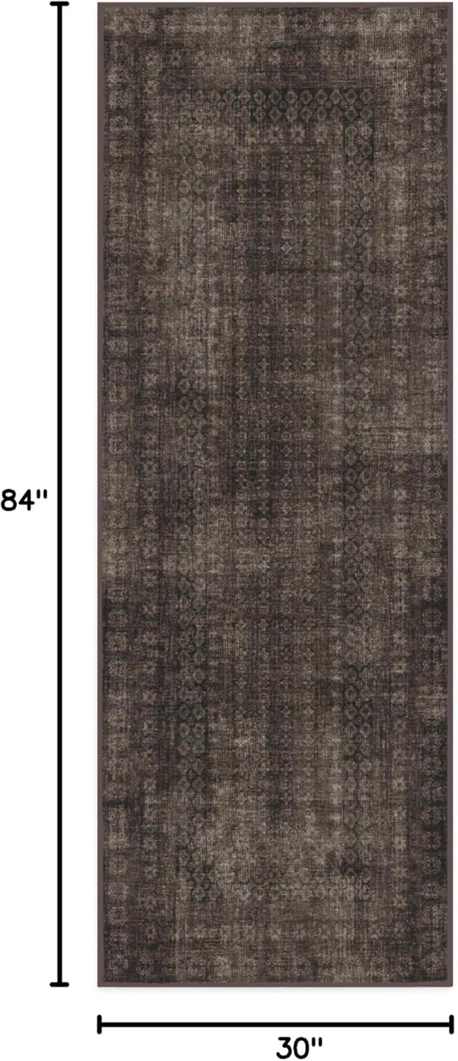 RUGGABLE Machine Washable Runner Rug – Founders Cyrus Black 2.5×7, Stain-Resistant, Non-Slip – Washable Rug for Hallway, Entryway, Living Room & Kitchen–with Standard Pad(Cyrus Black – Standard Pad)