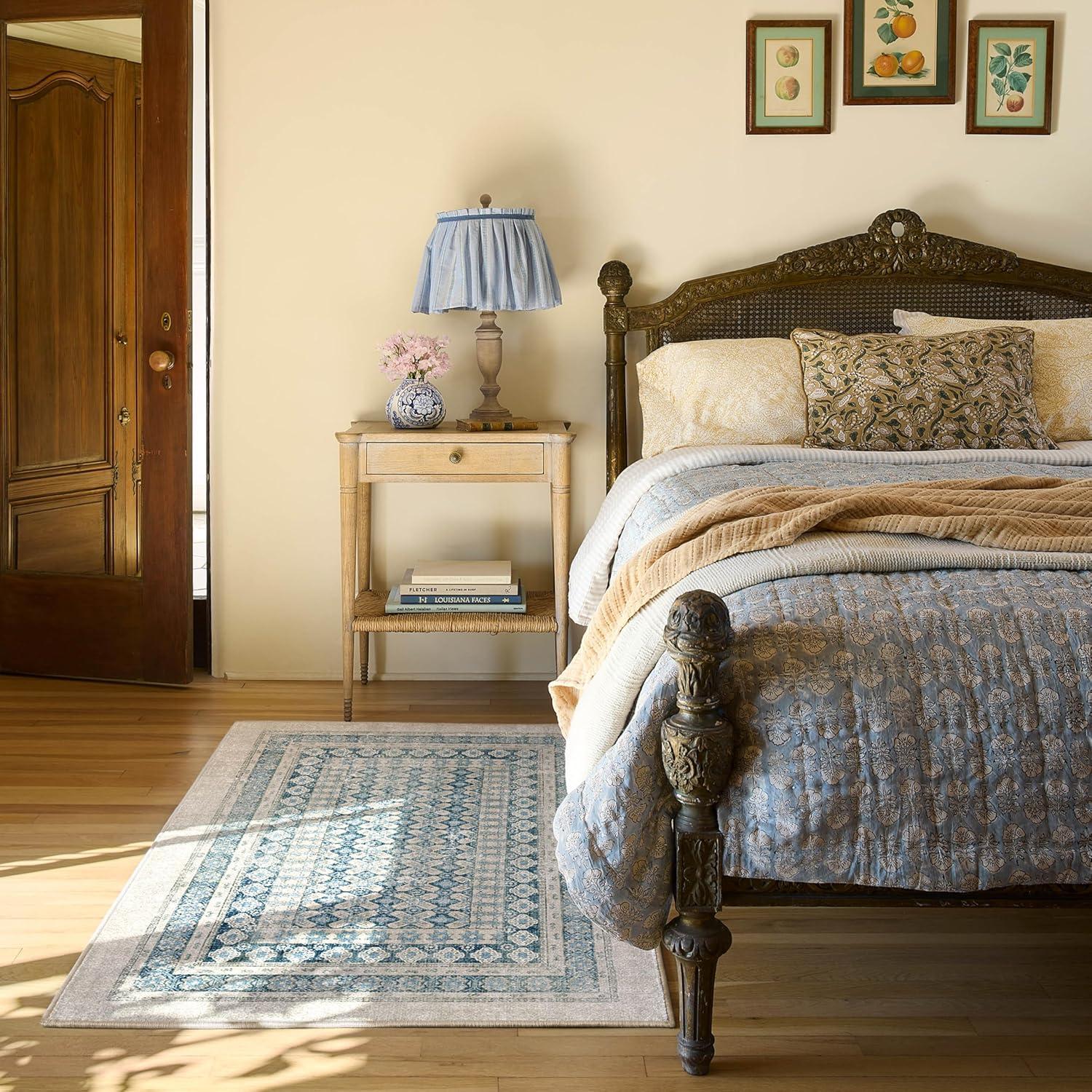 RUGGABLE Washable Vintage Area Rug – Kamran Hazel 3×5, Stain-Resistant, Non-Slip – Small Machine Washable Rugs for Living Room, Bedroom, Hallway, Entryway & Office–with Standard Pad(Blue Quartz Distressed- Kamran – Cushioned Pad)