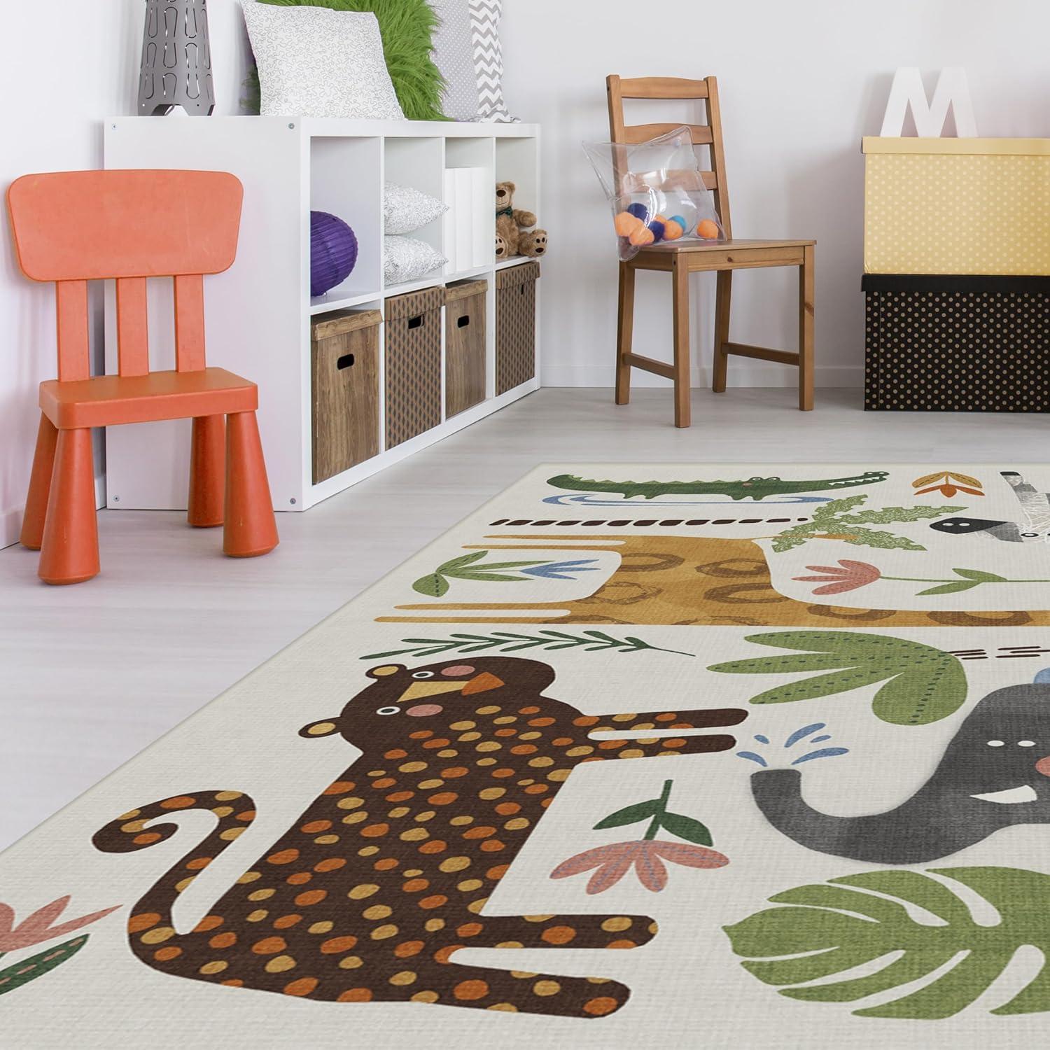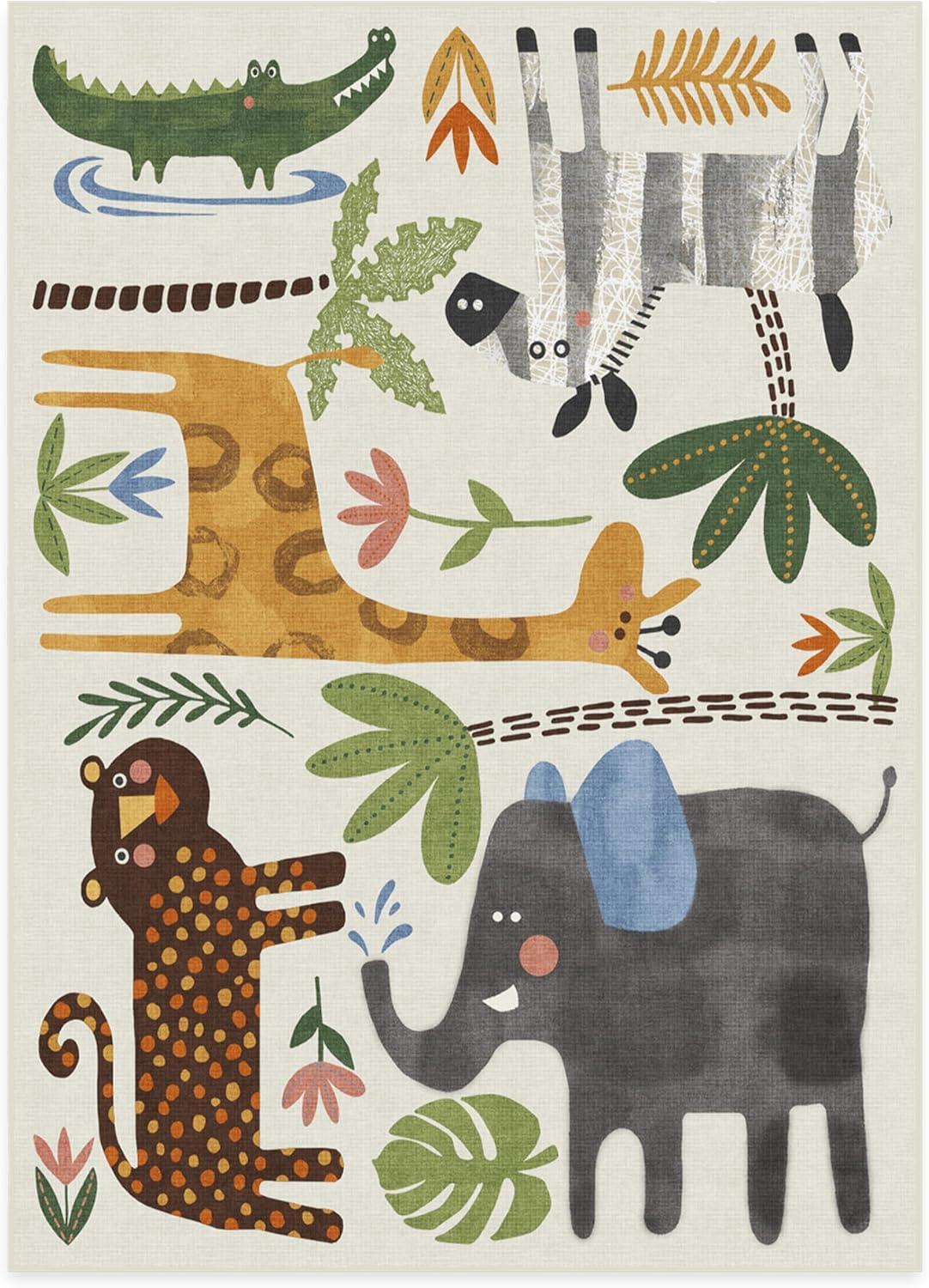 RUGGABLE Washable Area Rug – Animal Safari Multicolor 3×5, Stain-Resistant, Non-Slip – Small Machine Washable Rugs for Living Room, Bedroom, Hallway, Entryway & Office–with Standard Pad(Animal Safari Multicolor – Standard Pad)