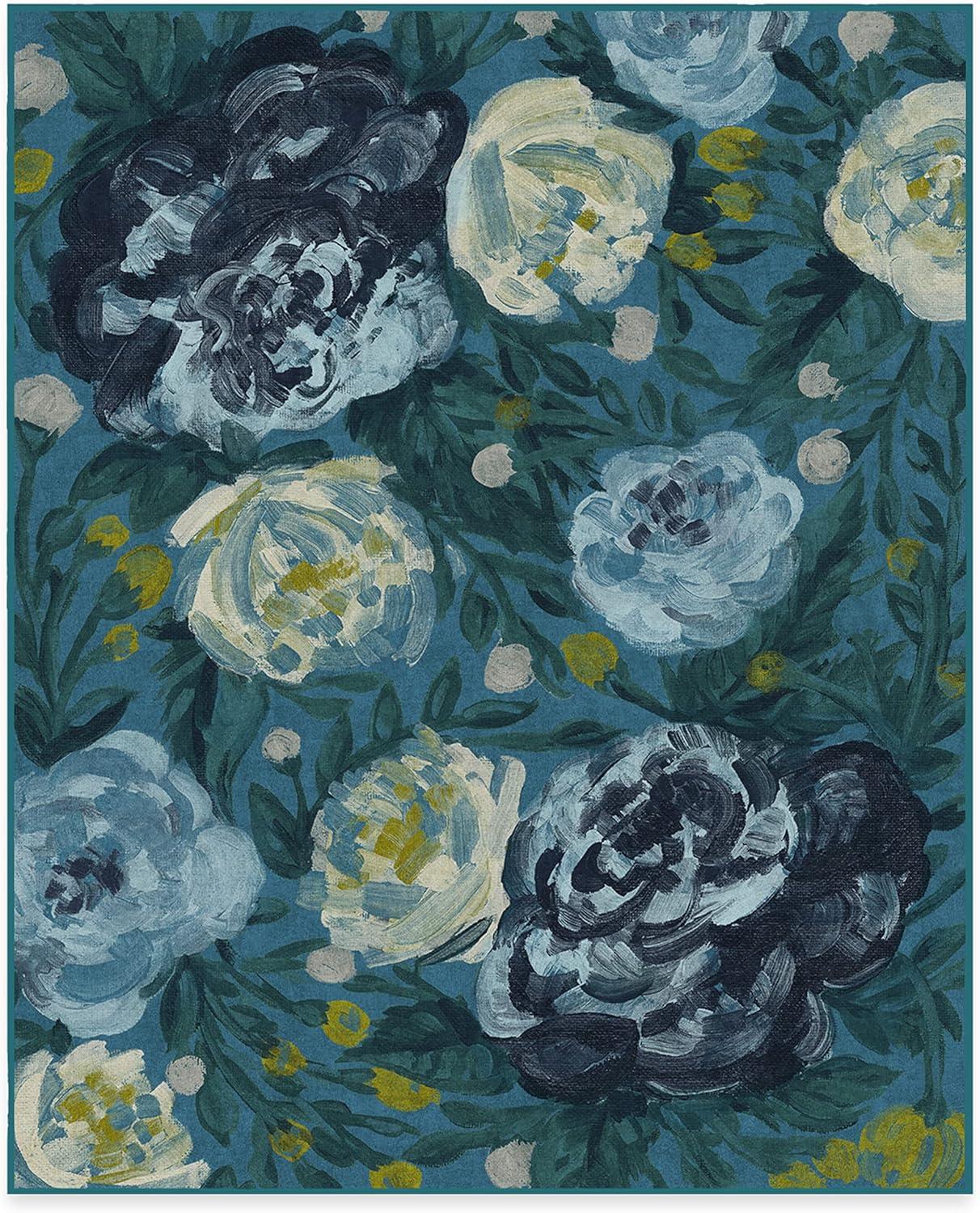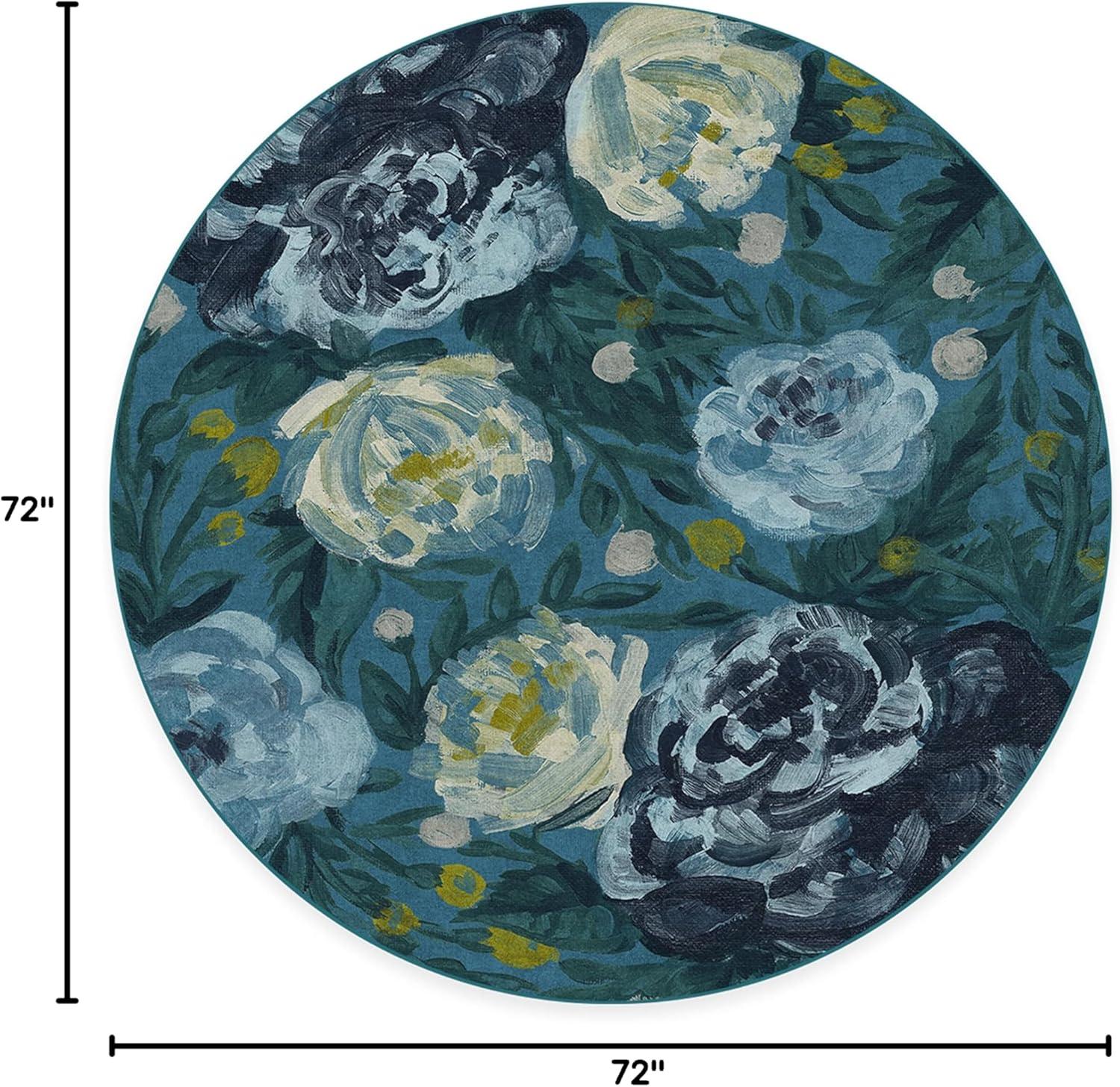 TRADITIONAL STYLE, MODERN RUG TECHNOLOGY: Our Camellia Midnight Washable Area Rug features a romantic floral motif presented in beautifully textured brush strokes in deep blues and citrus yellows