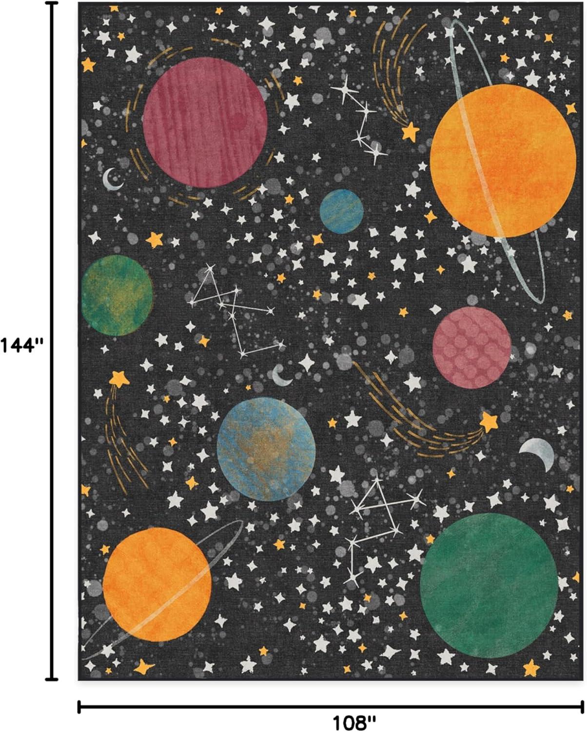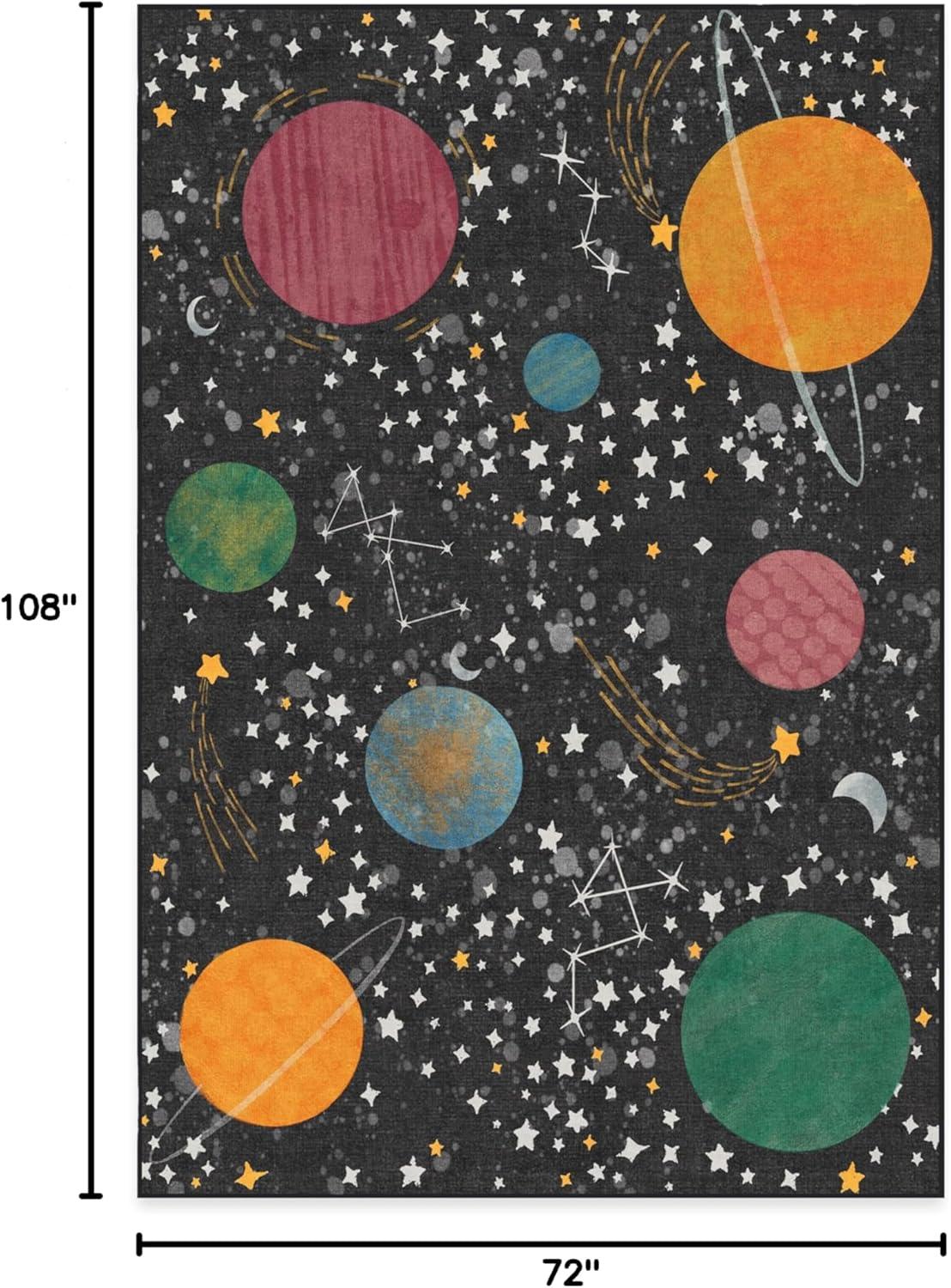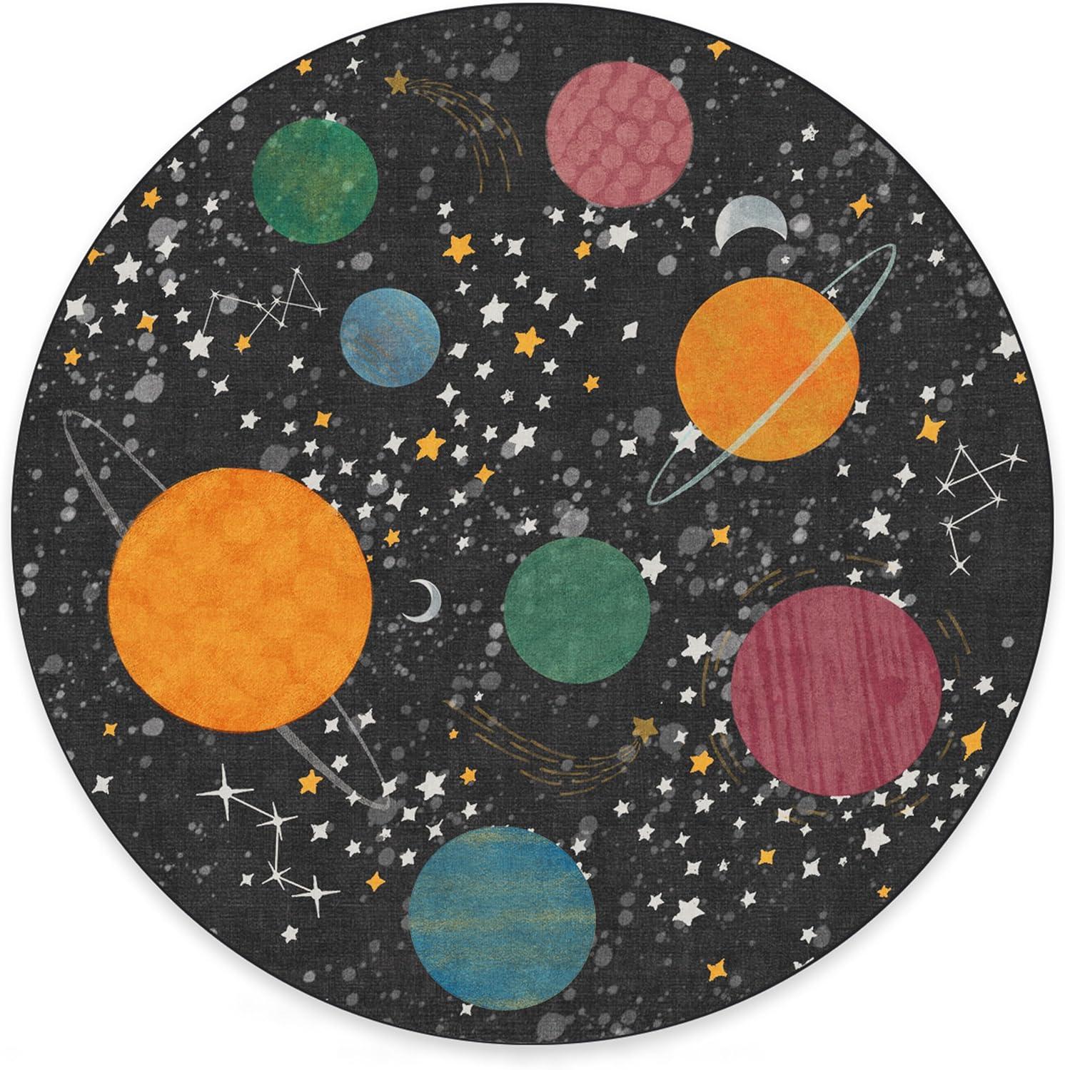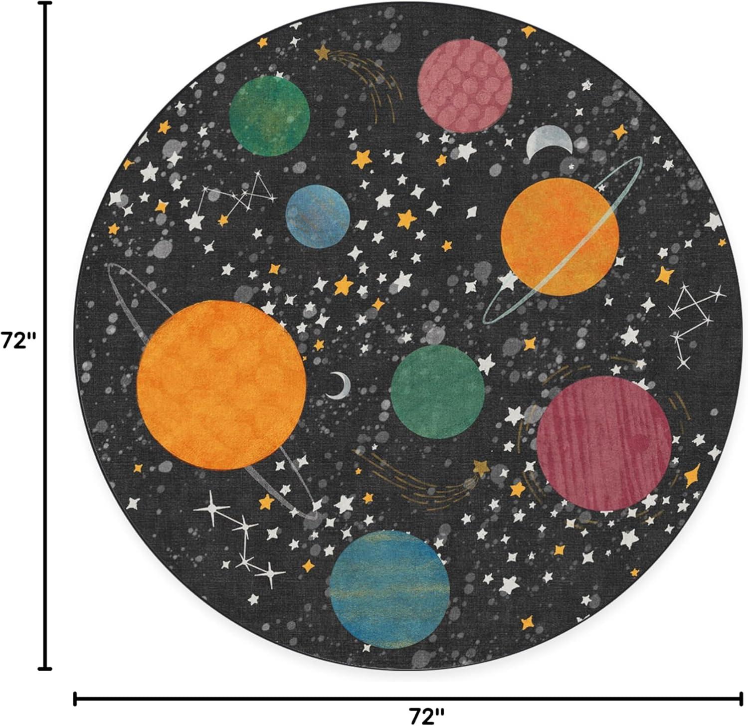 RUGGABLE Washable Area Rug – Dinosaurs in Space 6 ft Round, Stain-Resistant, Non-Slip – Medium Machine Washable Rugs for Living Room, Bedroom, Hallway, Entryway & Office–with Standard Pad(Outer Space Black – Cushioned Pad)