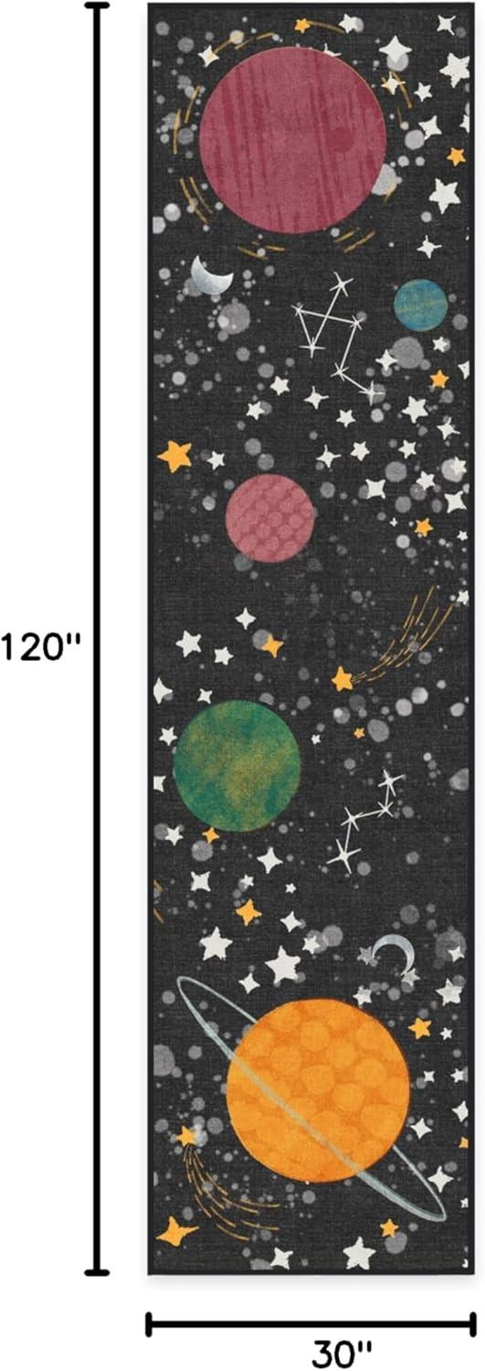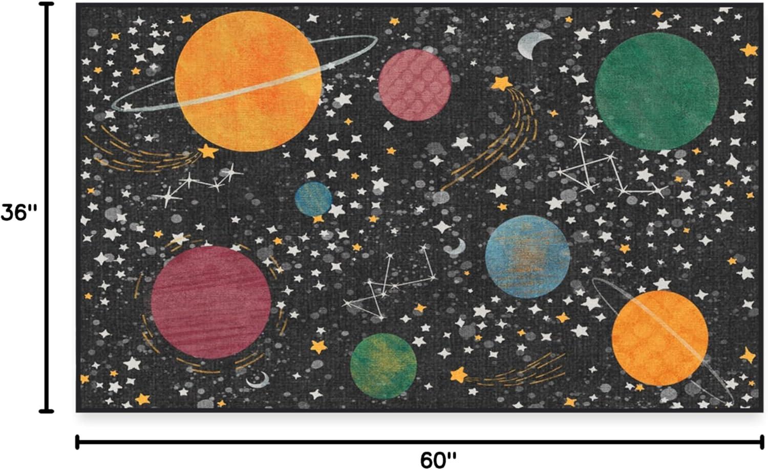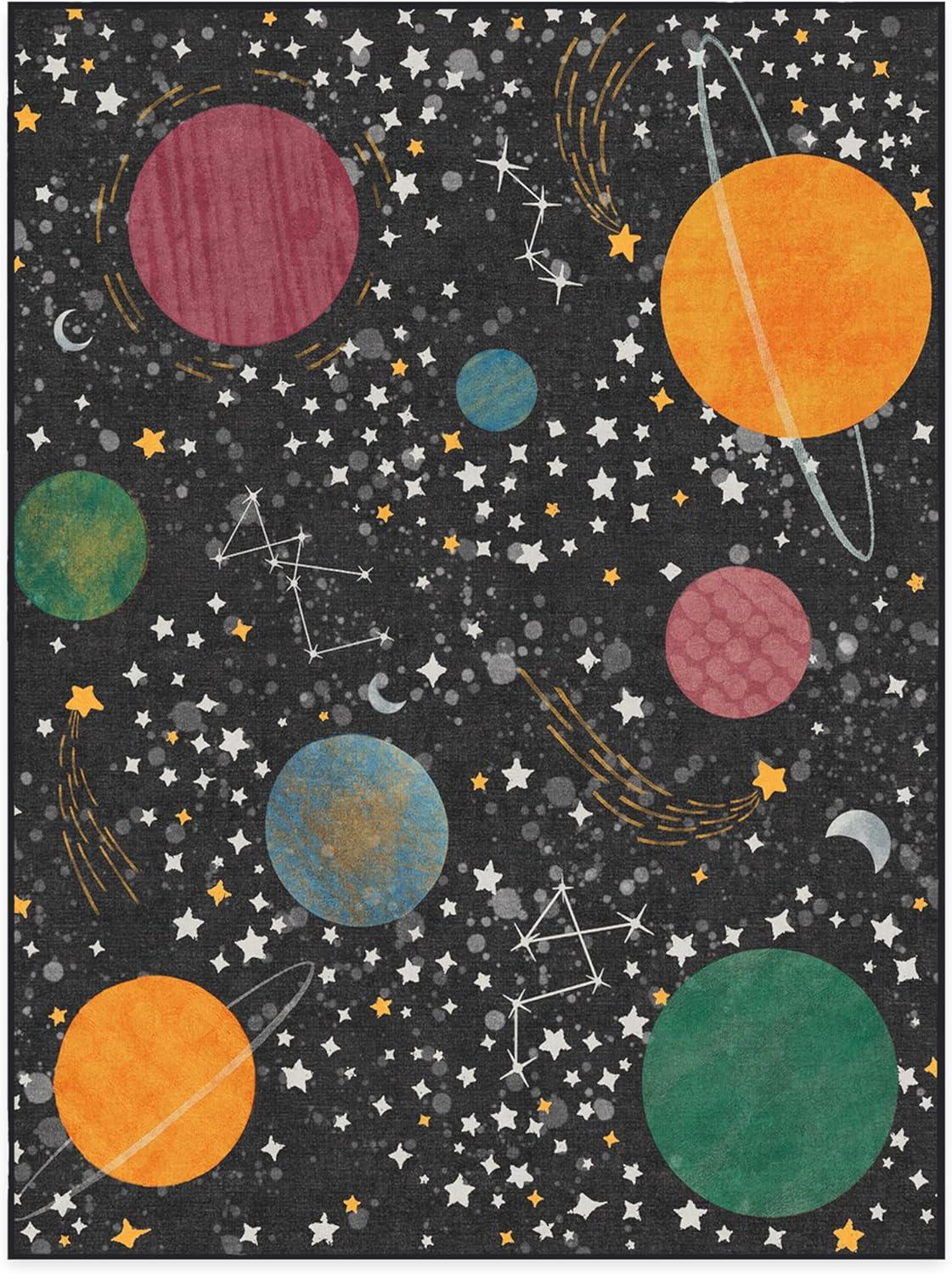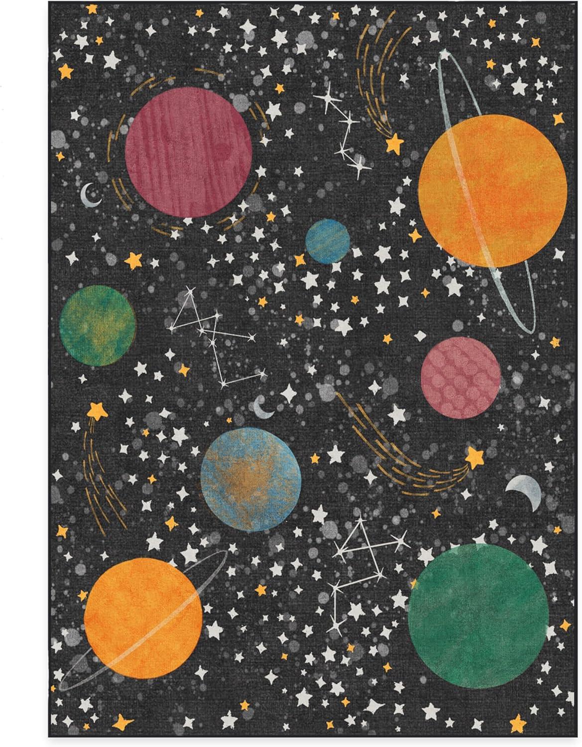 RUGGABLE Washable Area Rug – Dinosaurs in Space 6 ft Round, Stain-Resistant, Non-Slip – Medium Machine Washable Rugs for Living Room, Bedroom, Hallway, Entryway & Office–with Standard Pad(Outer Space Black – Cushioned Pad)