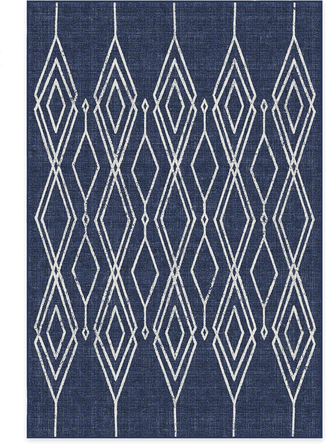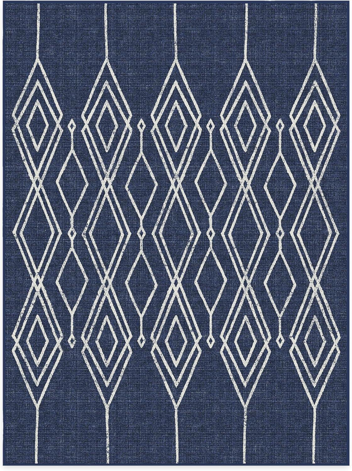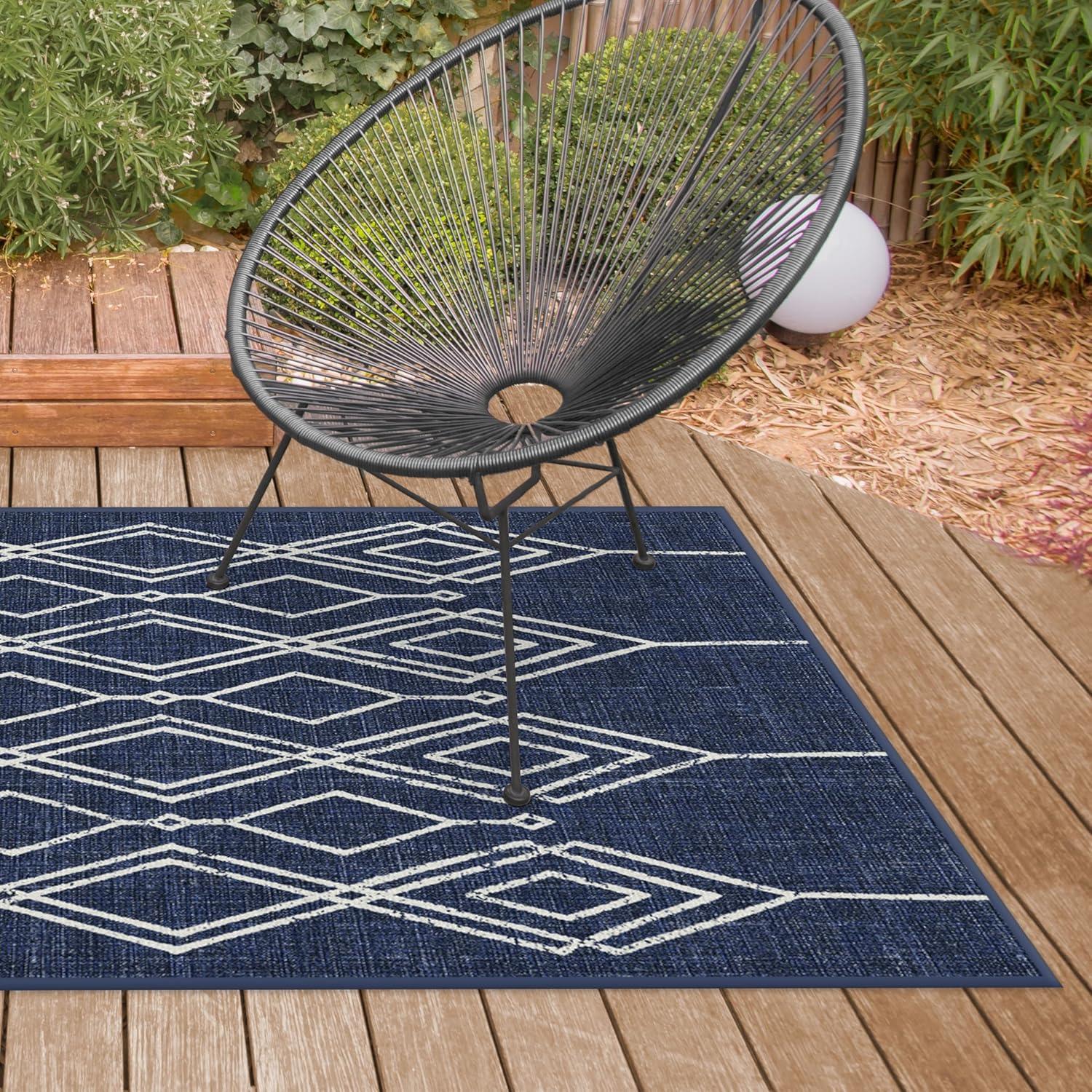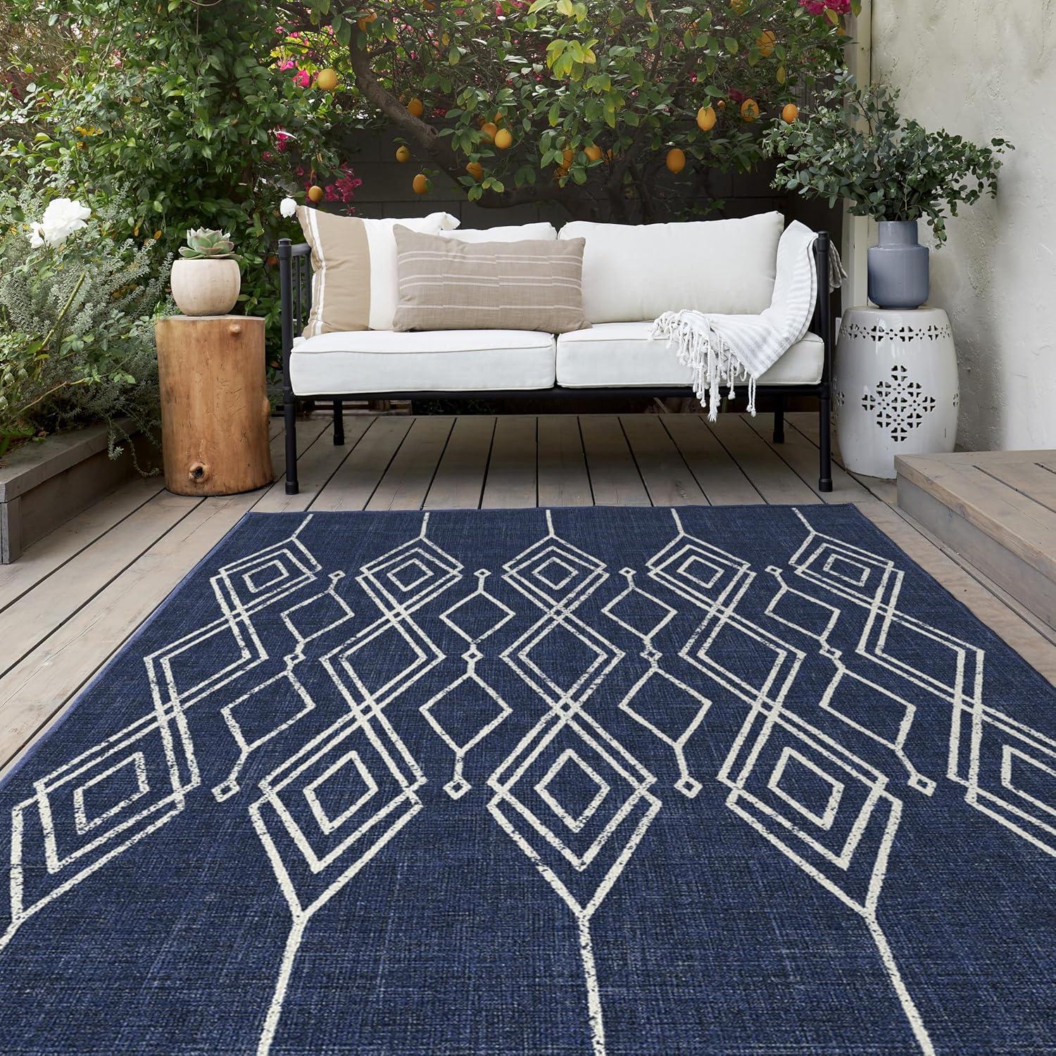 RUGGABLE Washable Area Rug – Outdoor Gingham Plaid Black & White 3×5, Stain-Resistant, Non-Slip – Small Machine Washable Rugs for Entryway, Patio, Balcony, Deck, & Porch–with Standard Pad(Gemma Lattice Royal Blue – Standard Pad)