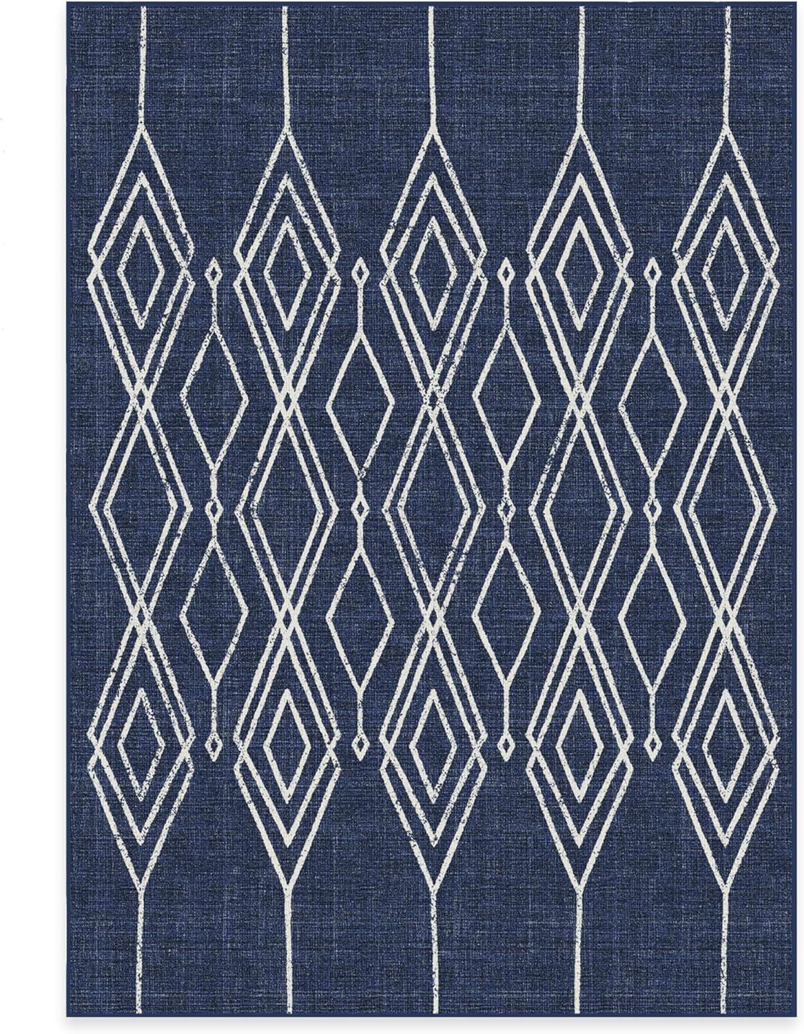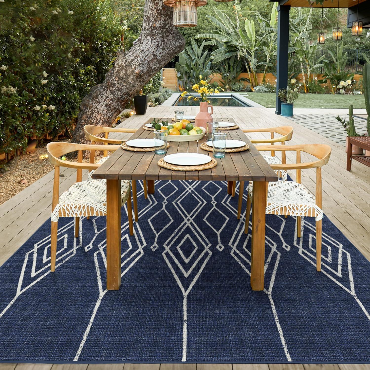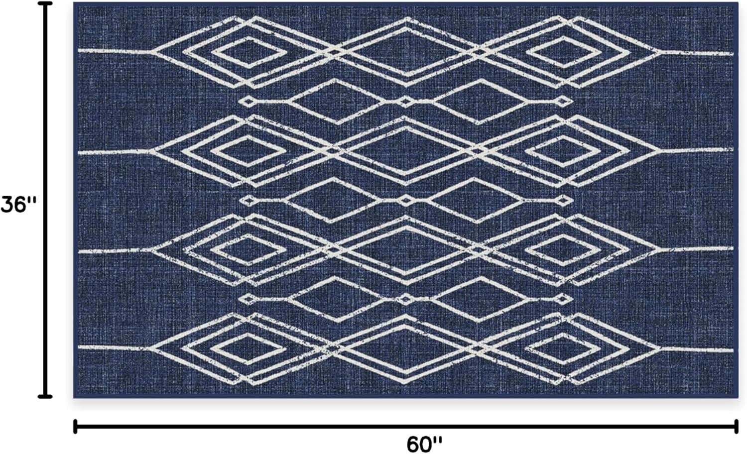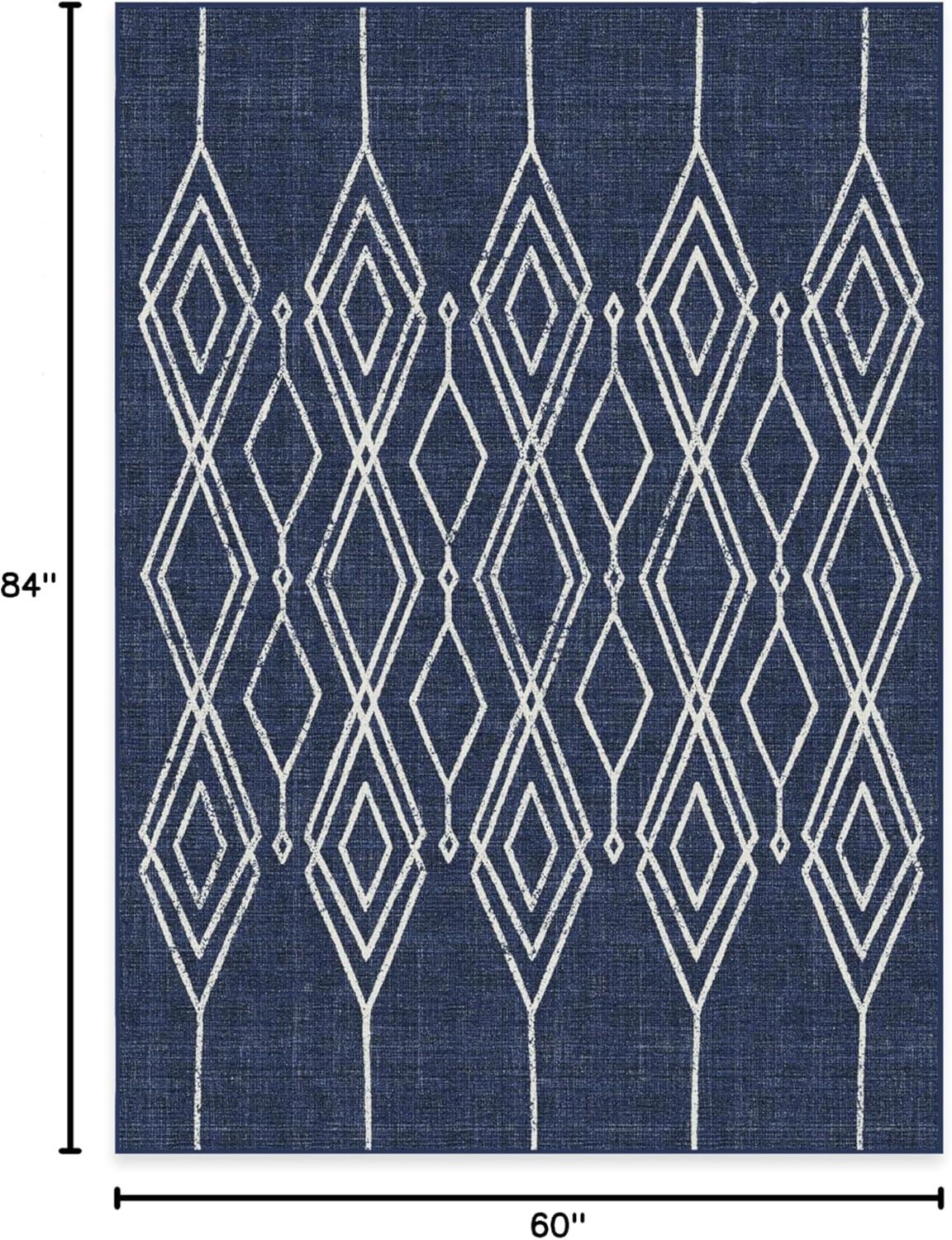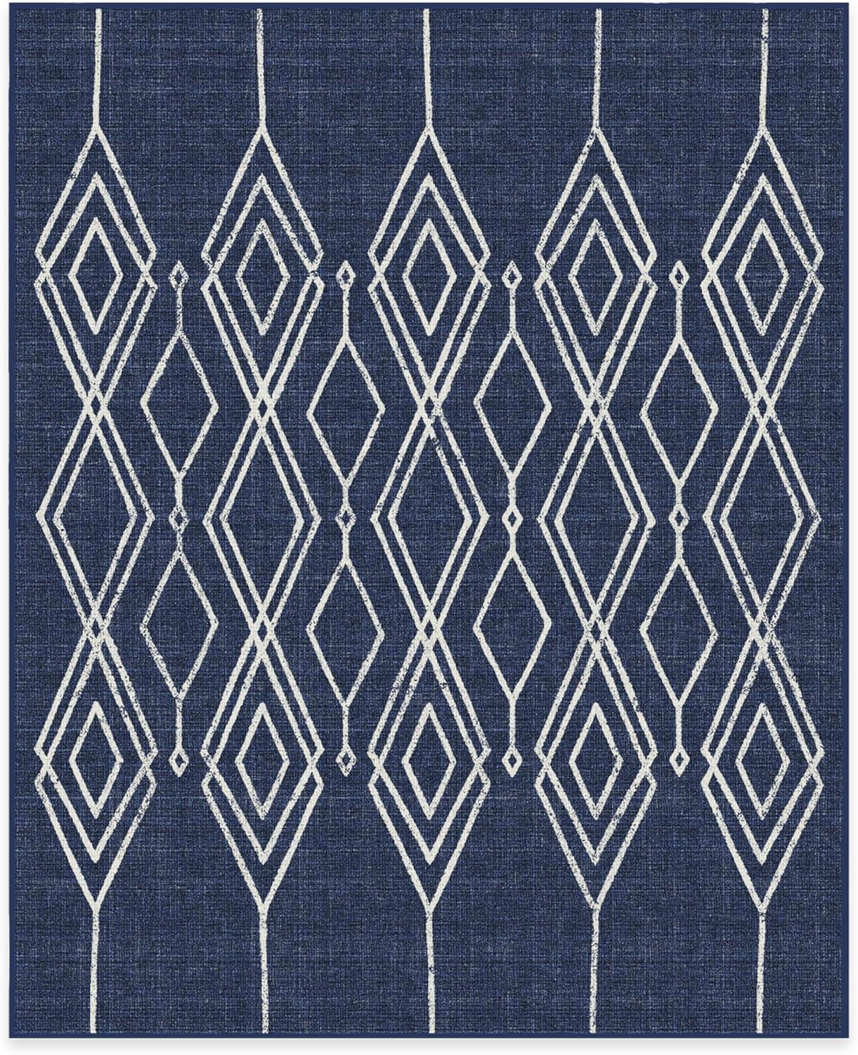 RUGGABLE Washable Area Rug – Outdoor Gingham Plaid Black & White 3×5, Stain-Resistant, Non-Slip – Small Machine Washable Rugs for Entryway, Patio, Balcony, Deck, & Porch–with Standard Pad(Gemma Lattice Royal Blue – Standard Pad)