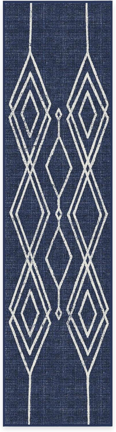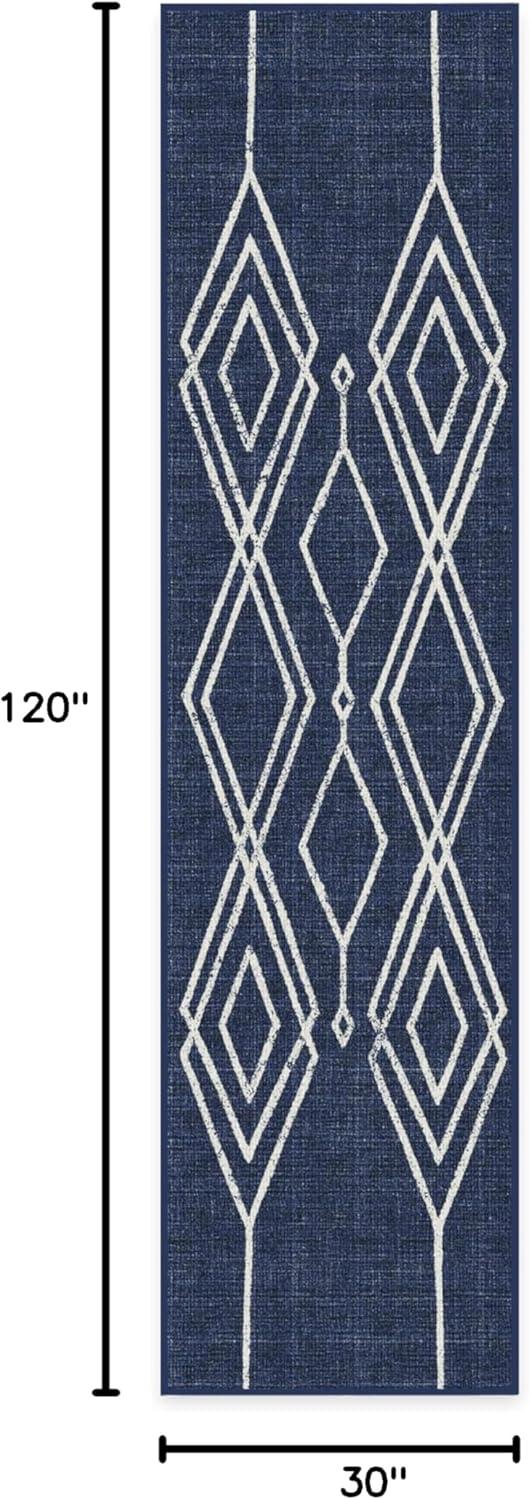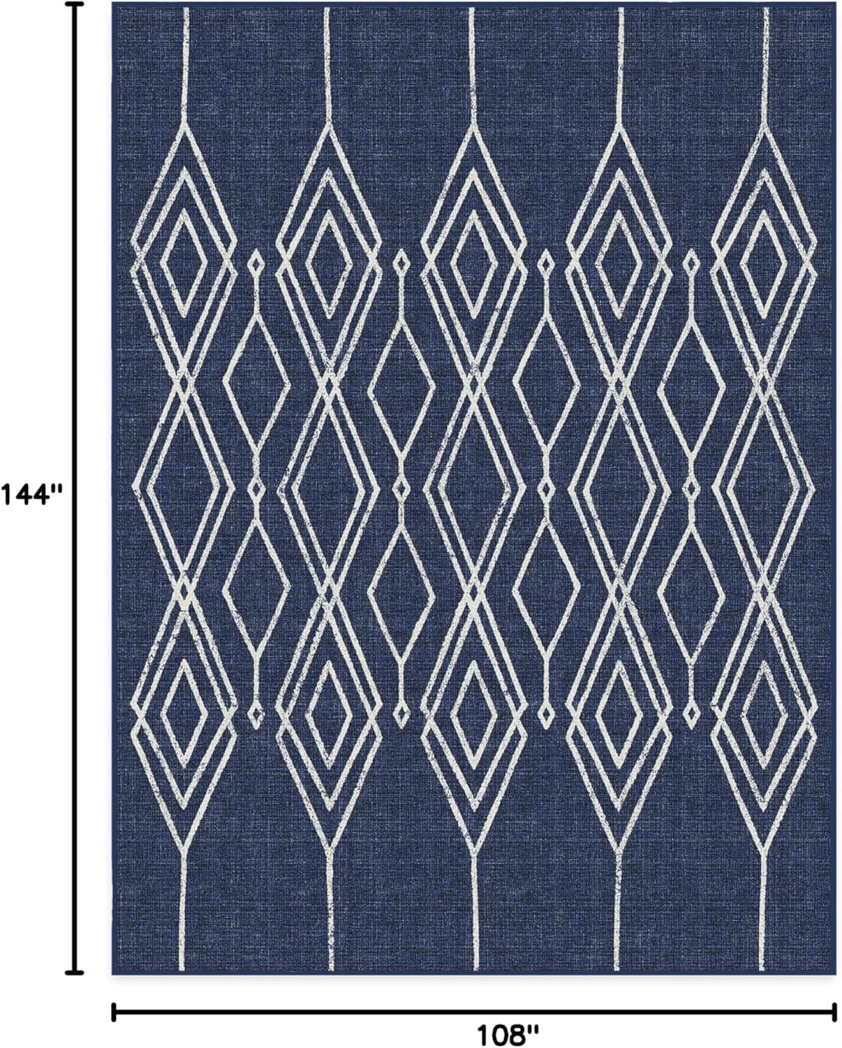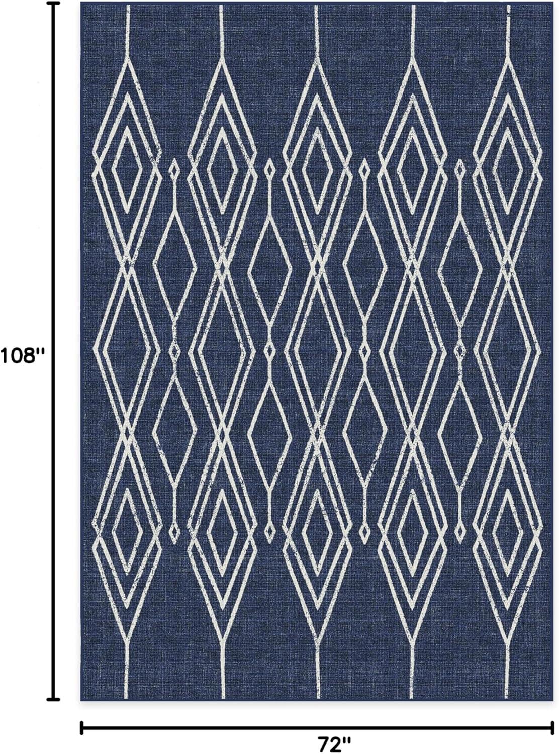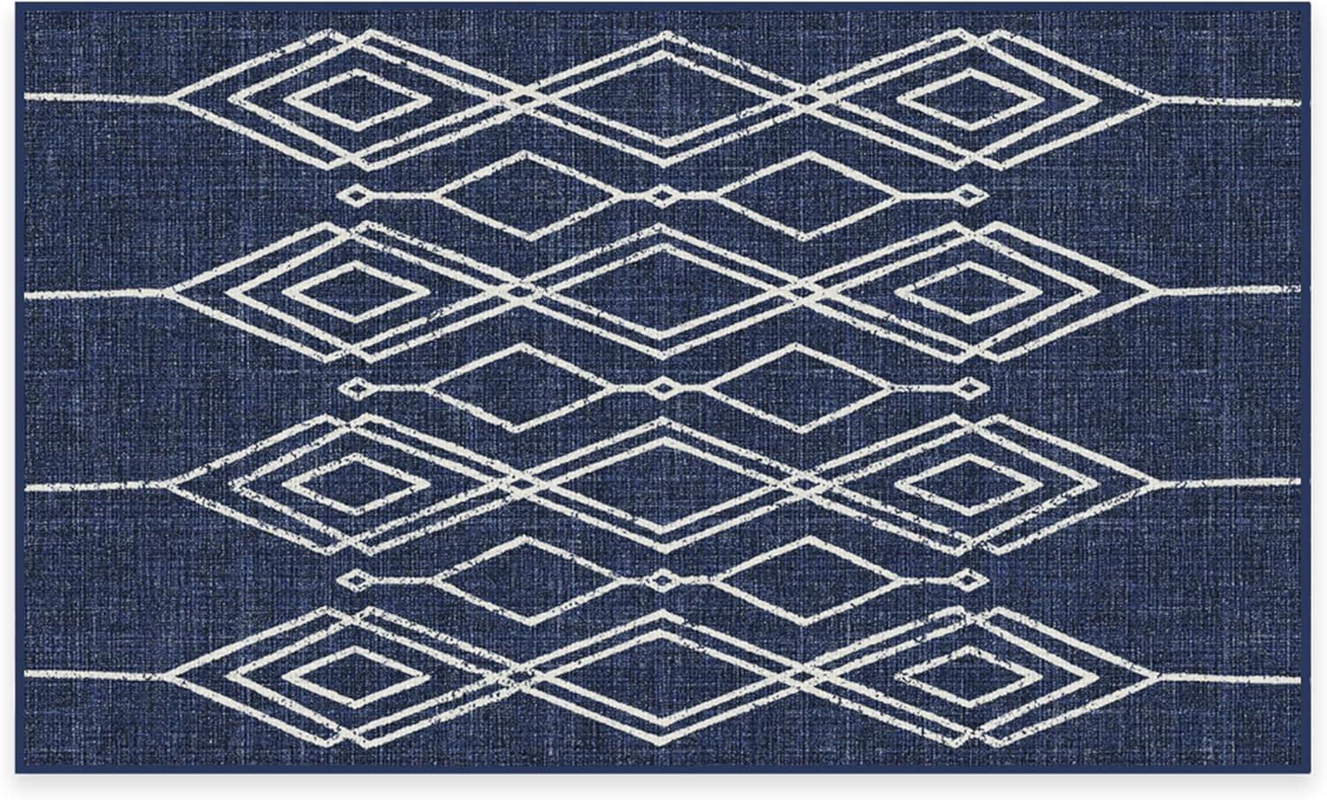 RUGGABLE Washable Area Rug – Outdoor Gingham Plaid Black & White 3×5, Stain-Resistant, Non-Slip – Small Machine Washable Rugs for Entryway, Patio, Balcony, Deck, & Porch–with Standard Pad(Gemma Lattice Royal Blue – Standard Pad)