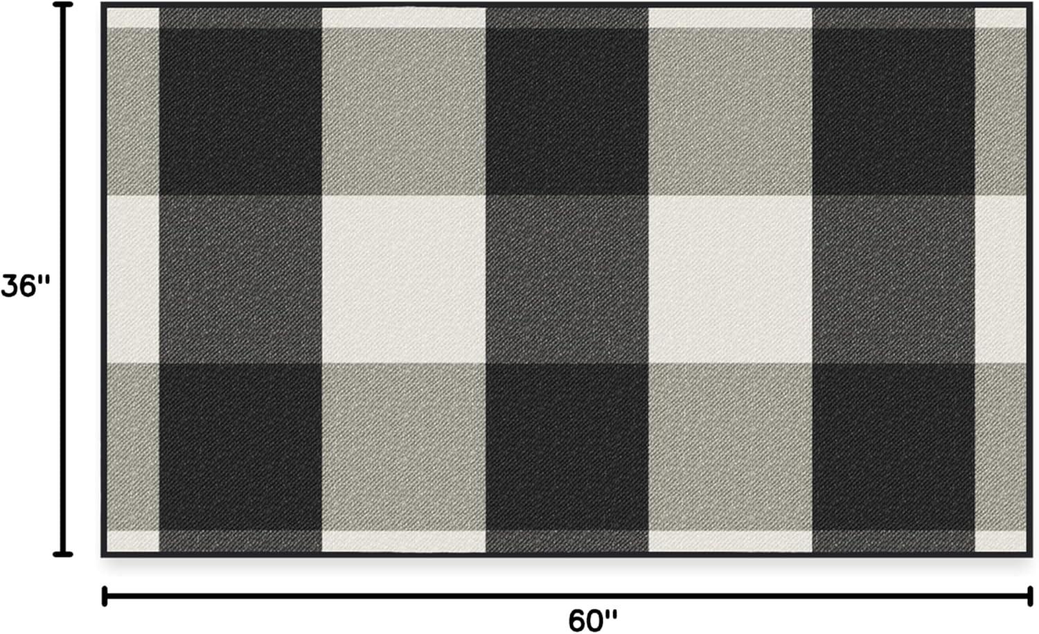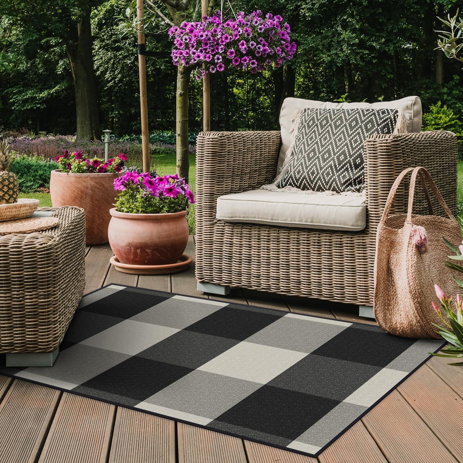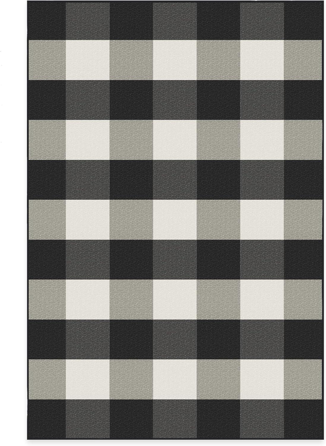 RUGGABLE Washable Area Rug – Outdoor Gingham Plaid Black & White 3×5, Stain-Resistant, Non-Slip – Small Machine Washable Rugs for Entryway, Patio, Balcony, Deck, & Porch–with Standard Pad(Gingham Plaid Black & White – Standard Pad)