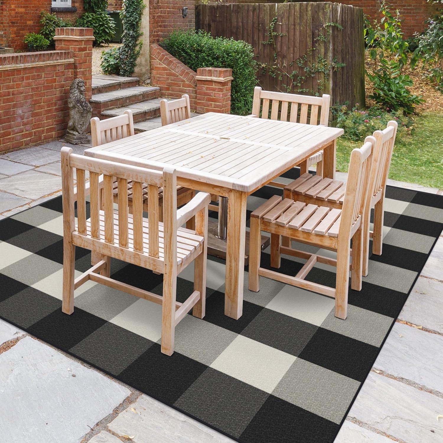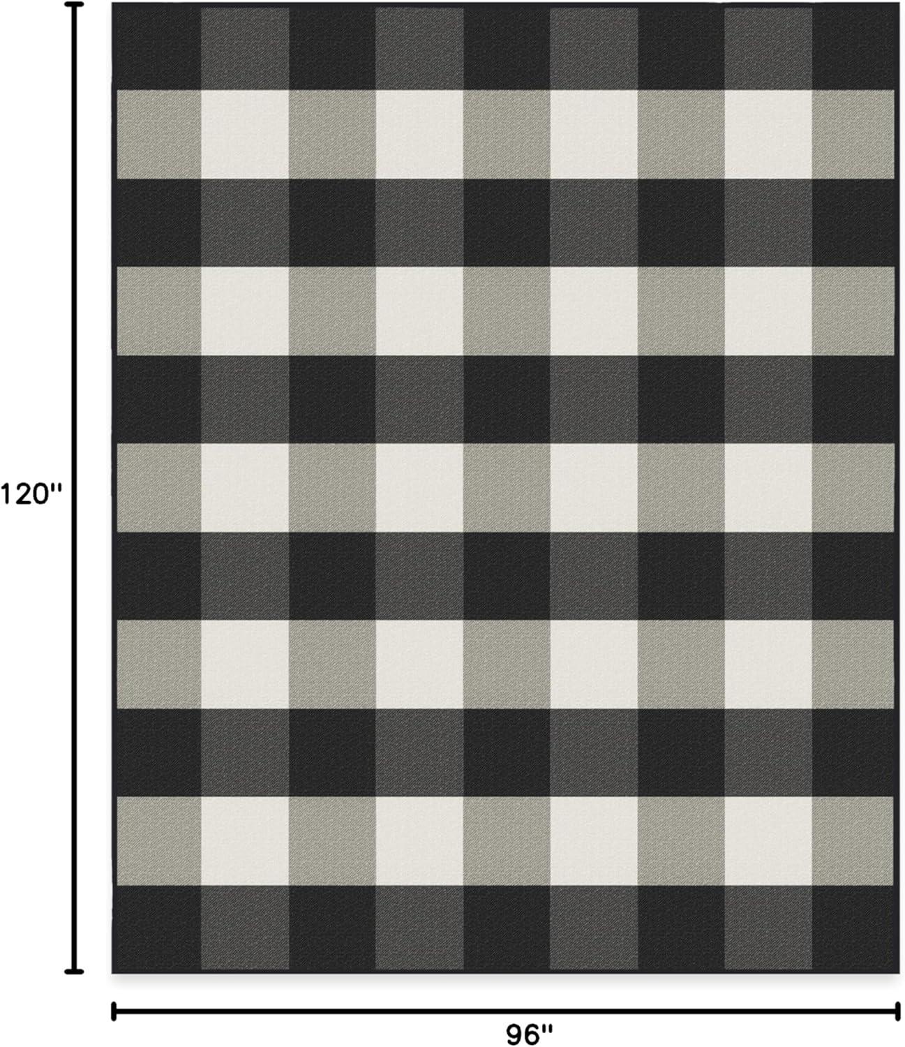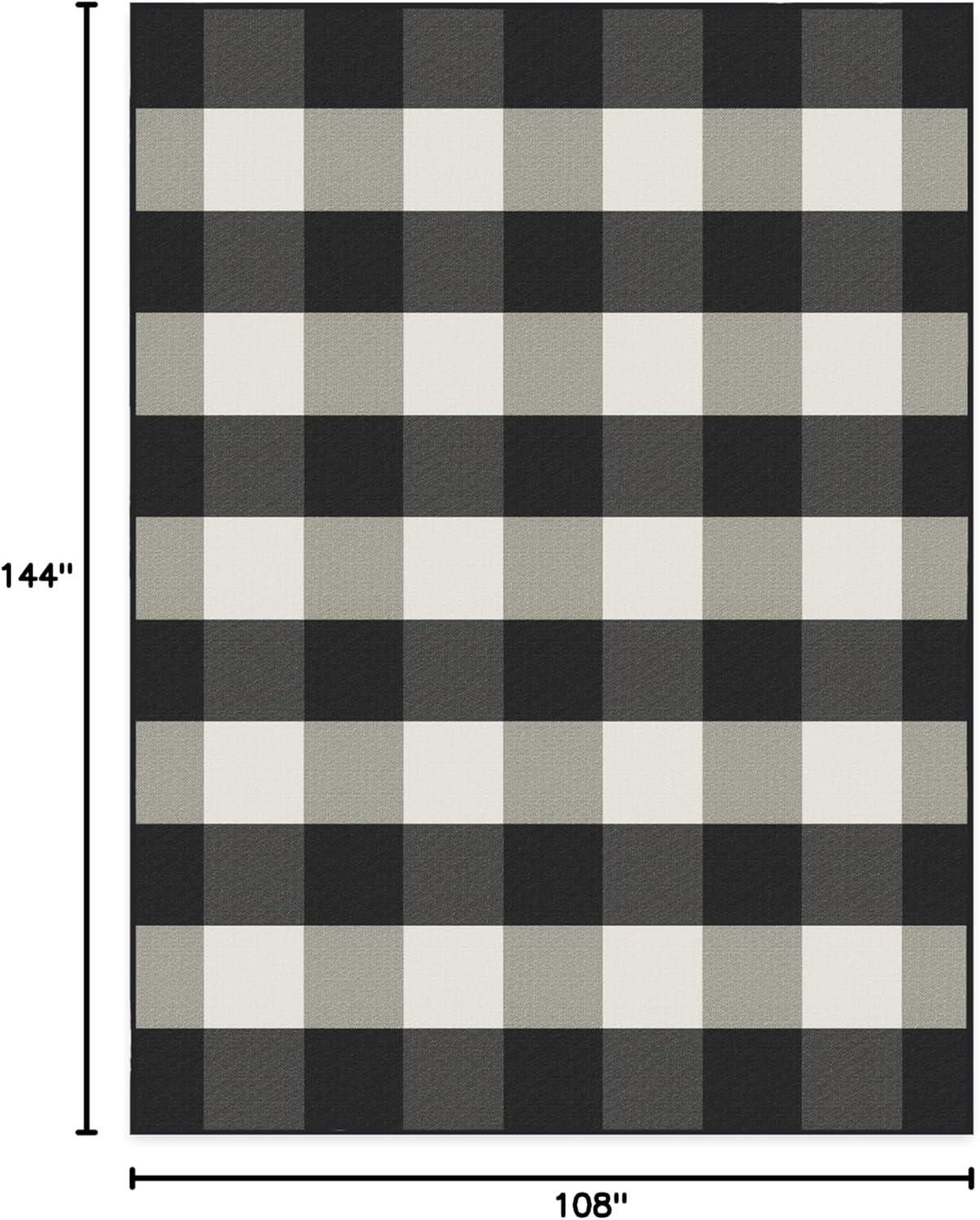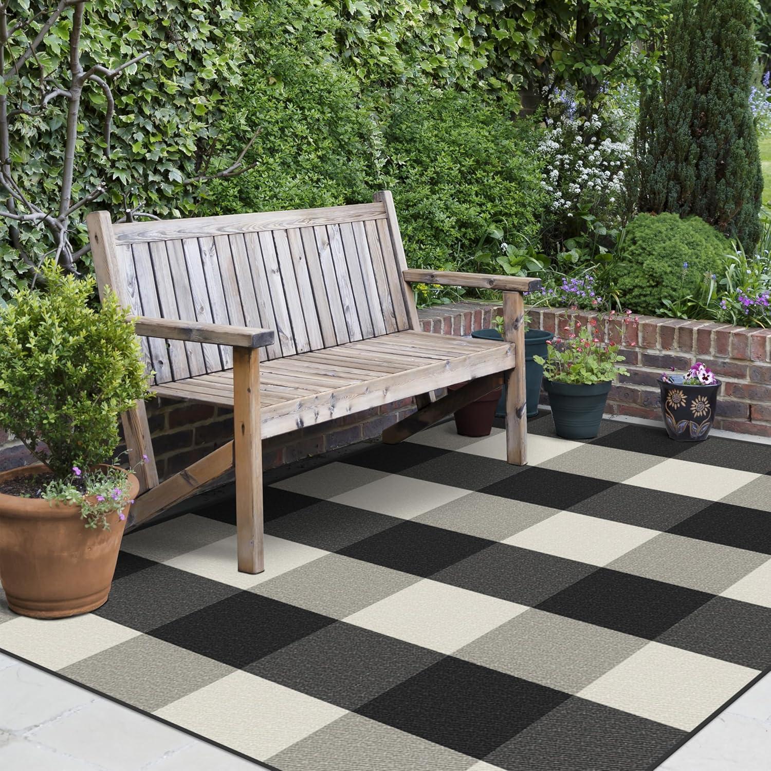 RUGGABLE Washable Area Rug – Outdoor Gingham Plaid Black & White 3×5, Stain-Resistant, Non-Slip – Small Machine Washable Rugs for Entryway, Patio, Balcony, Deck, & Porch–with Standard Pad(Gingham Plaid Black & White – Standard Pad)