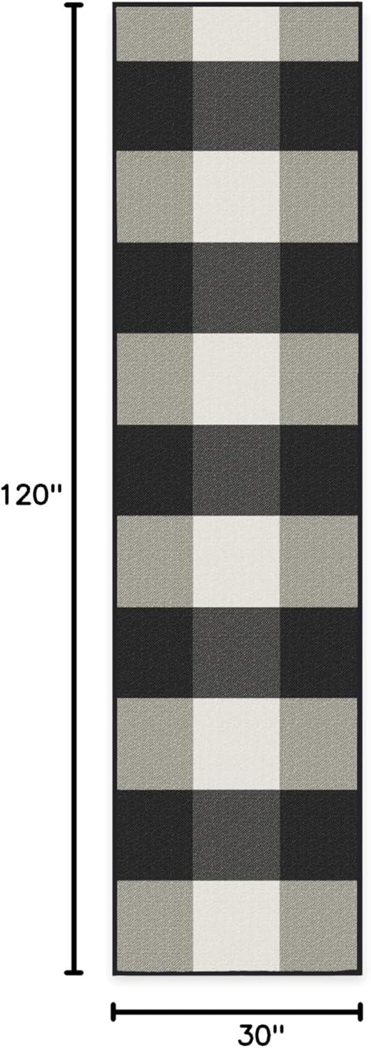 A FARMHOUSE FAVORITE: Our Gingham Plaid Black and White Rug features a high-contrast buffalo plaid design in a classic color palette.