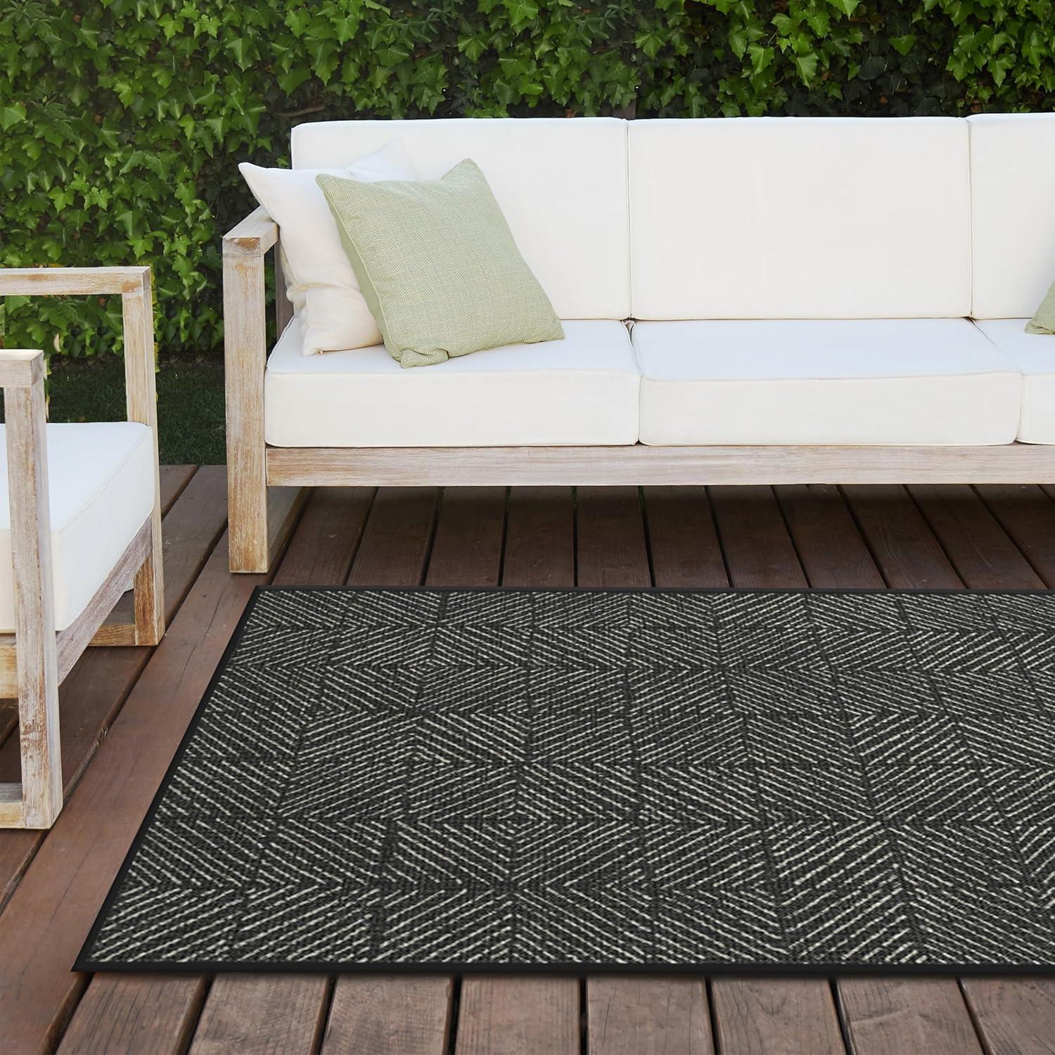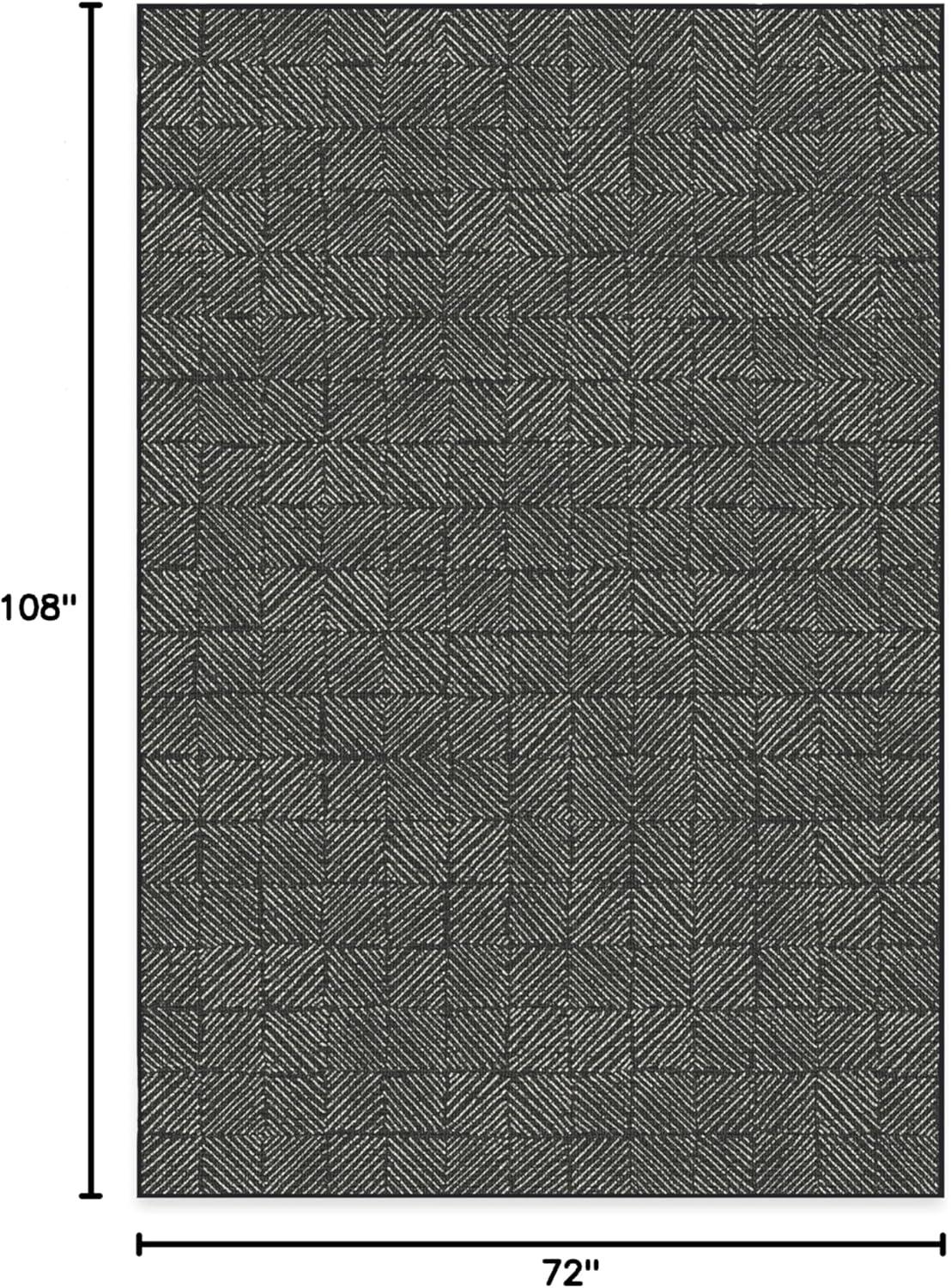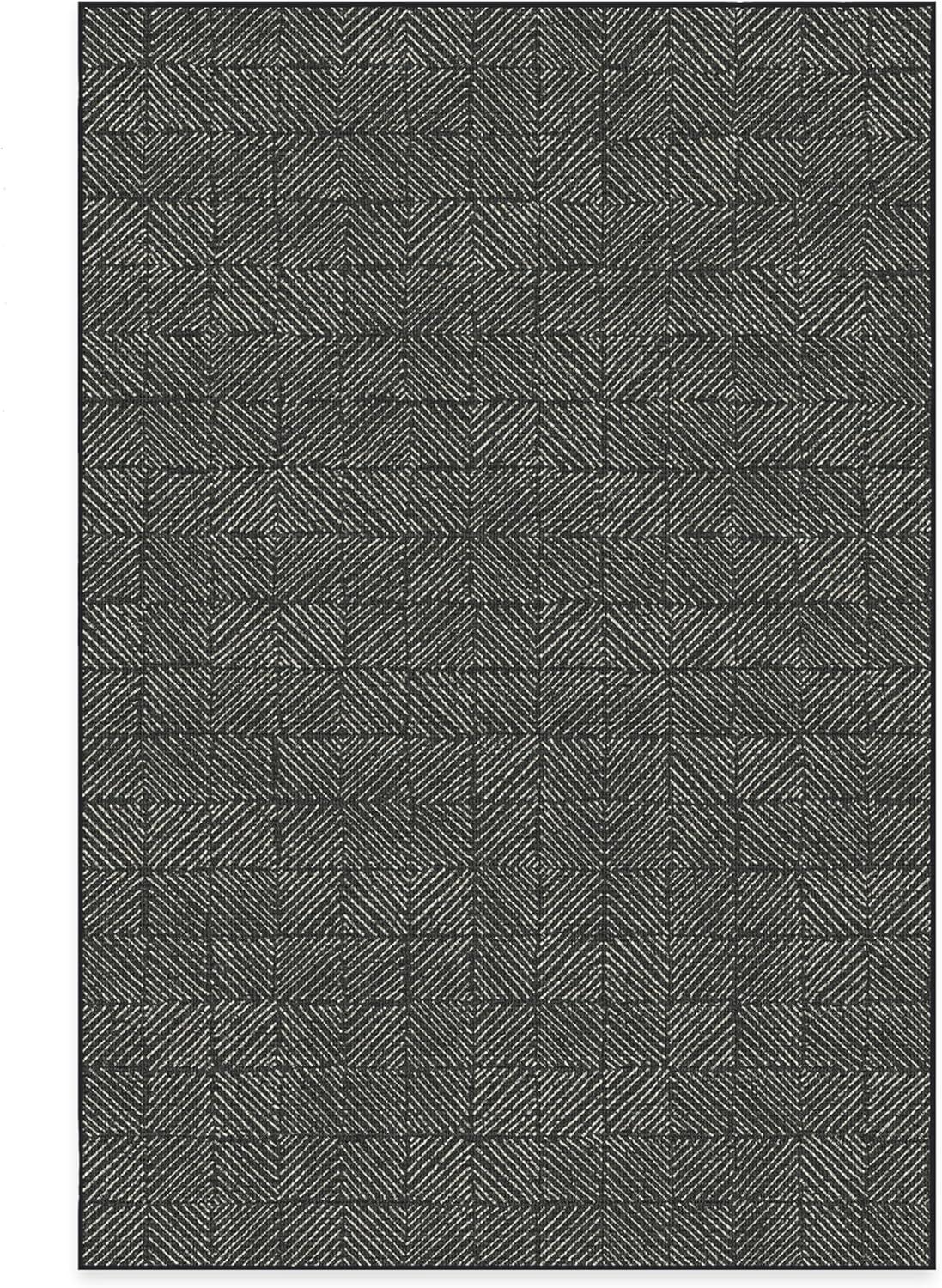 RUGGABLE Washable Area Rug – Outdoor Gingham Plaid Black & White 3×5, Stain-Resistant, Non-Slip – Small Machine Washable Rugs for Entryway, Patio, Balcony, Deck, & Porch–with Standard Pad(Parquet Black – Standard Pad)