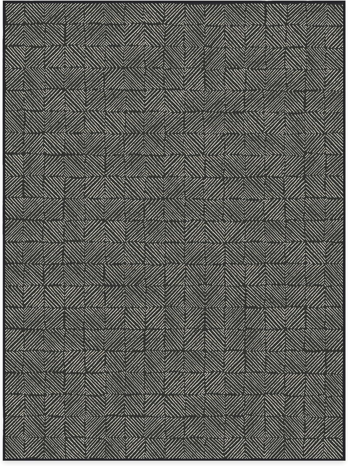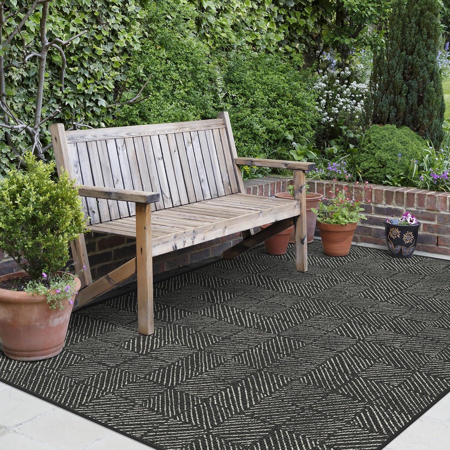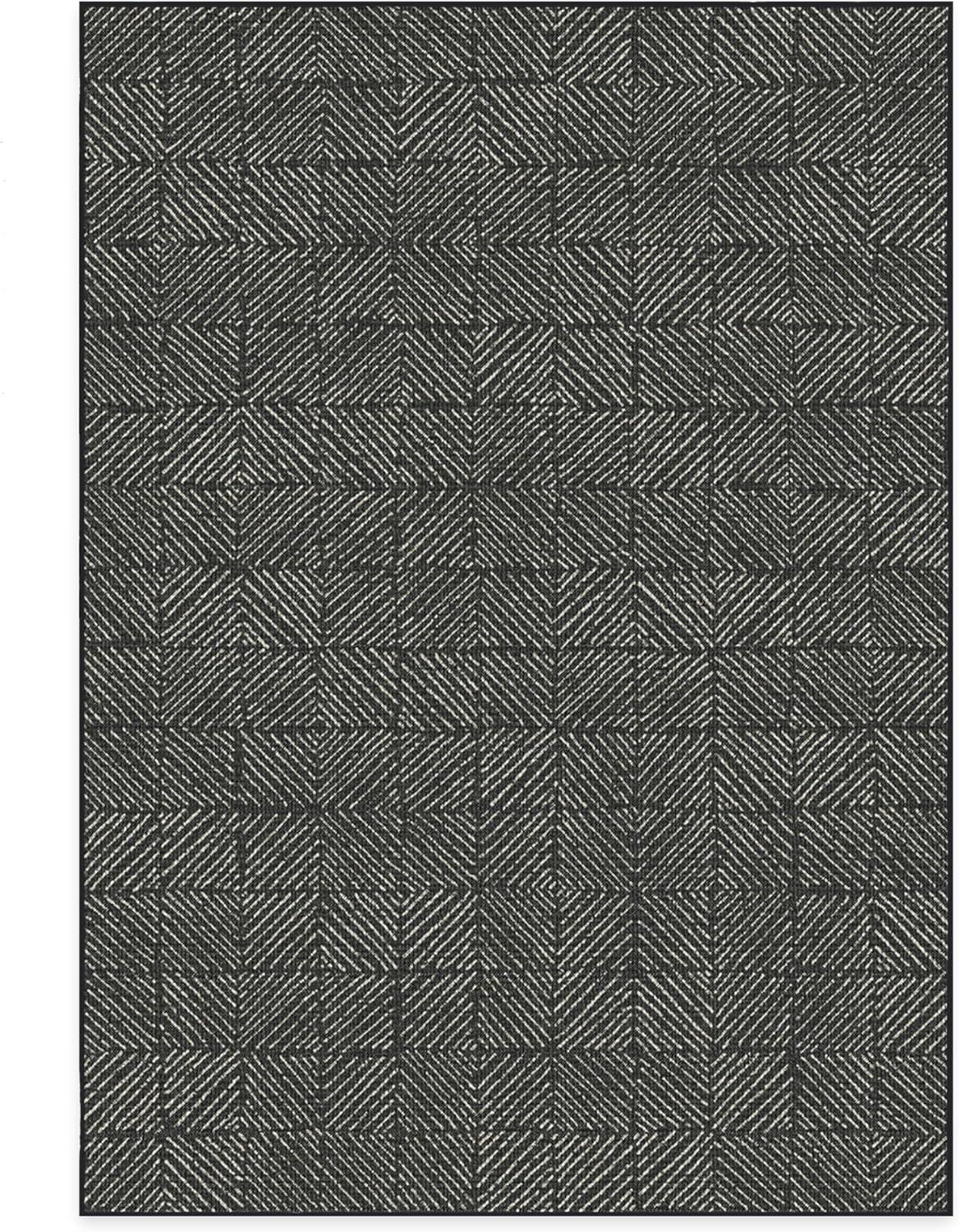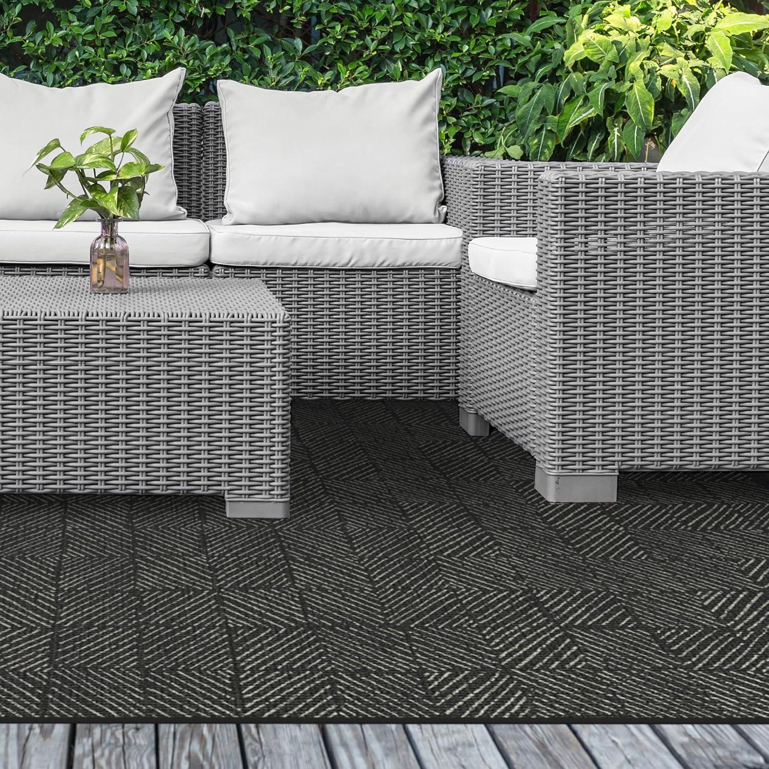 RUGGABLE Washable Area Rug – Outdoor Gingham Plaid Black & White 3×5, Stain-Resistant, Non-Slip – Small Machine Washable Rugs for Entryway, Patio, Balcony, Deck, & Porch–with Standard Pad(Parquet Black – Standard Pad)