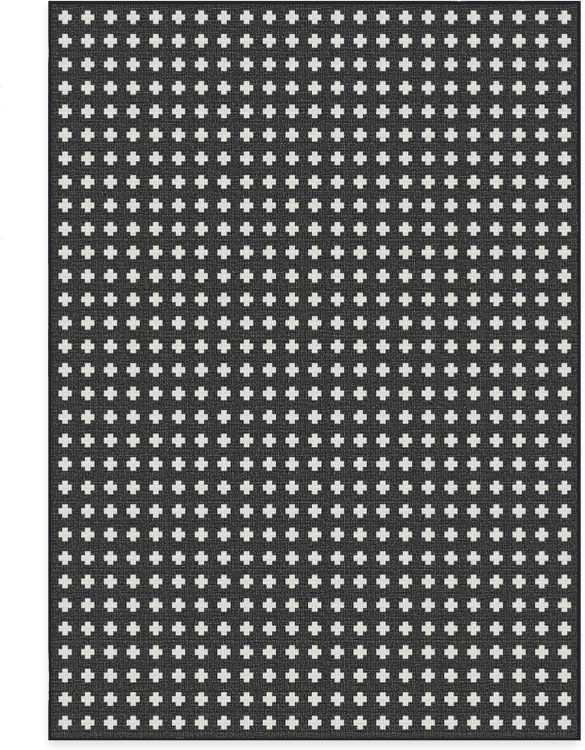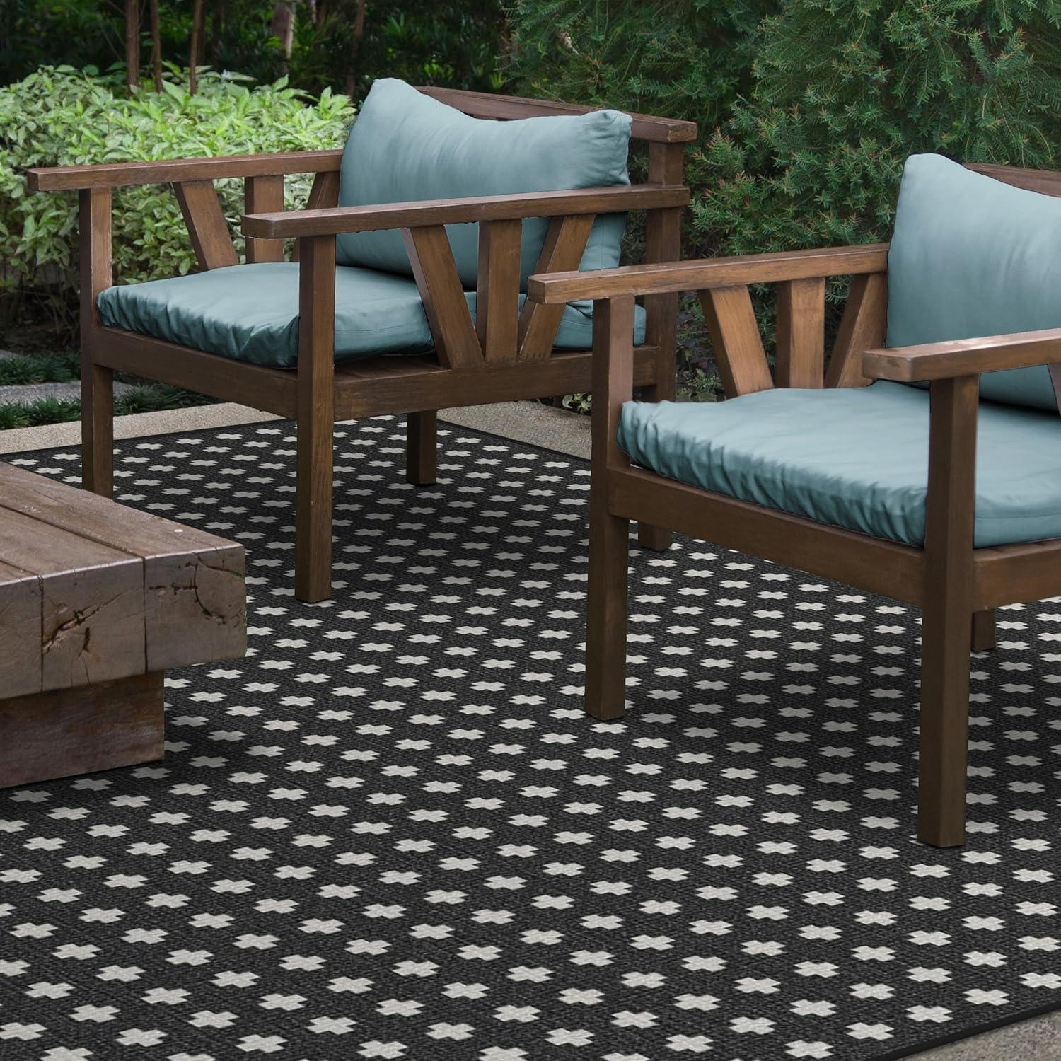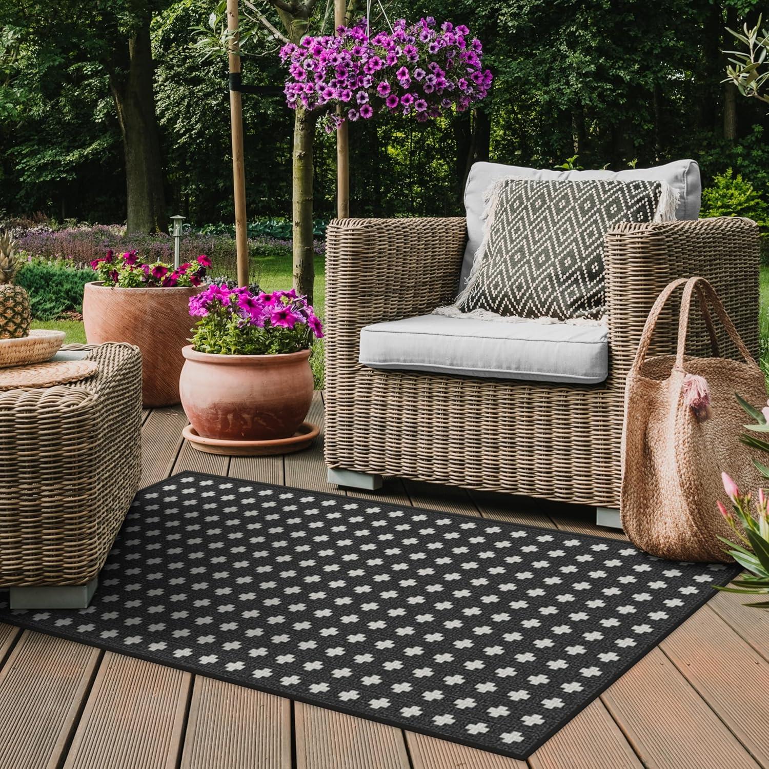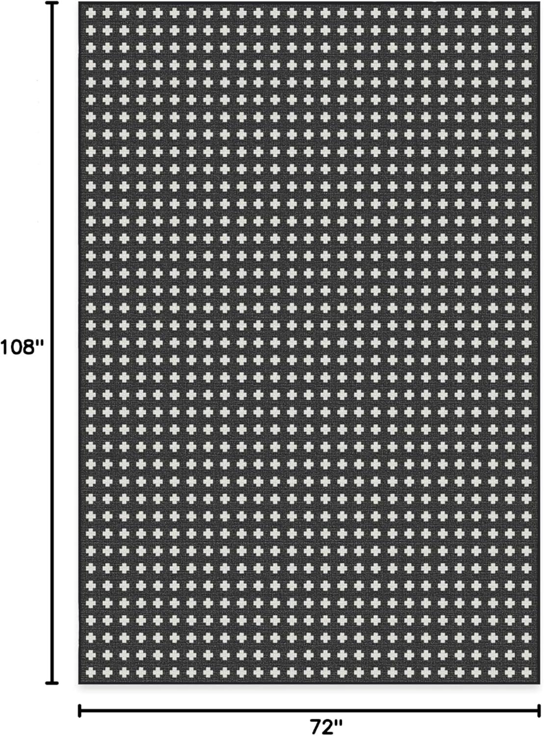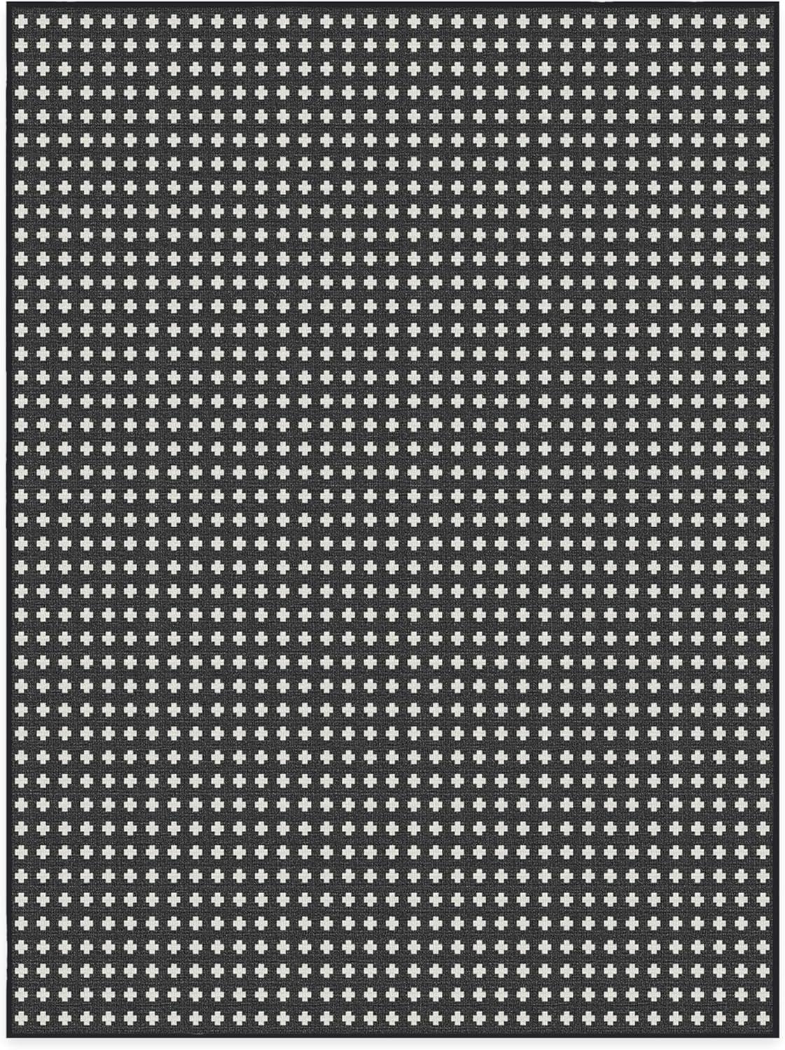 RUGGABLE Washable Area Rug – Outdoor Gingham Plaid Black & White 3×5, Stain-Resistant, Non-Slip – Small Machine Washable Rugs for Entryway, Patio, Balcony, Deck, & Porch–with Standard Pad(Adde Black – Standard Pad)
